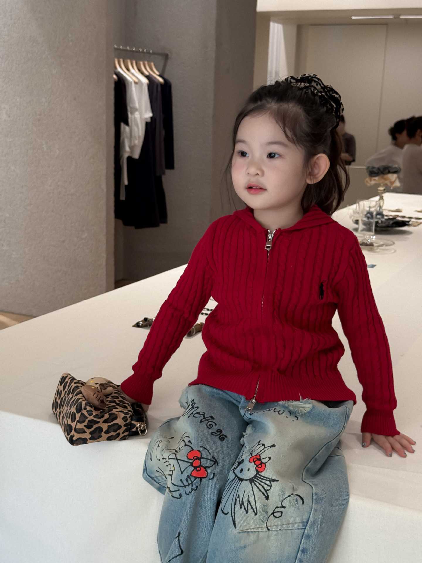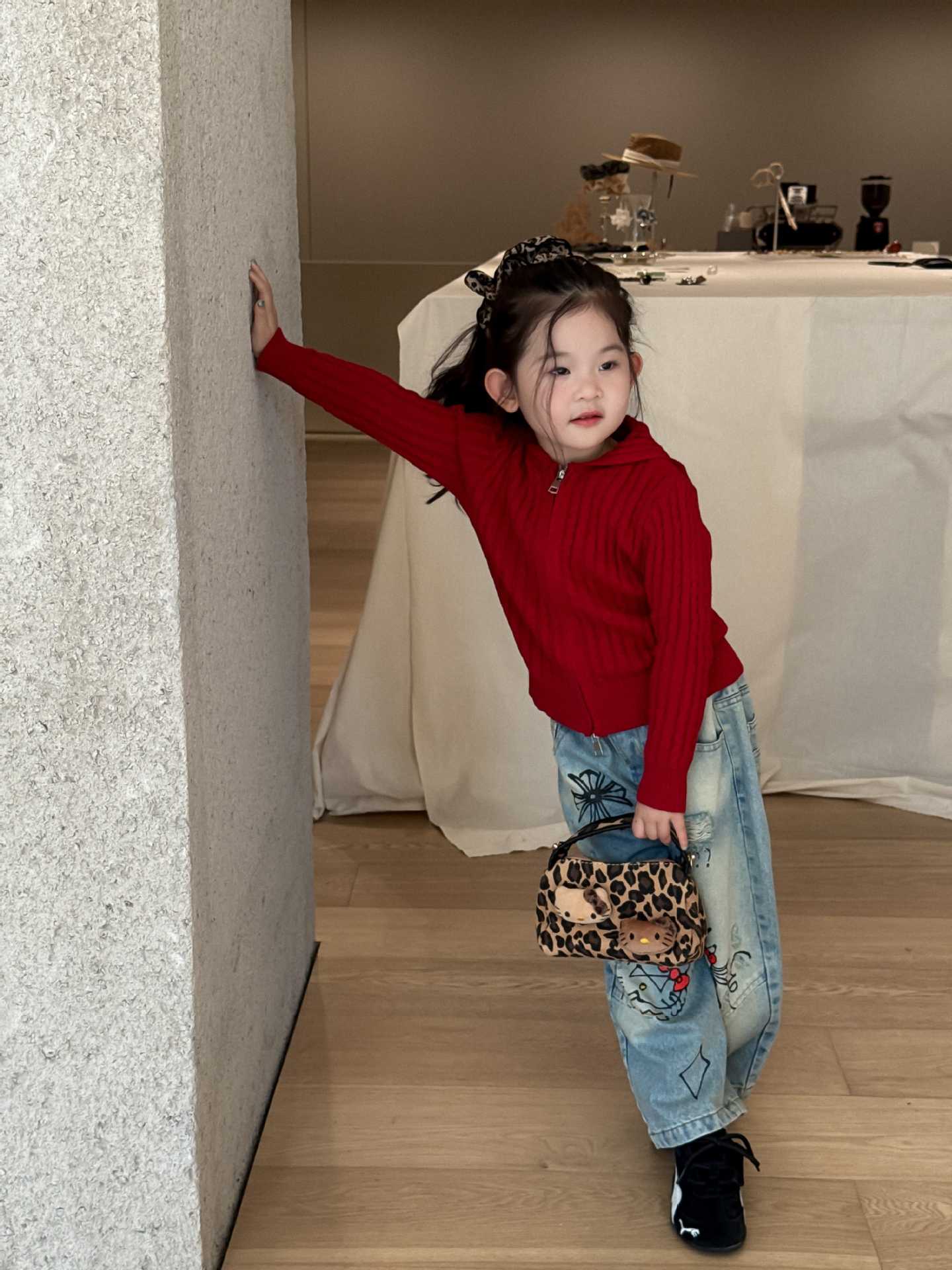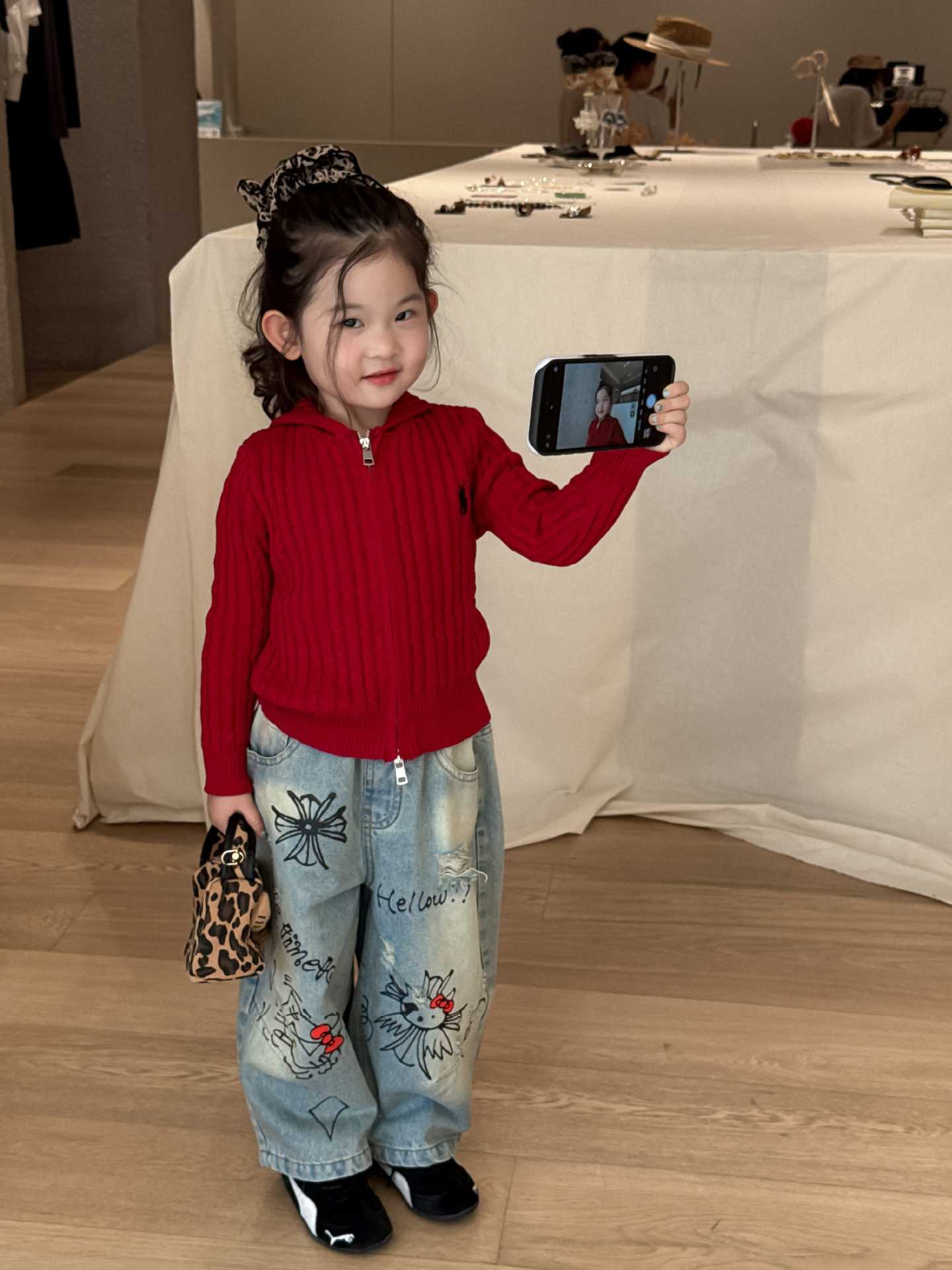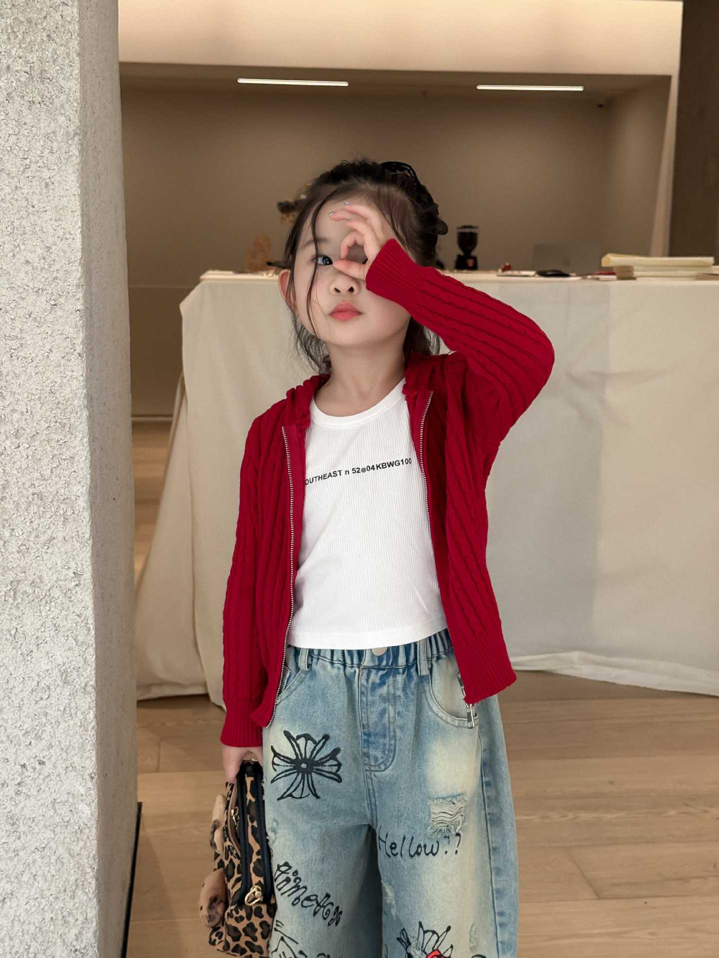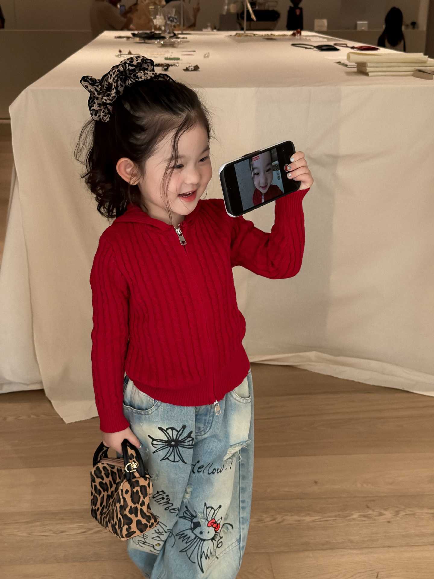 2025 새로운 가을 아동 의류 한국 스타일 아동 의류 소녀 면화 거즈 후드 스웨터 카디건 스웨터 재킷스토어 가기
