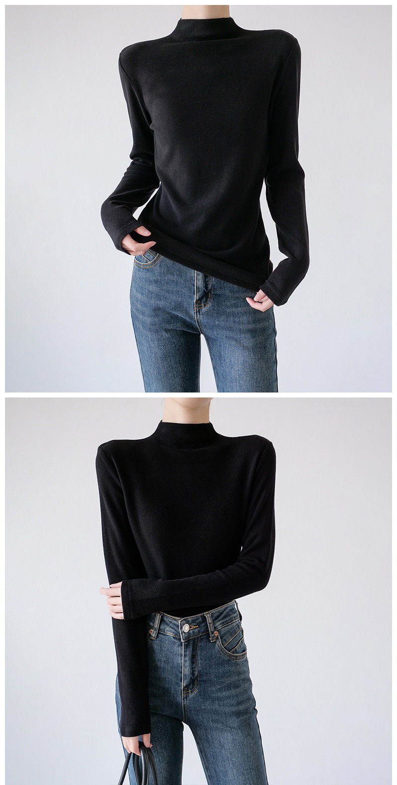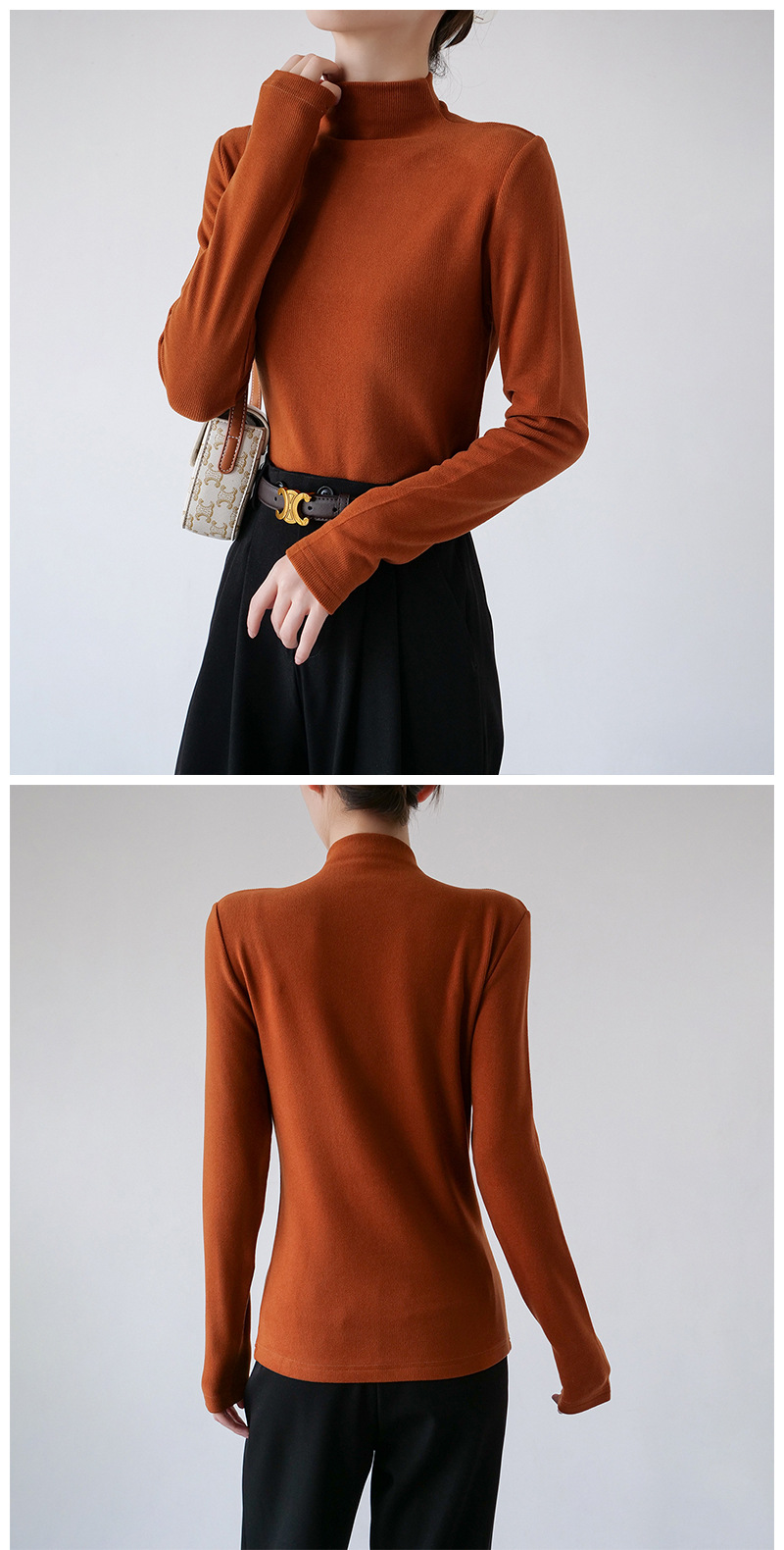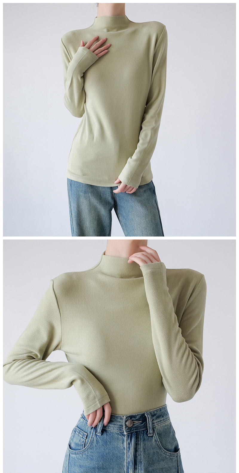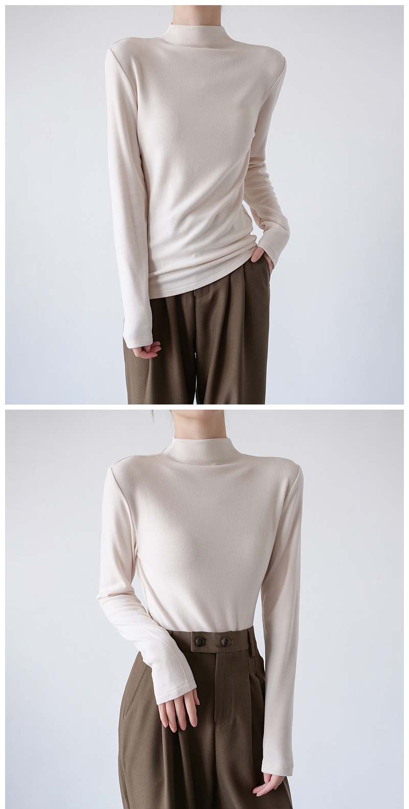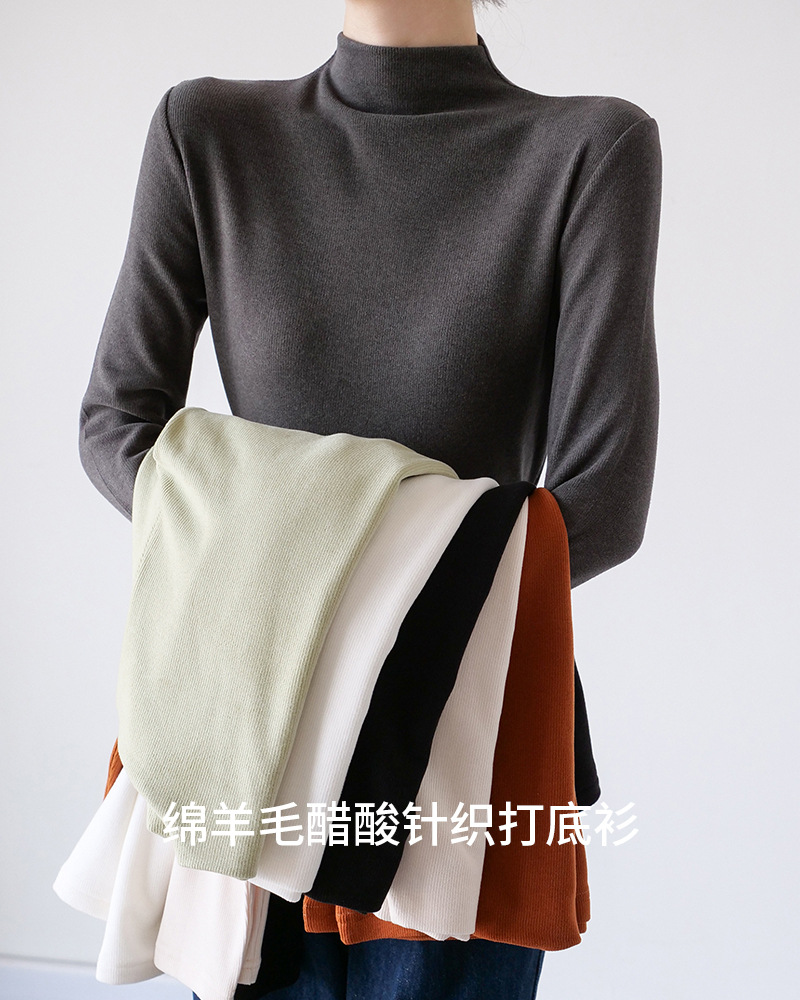 26秋冬双面绒美雅碧醋酸羊毛半高领纯色打底衫内搭套头保暖上衣女스토어 가기