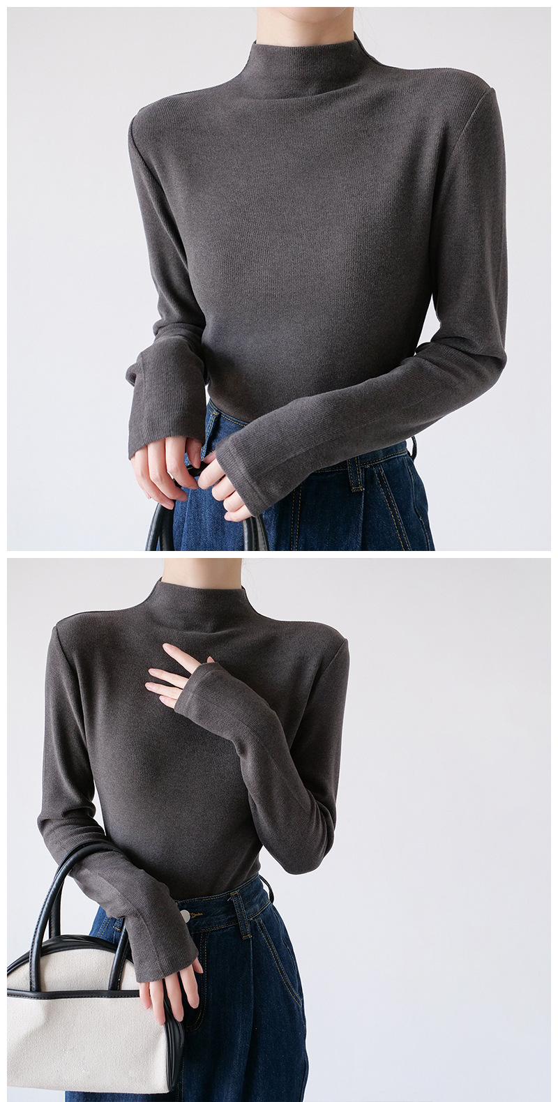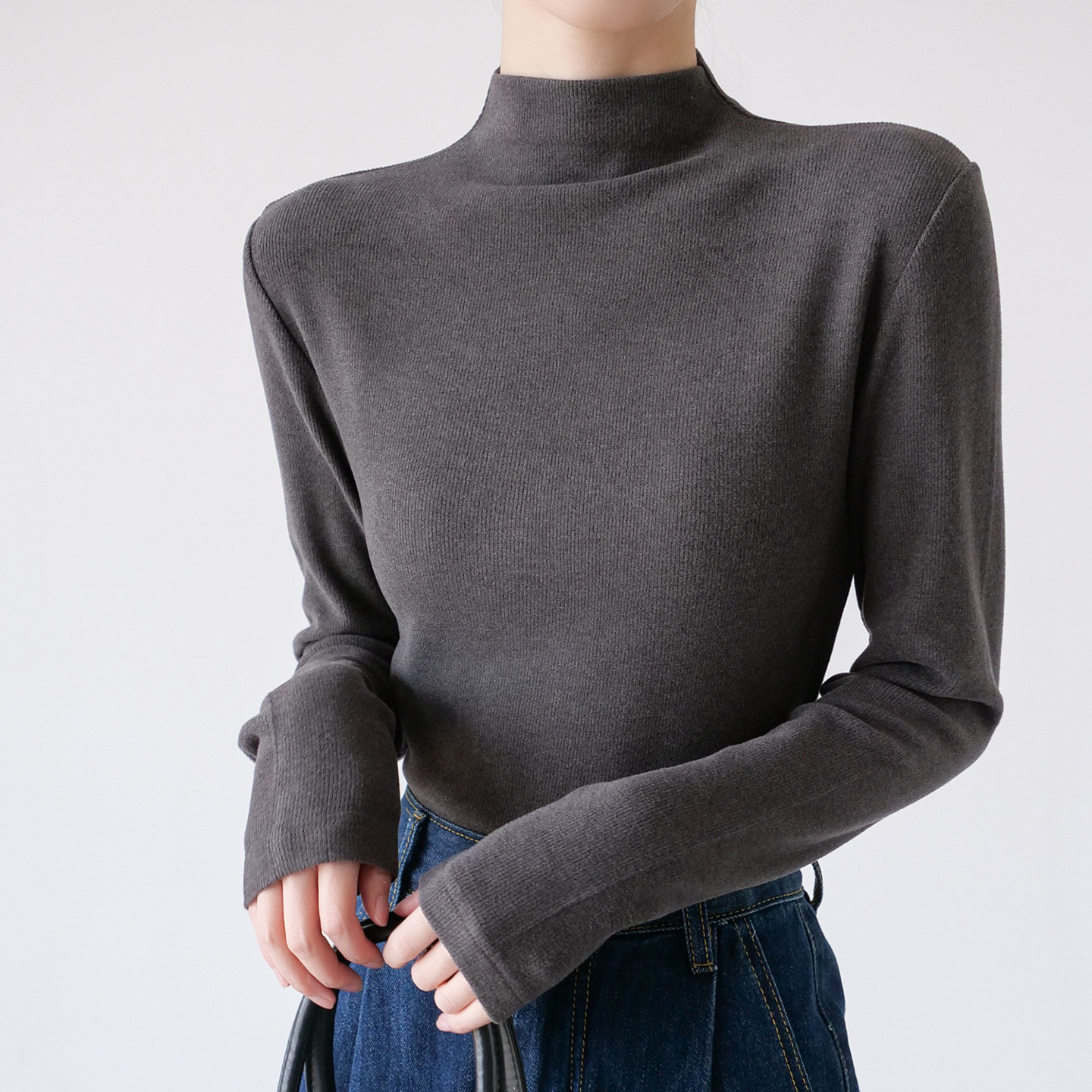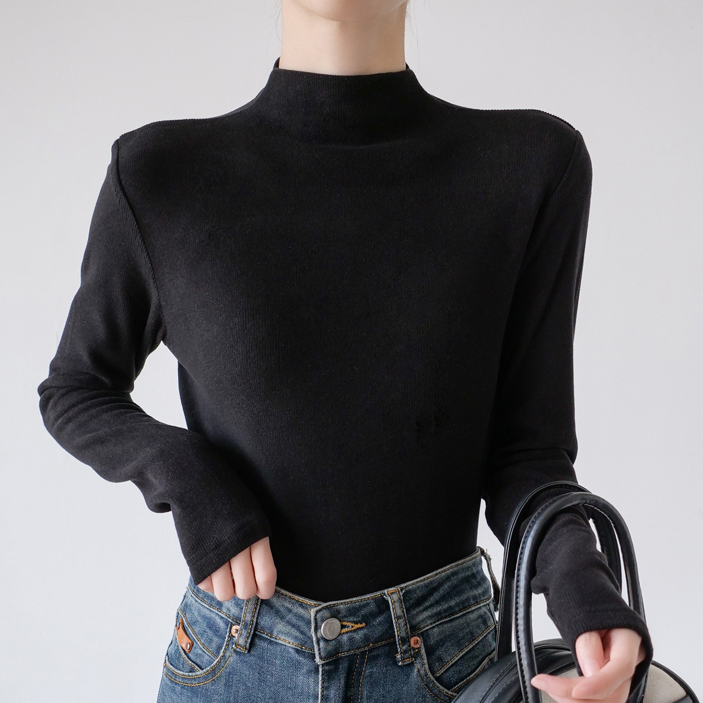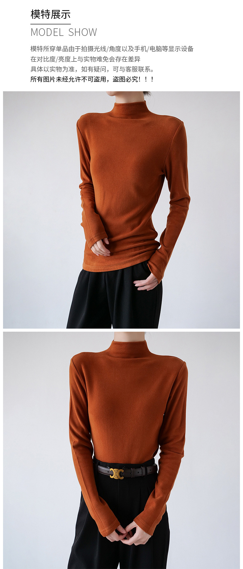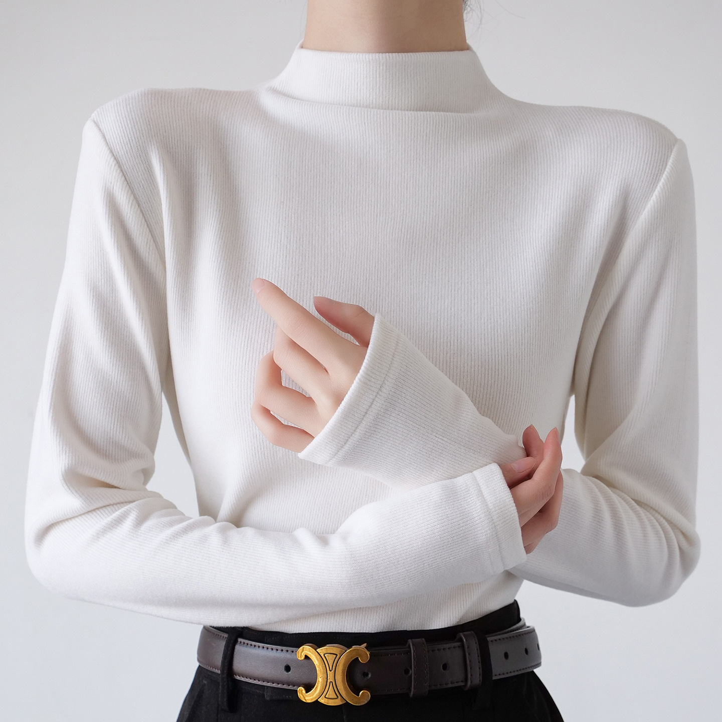 26秋冬双面绒美雅碧醋酸羊毛半高领纯色打底衫内搭套头保暖上衣女스토어 가기