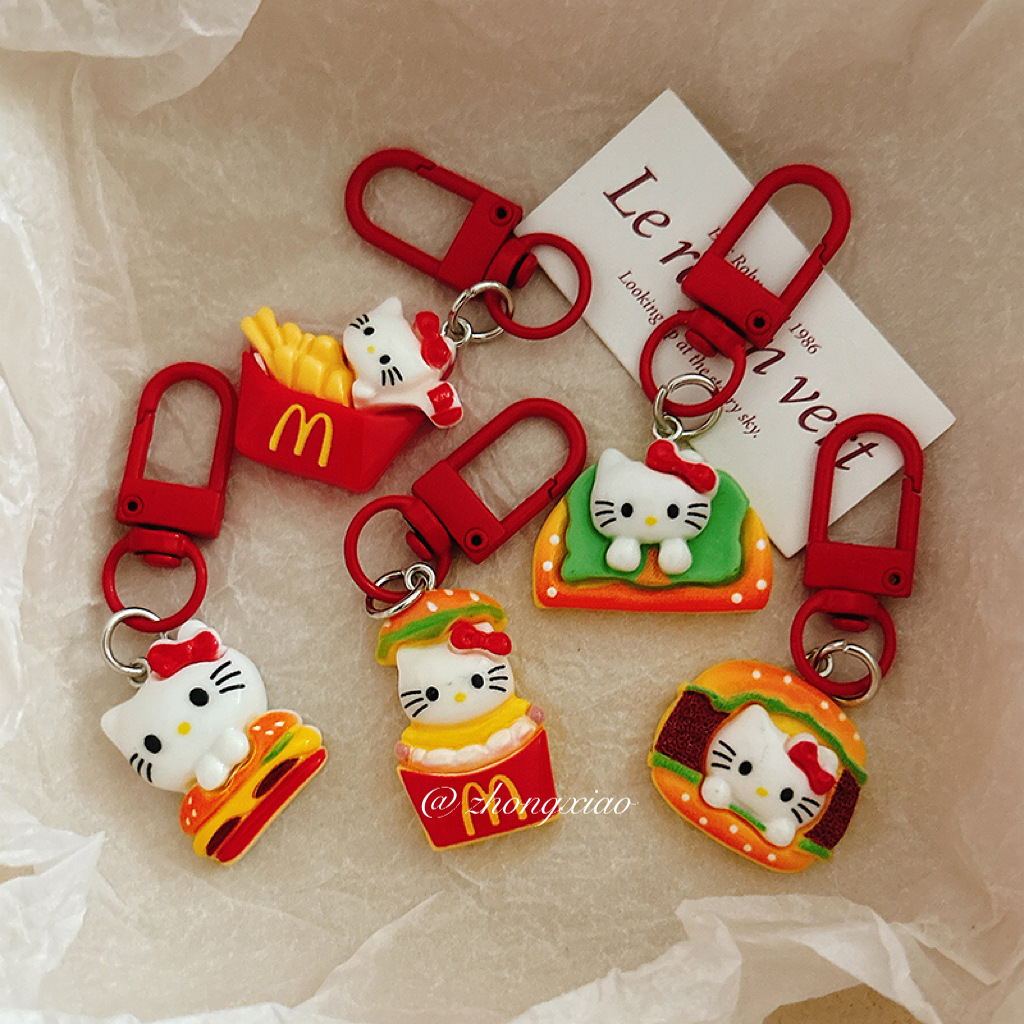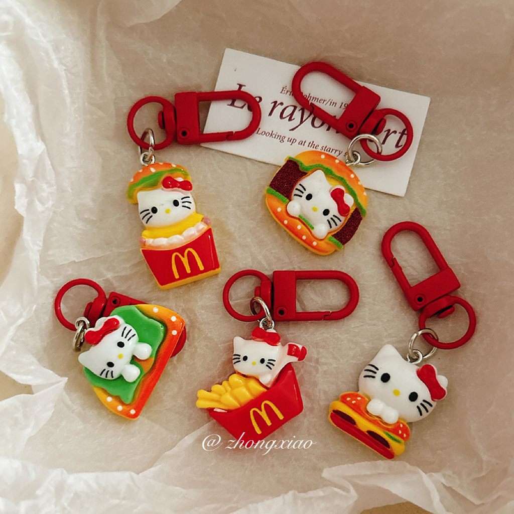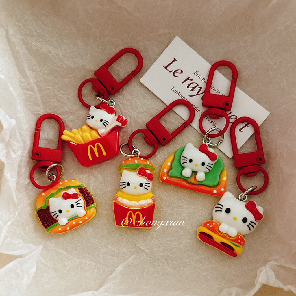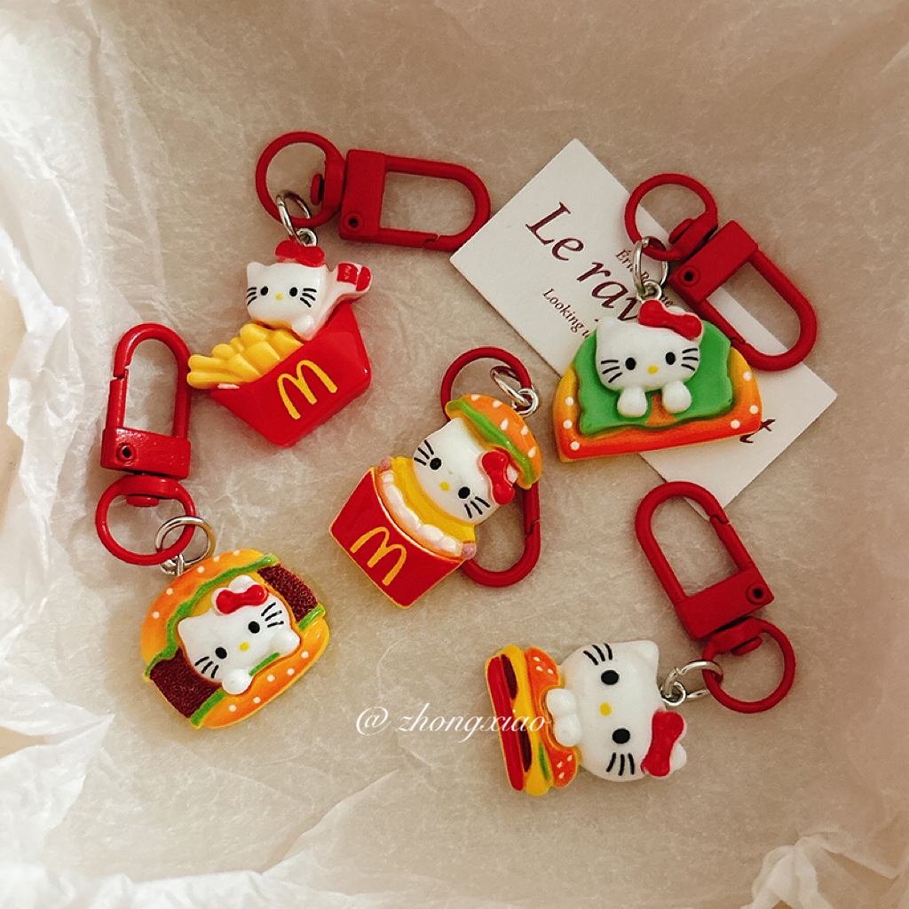 만화 맥도날드 새끼 고양이 키 체인 펜던트 귀여운 크리 에이 티브 가방 펜던트 학생 배낭 액세서리 bestie 선물
