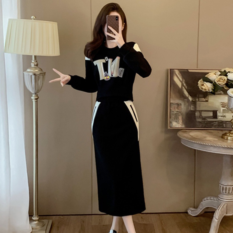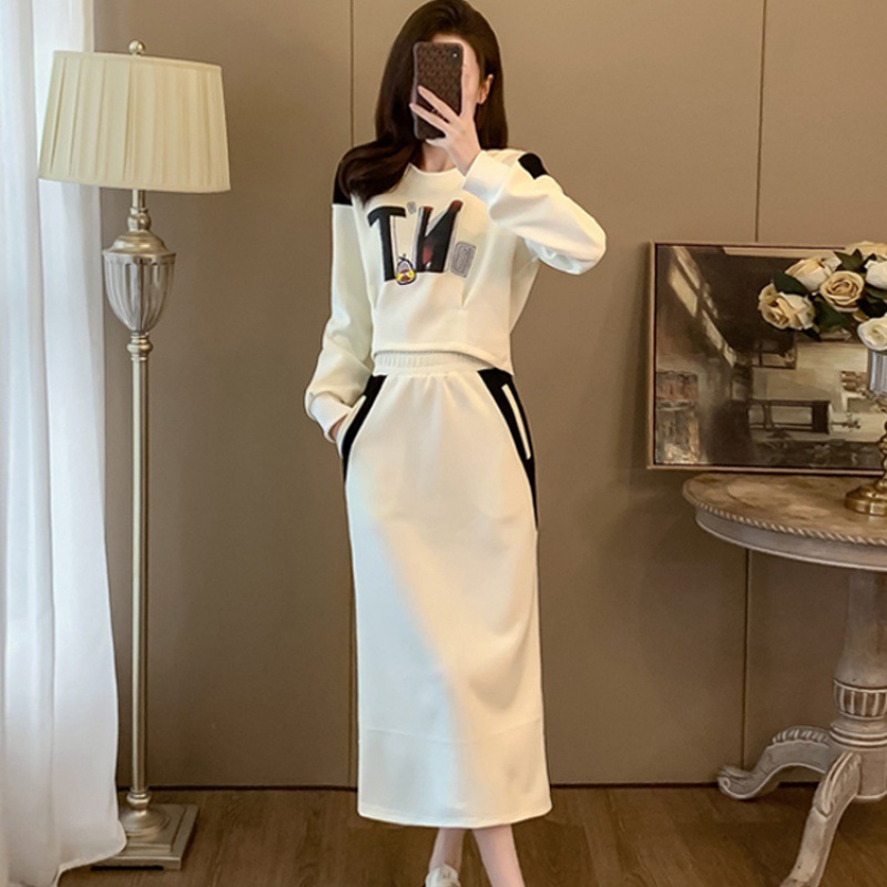 가을 겨울에는 여성용 패셔너블하고 고급스럽고 캐주얼한 스포츠 스웨트셔츠와 스커트 투피스 슈트 세트를 완성하세요.