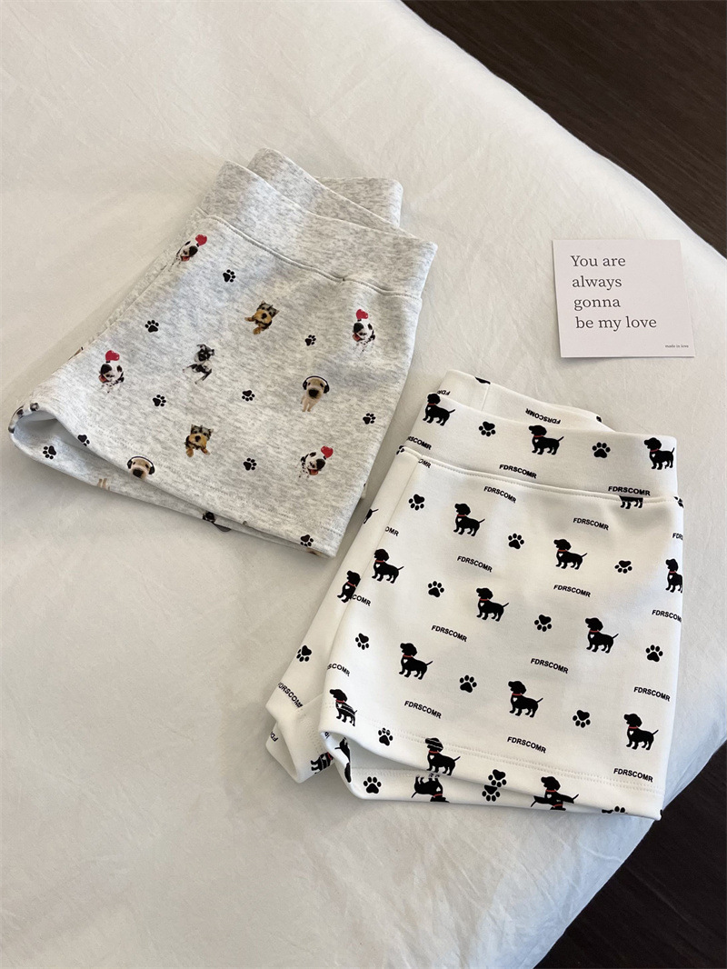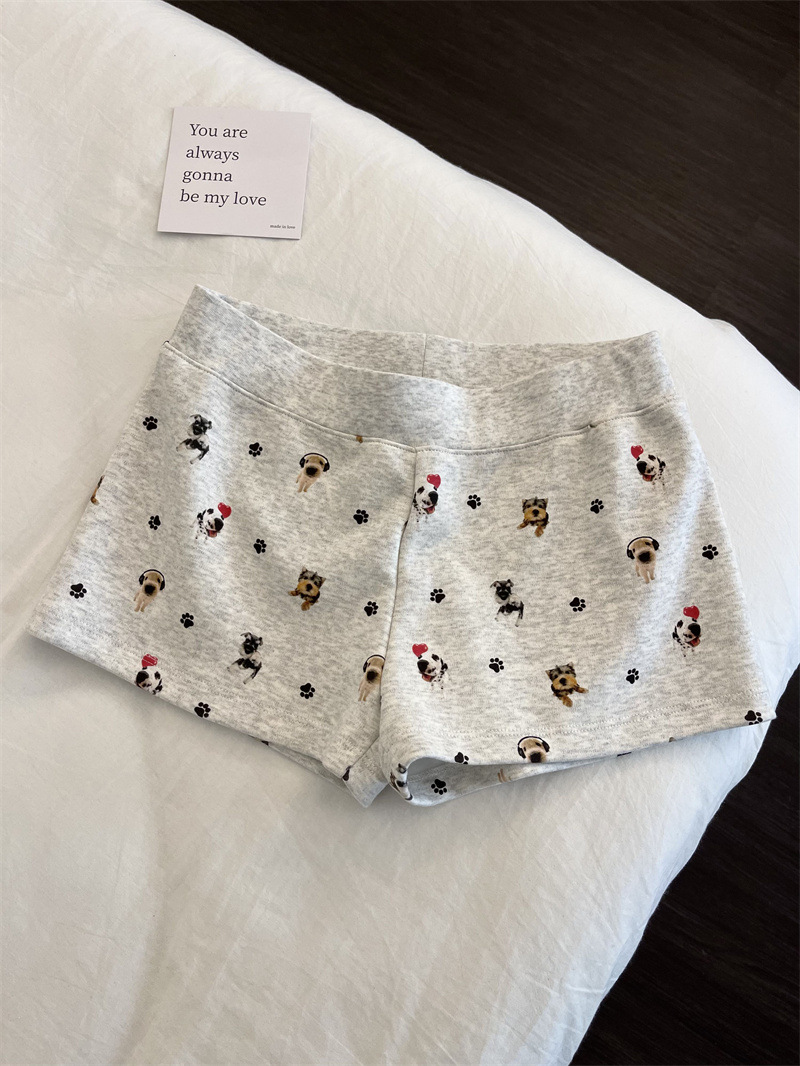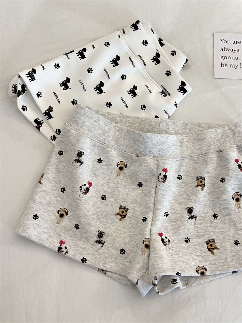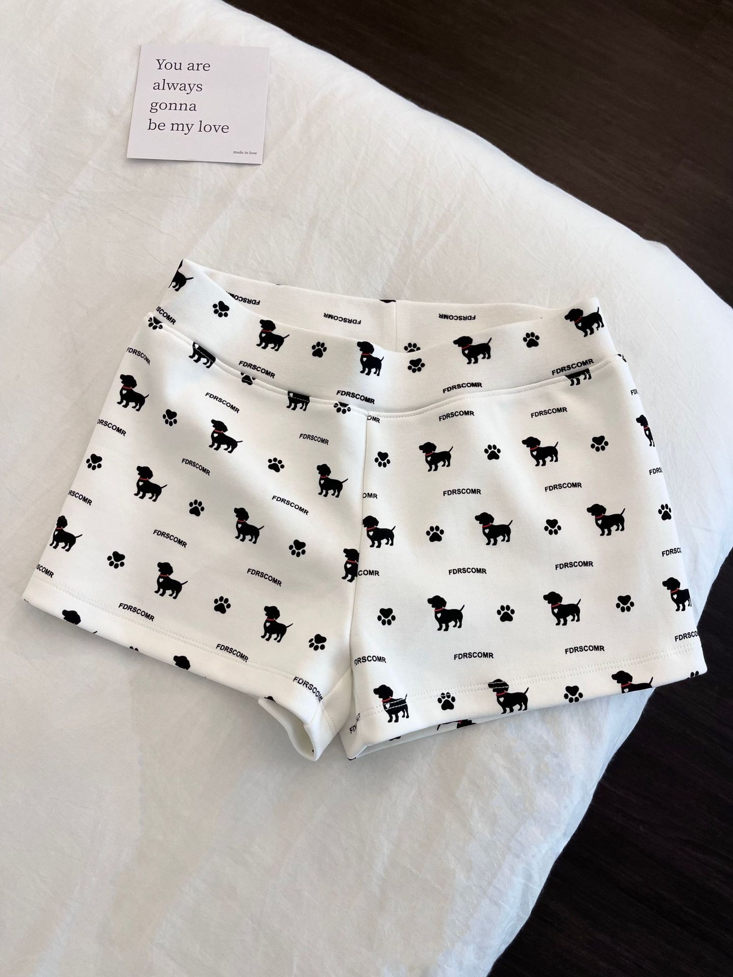 美式休闲运动短裤女夏季新款小狗印花修身显瘦热裤百搭高腰卫裤子스토어 가기