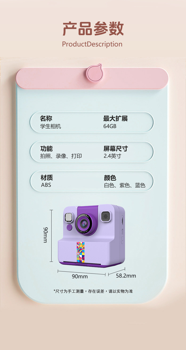 • A30 보라색에는 +32G 메모리 카드 + USB 카드 리더가 기본으로 제공됩니다(기본적으로 흑백 인쇄 용지 1롤)