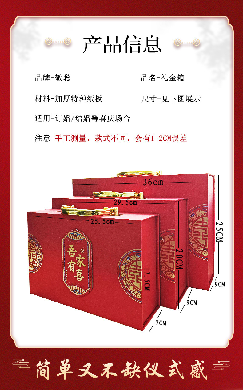 결혼식 금상자, 약혼 선물 상자, 결혼 선물 상자, 1만 위안 빨간 봉투, 약혼 용품, 10만 상자