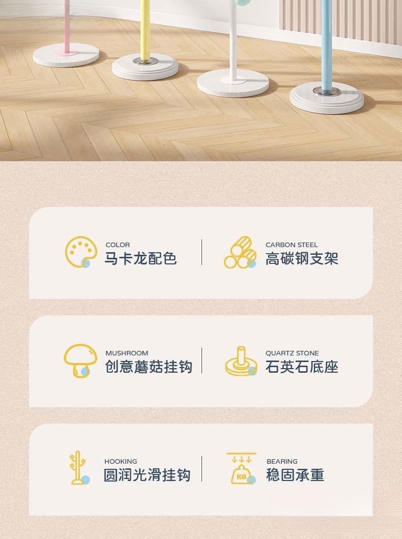 옷걸이 바닥에서 천장까지 어린이 인터넷 연예인 버섯 옷걸이 소녀 침실 컬러 코트 작은 공간 가방 걸이 브래킷