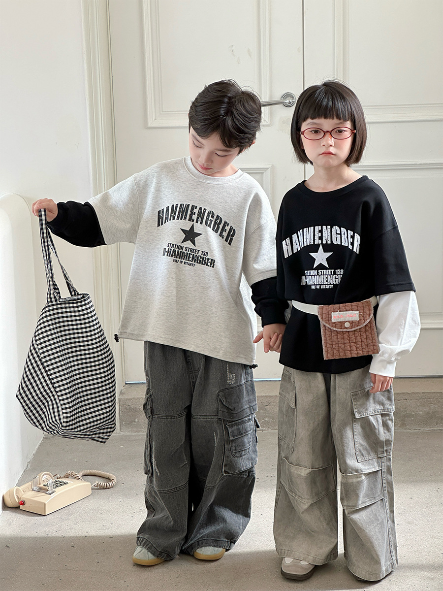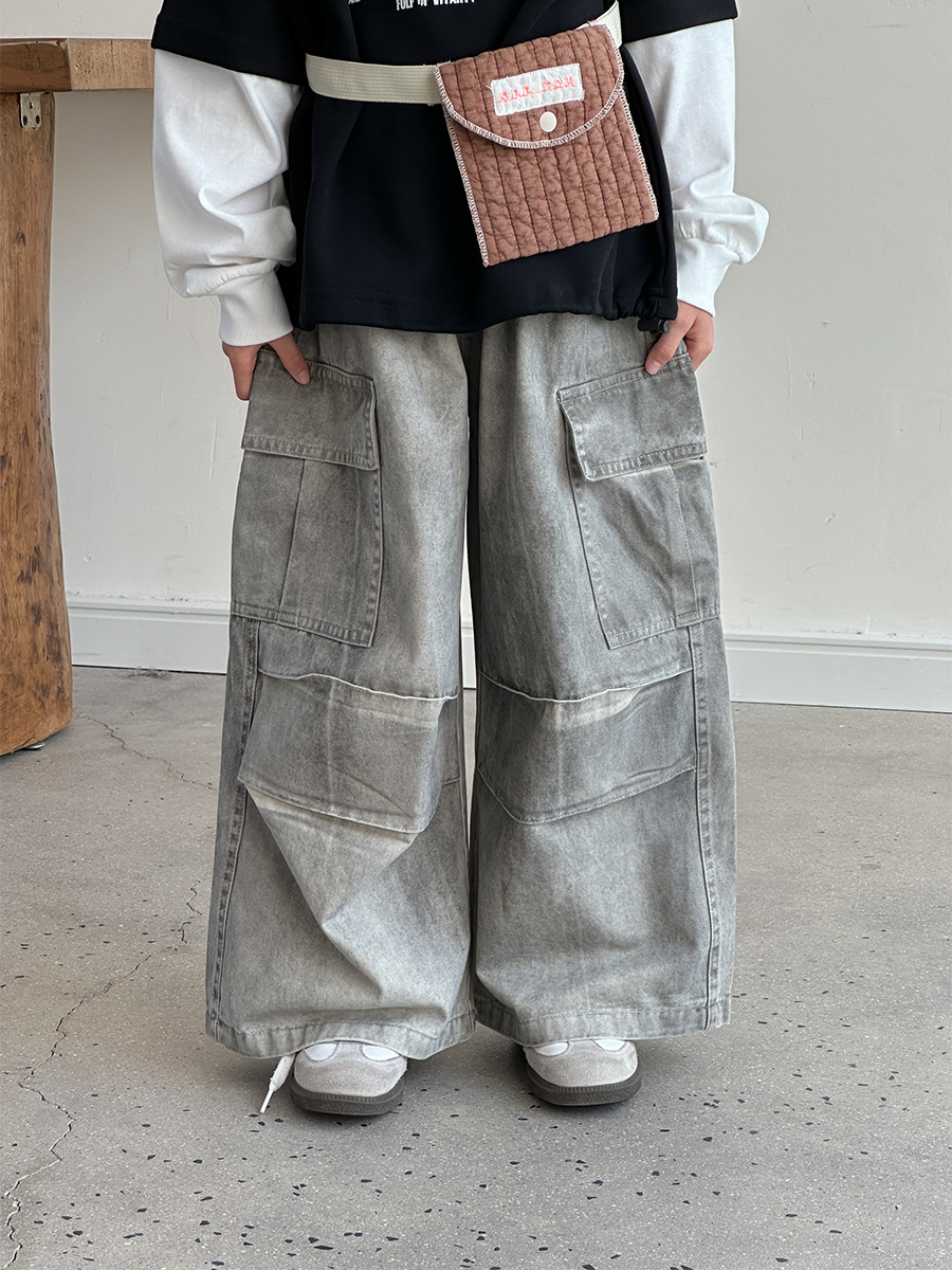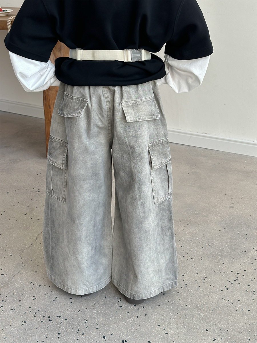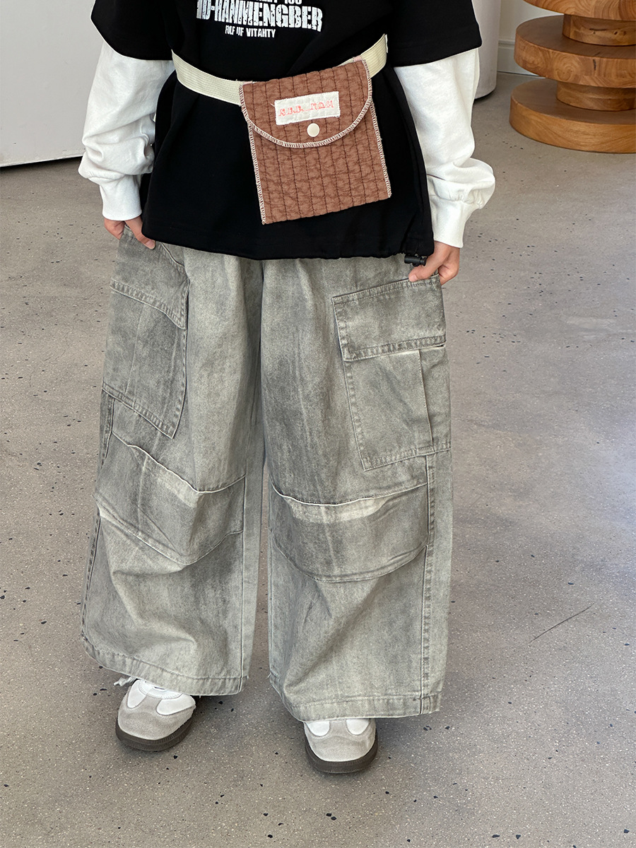 2025년 가을 신상 아동 패션 더티 염색 작업복, 남학생과 여학생을 위한 다용도 중공업 스트레이트 캐주얼 바지, 서양식스토어 가기