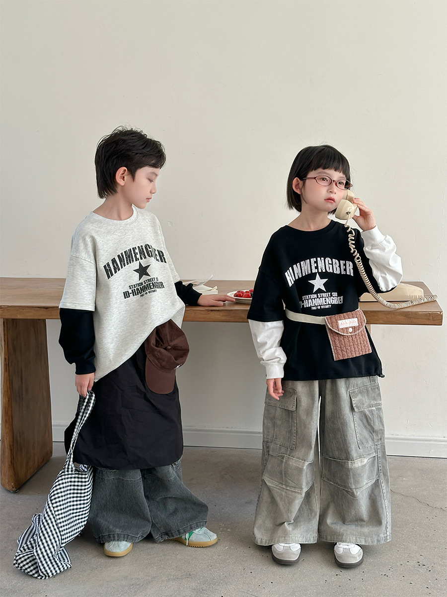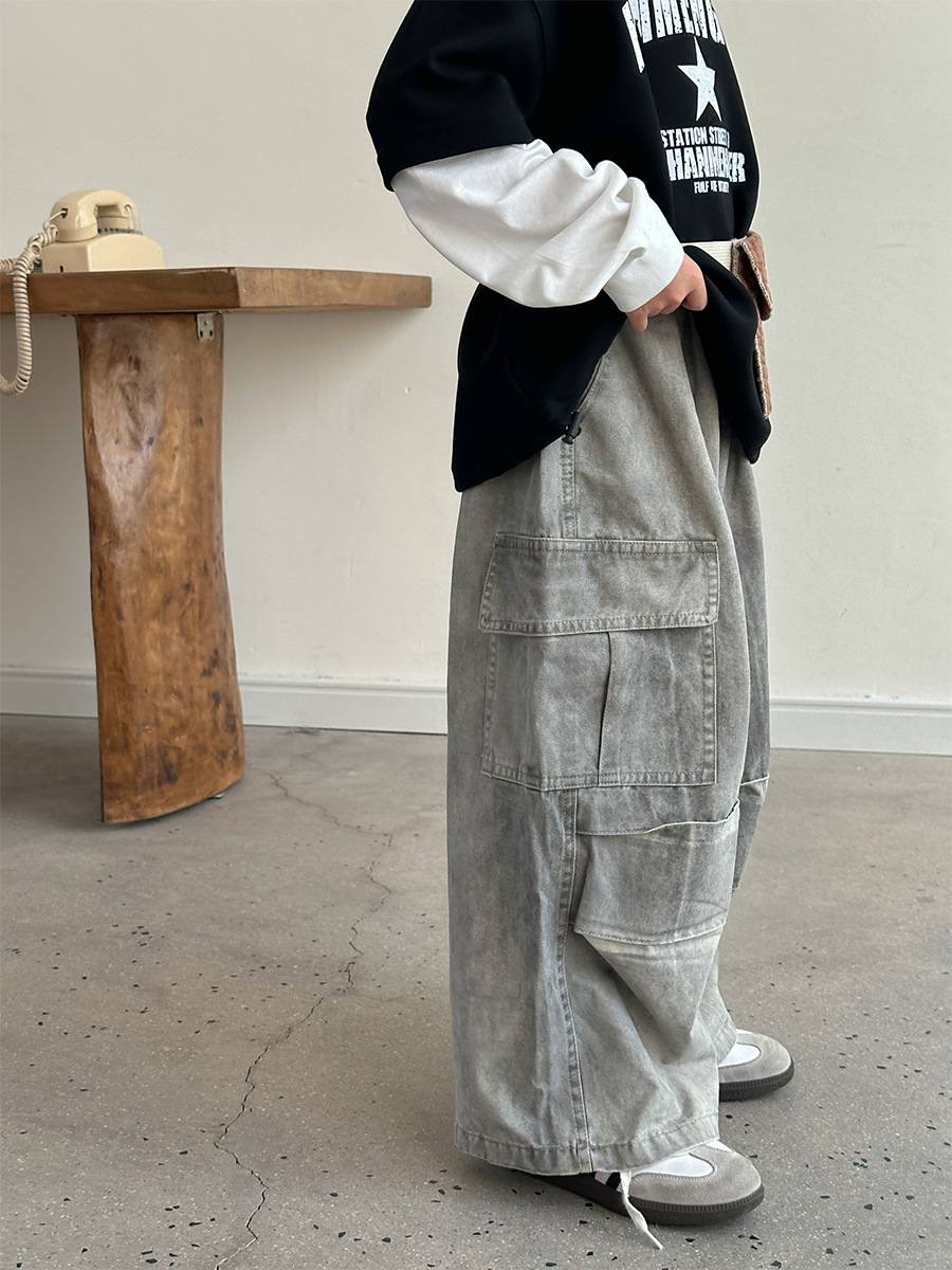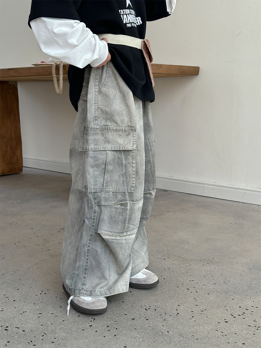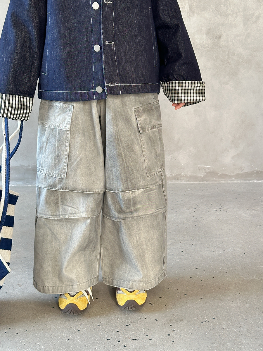 2025년 가을 신상 아동 패션 더티 염색 작업복, 남학생과 여학생을 위한 다용도 중공업 스트레이트 캐주얼 바지, 서양식스토어 가기