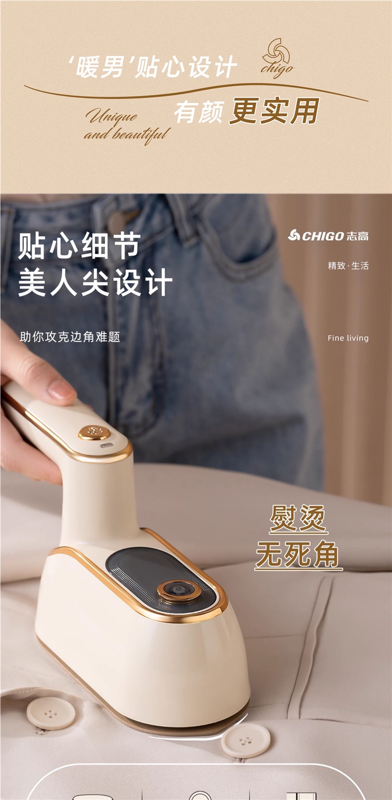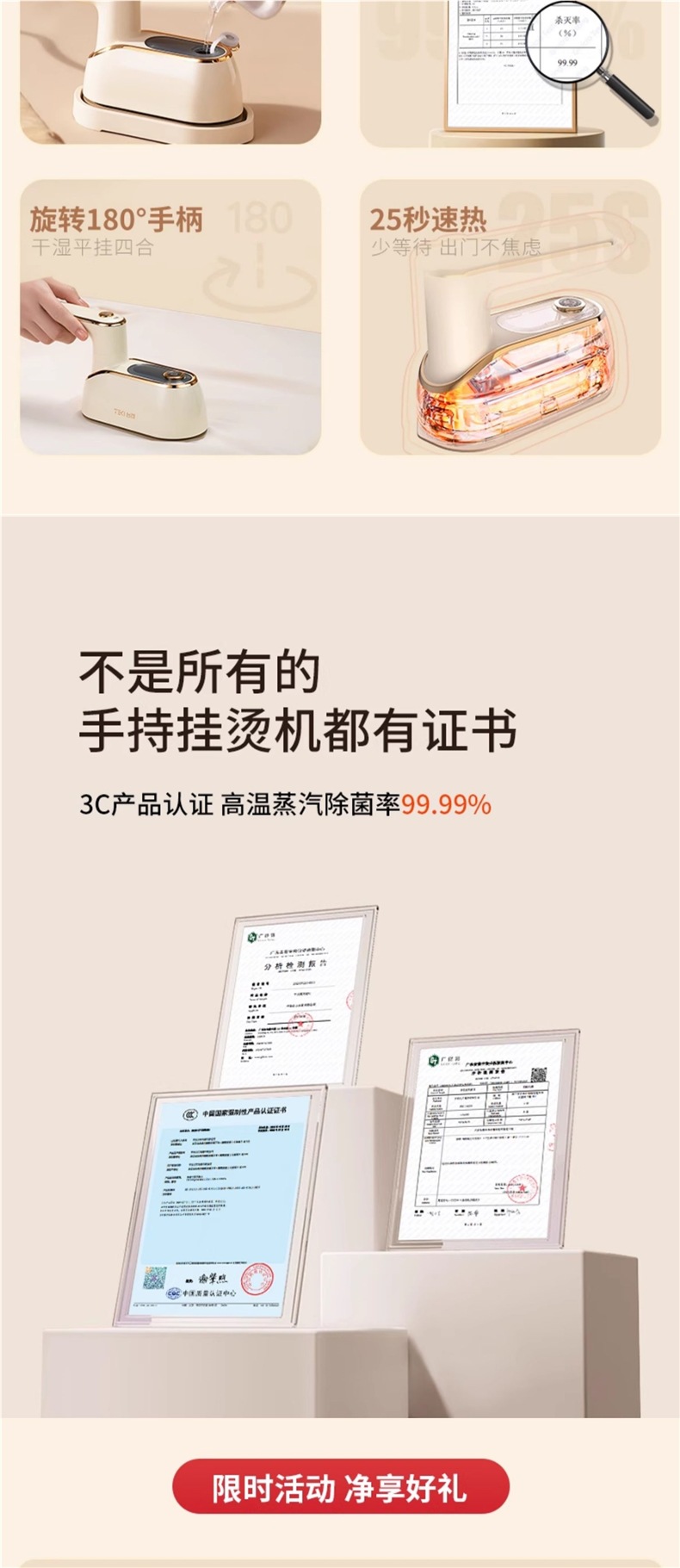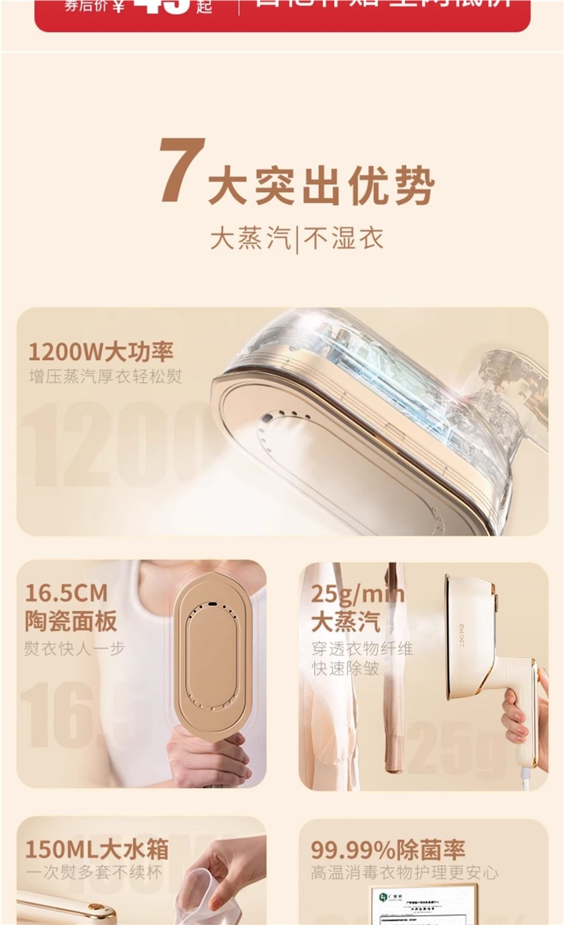 • 고급모델 [세라믹 확대패널 + 3단 스팀] 온가족 다림질 + 99.9 살균