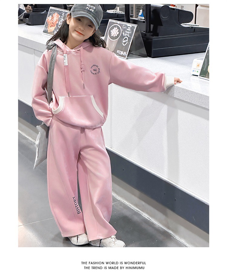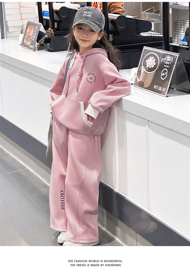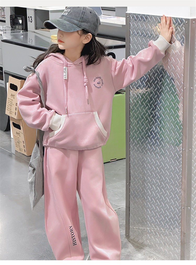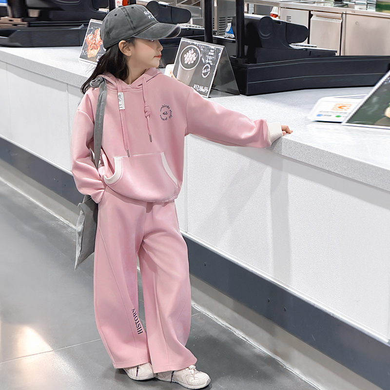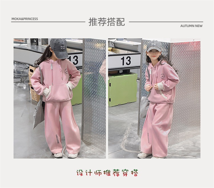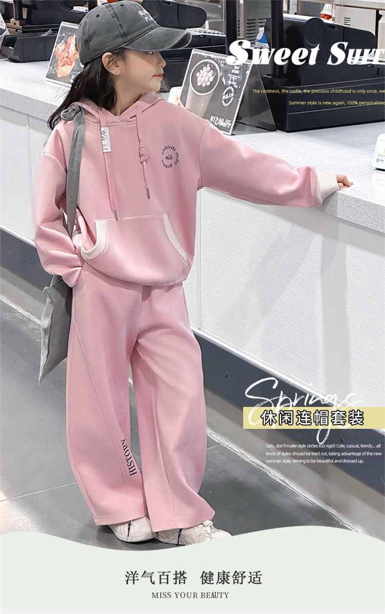 여아 가을 의류 세트 2025 새로운 스타일 중대형 아동용 스웨트 셔츠 투피스 세트 스트리트 아동복 후드 봄, 가을 유행스토어 가기