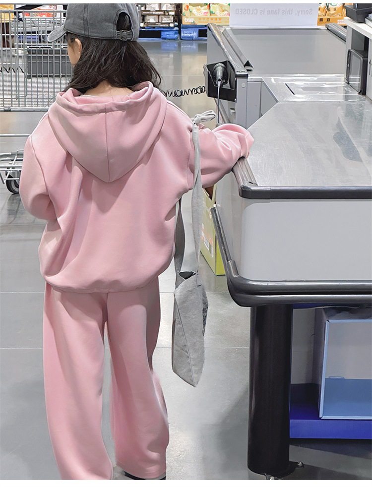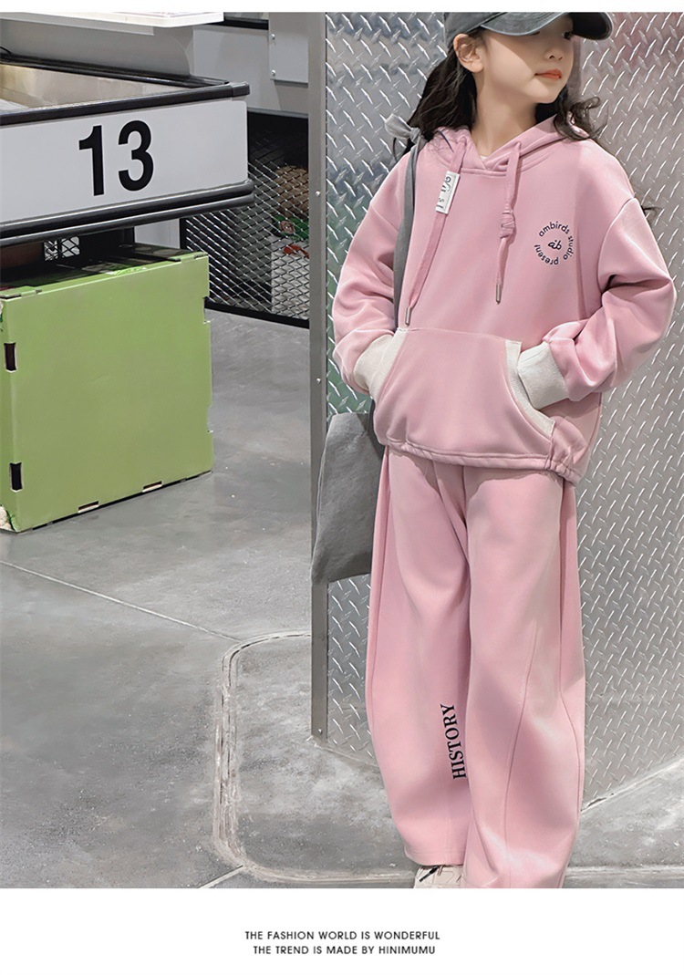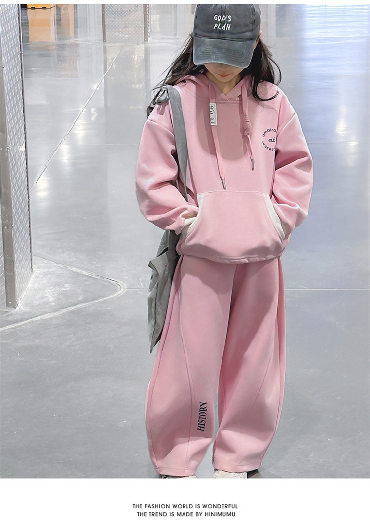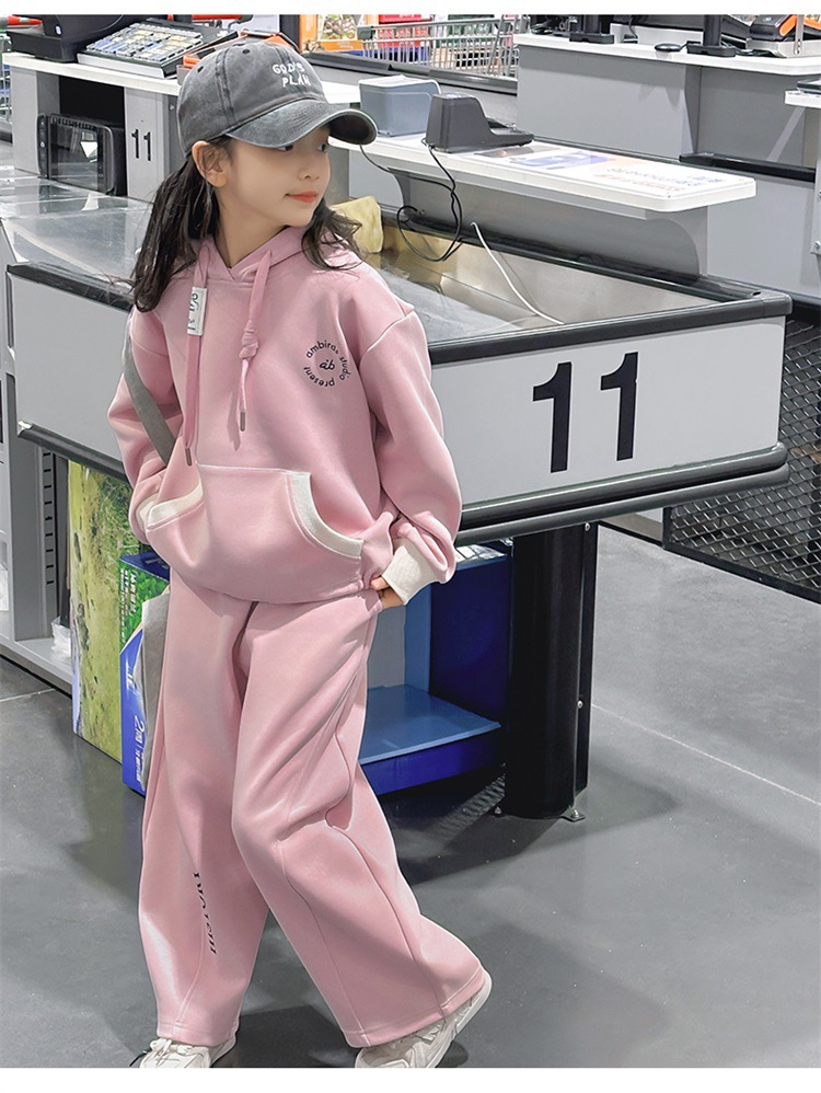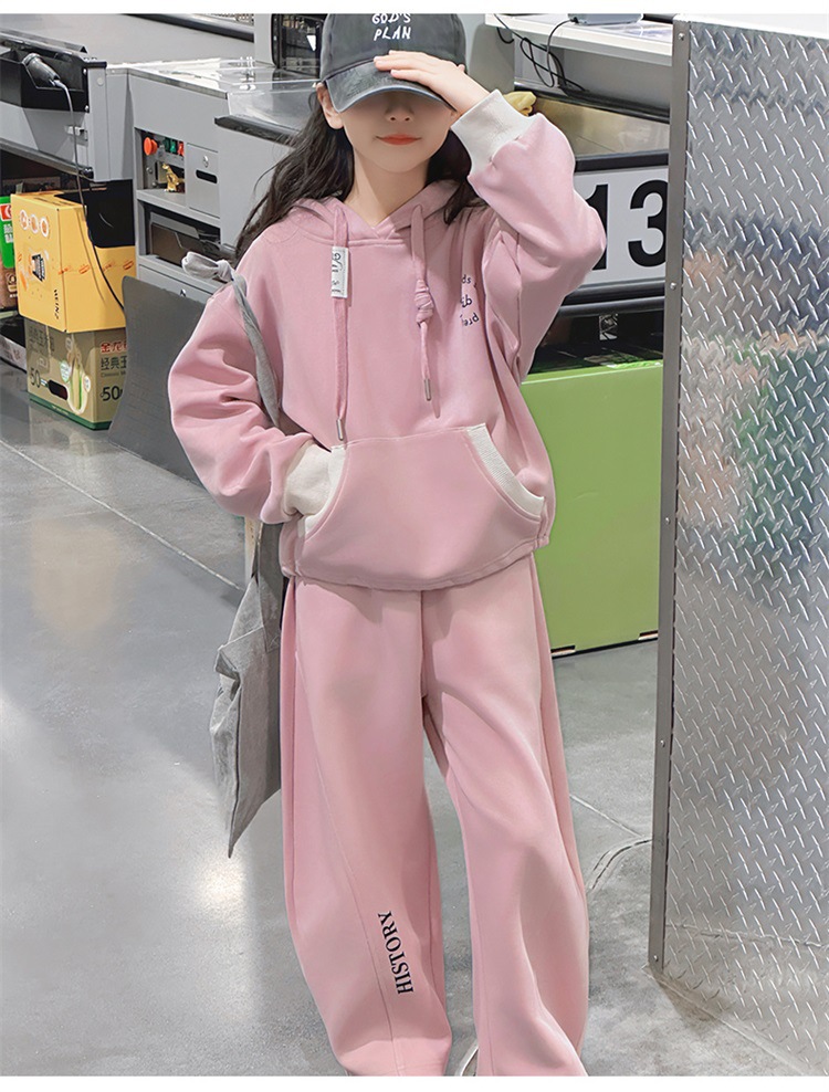 여아 가을 의류 세트 2025 새로운 스타일 중대형 아동용 스웨트 셔츠 투피스 세트 스트리트 아동복 후드 봄, 가을 유행스토어 가기