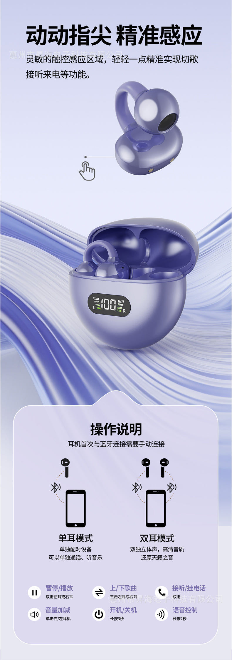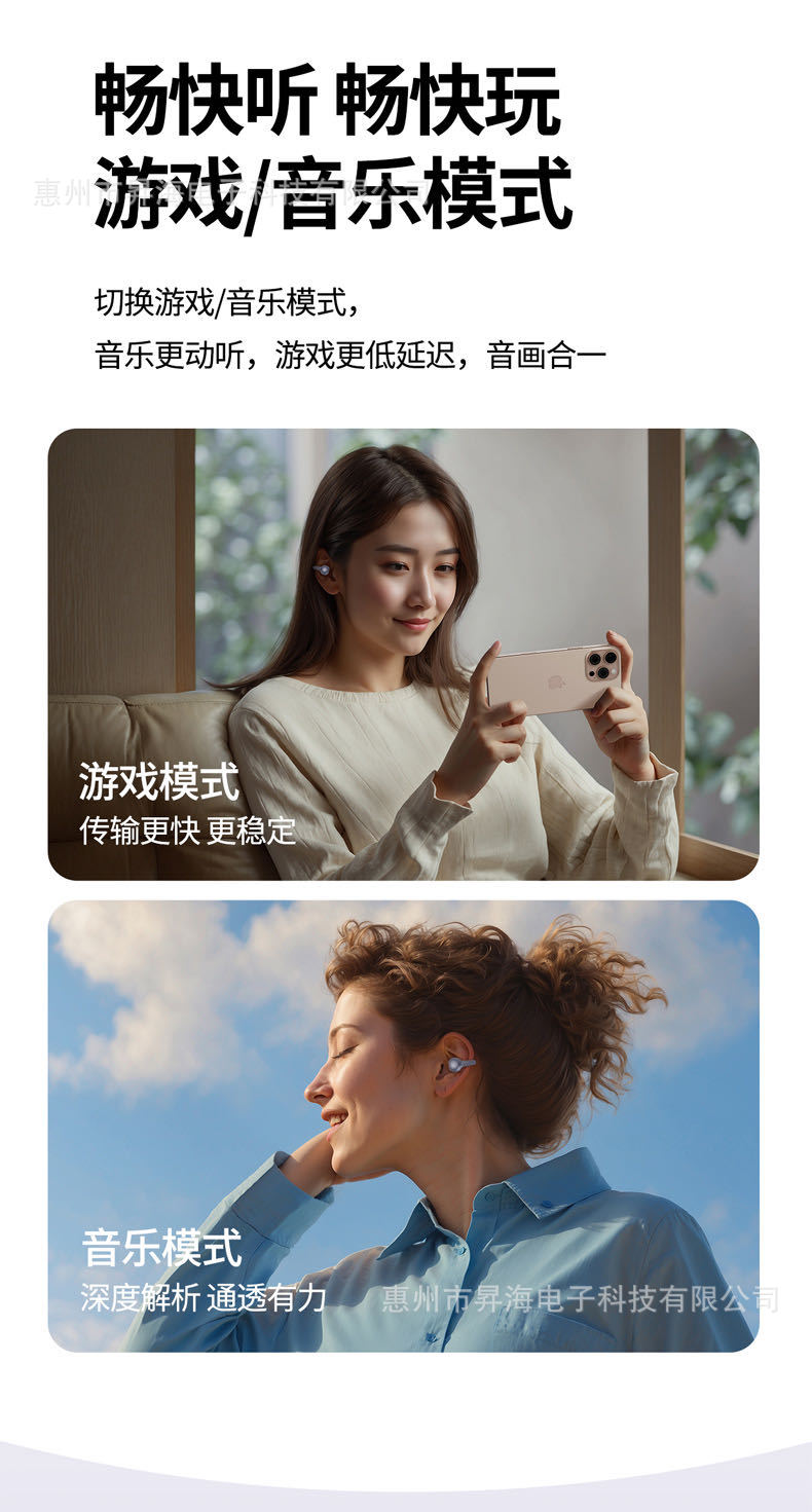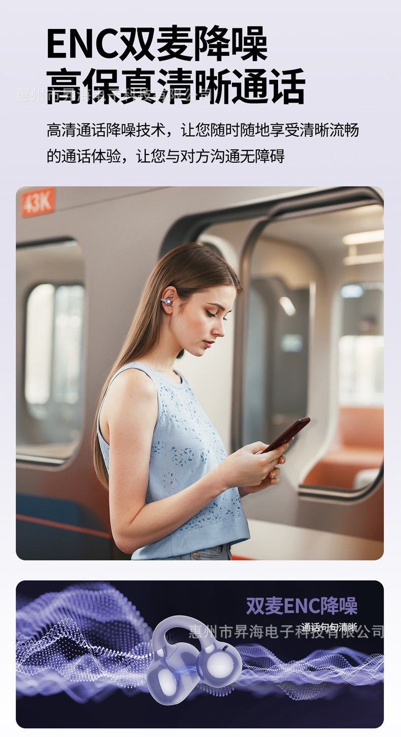 ENC 소음 감소 이어 클립 디지털 디스플레이 무선 블루투스 헤드셋 골전도 TWS 음악 스포츠 게임 e-스포츠 블루투스스토어 가기