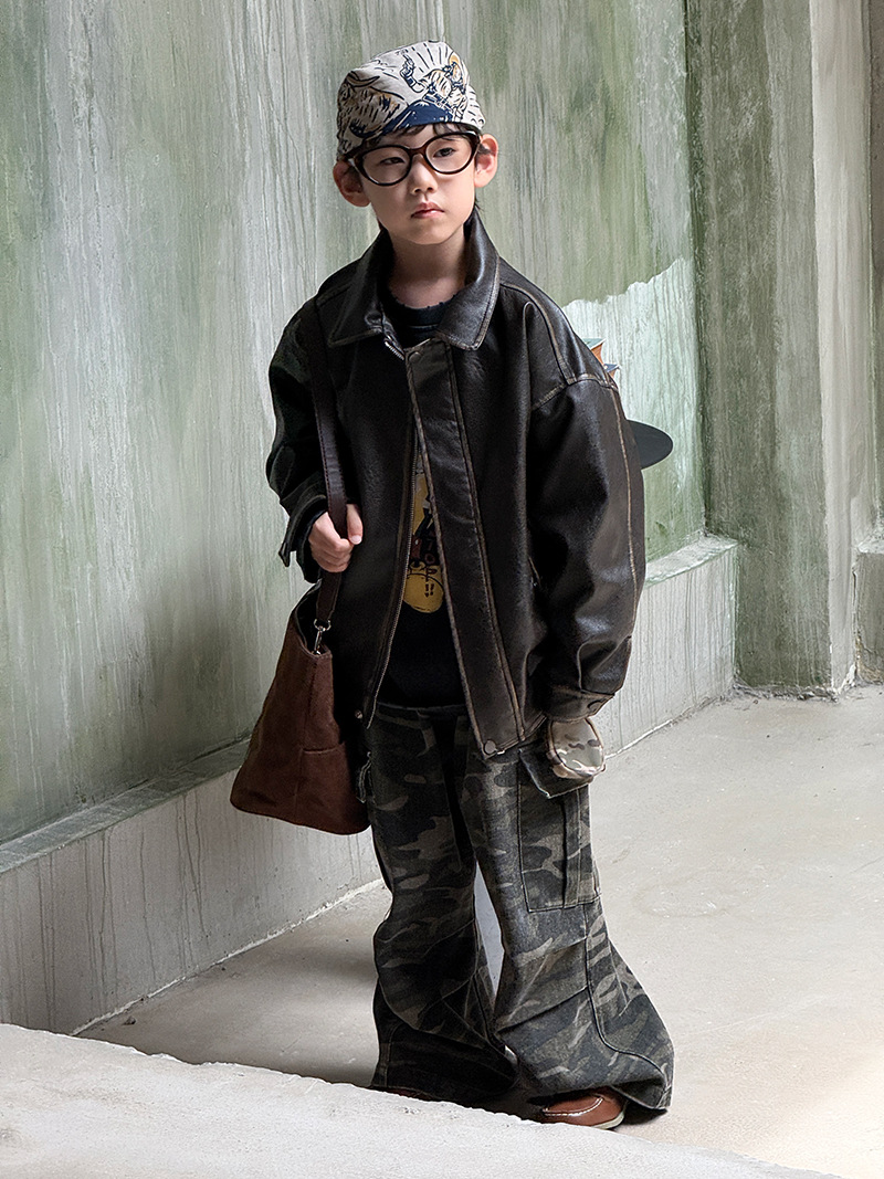 소년 가을 가죽 자켓 2025 새로운 봄, 가을 스타일 중소 어린이 자켓 소녀 미국 중공업 의류 유행스토어 가기