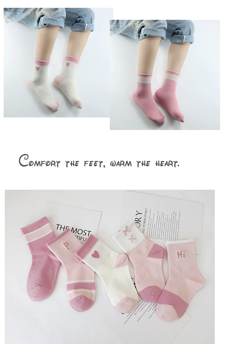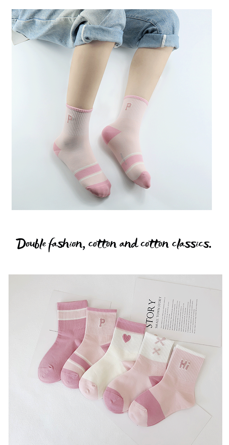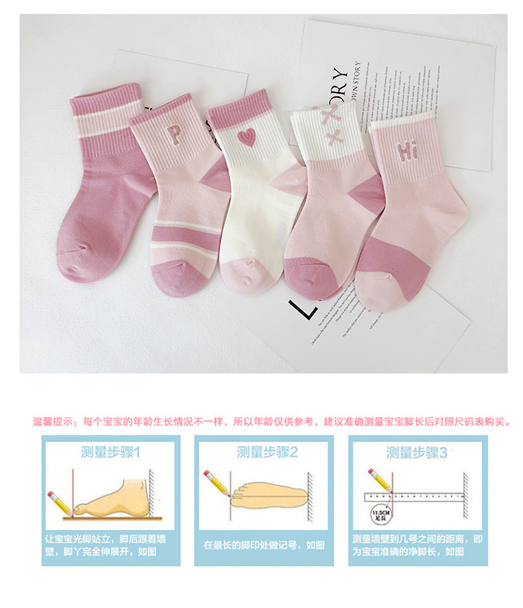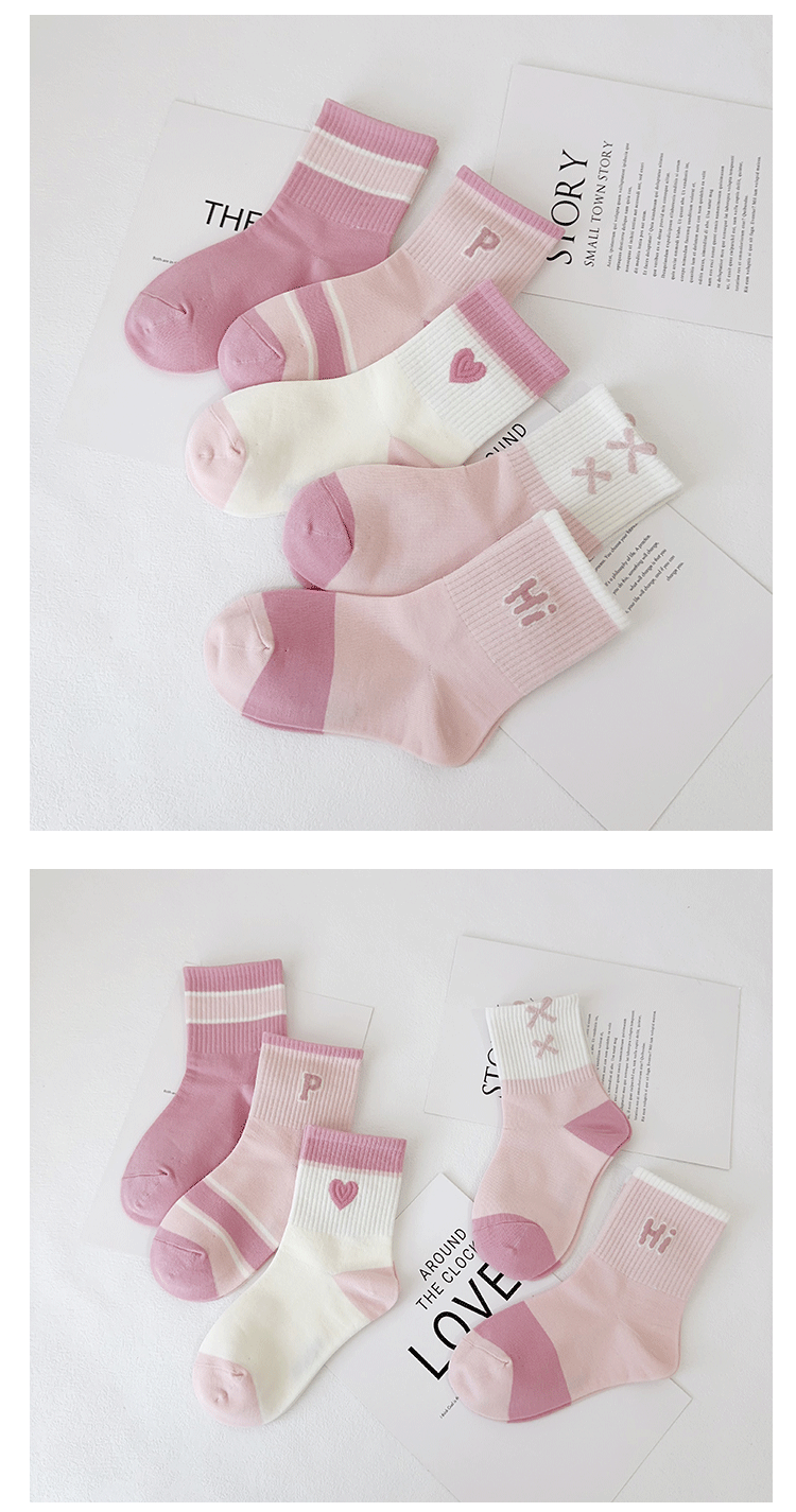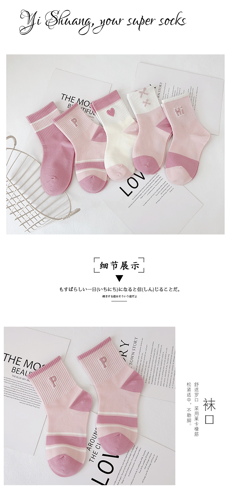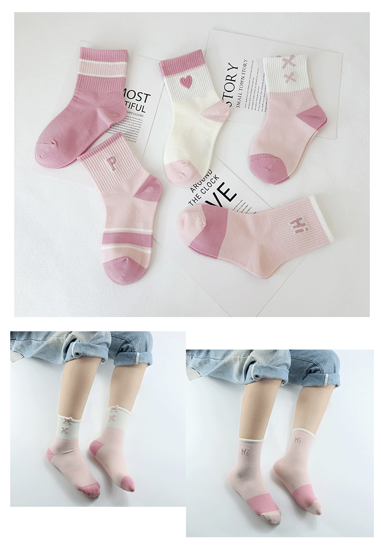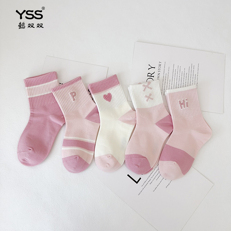 Yishuangshuang 어린이 양말 가을, 겨울 새로운 한국 스타일 나비 매듭 중간 튜브 양말 콤비네이션 코튼 러브 핑크 소녀 유행 양말