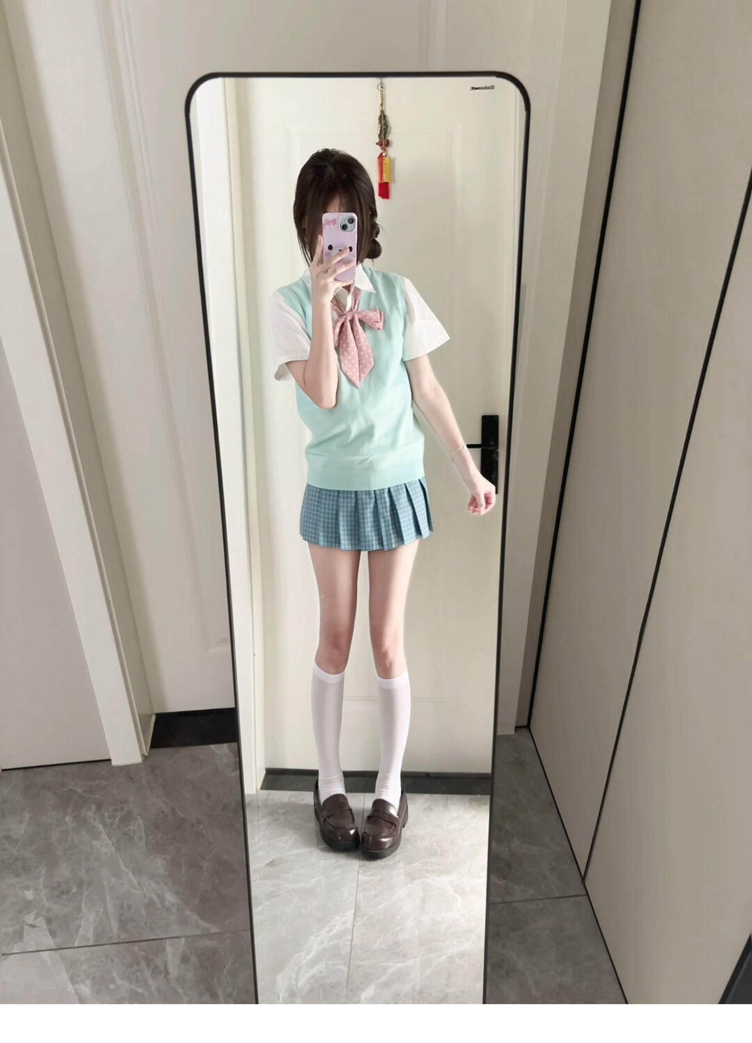 Jk 조끼 스웨터 여성 솔리드 컬러 기본 JK 탑 유니폼 풀오버 스웨터 봄과 여름 클래스 유니폼 레이어링스토어 가기