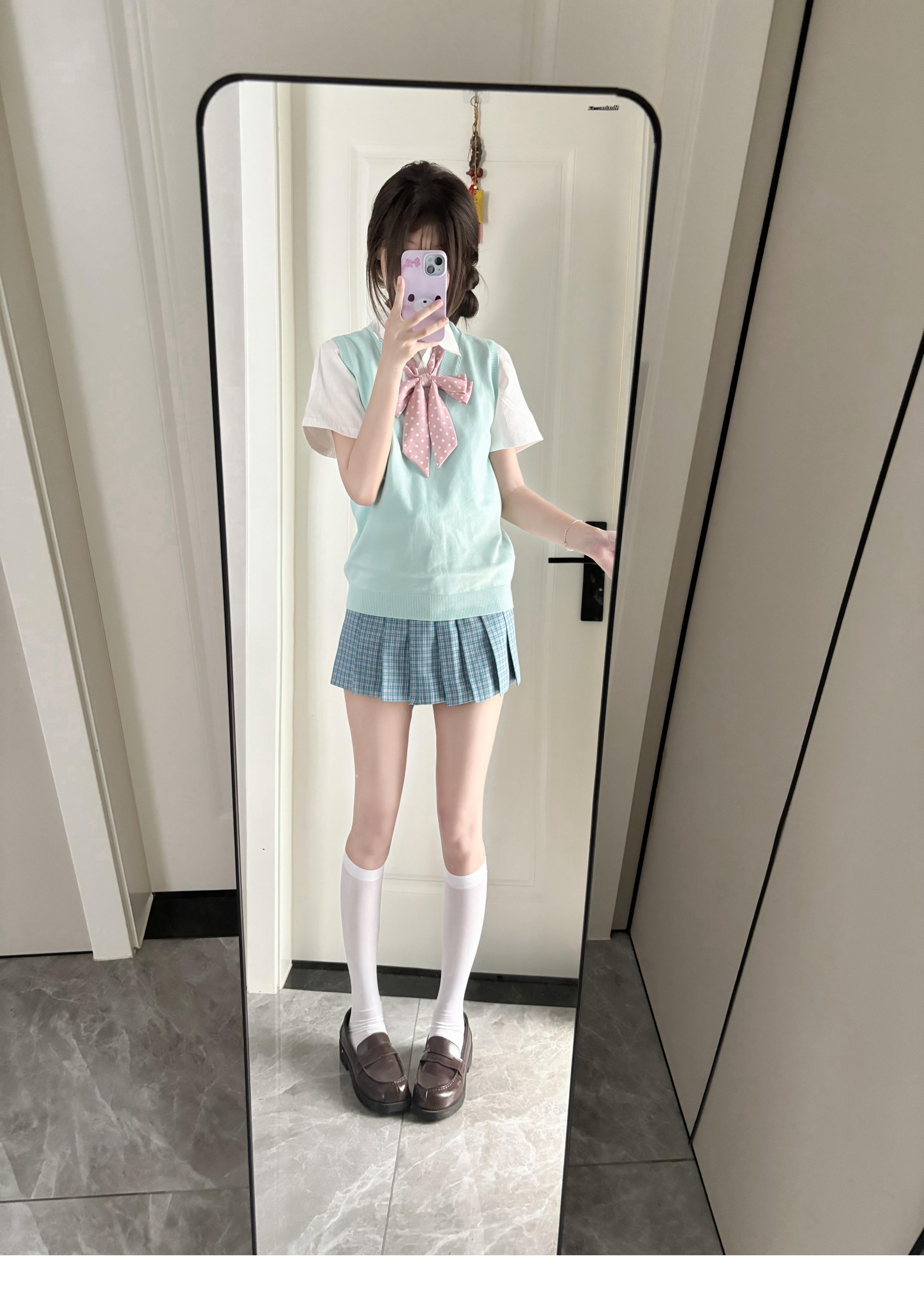 Jk 조끼 스웨터 여성 솔리드 컬러 기본 JK 탑 유니폼 풀오버 스웨터 봄과 여름 클래스 유니폼 레이어링