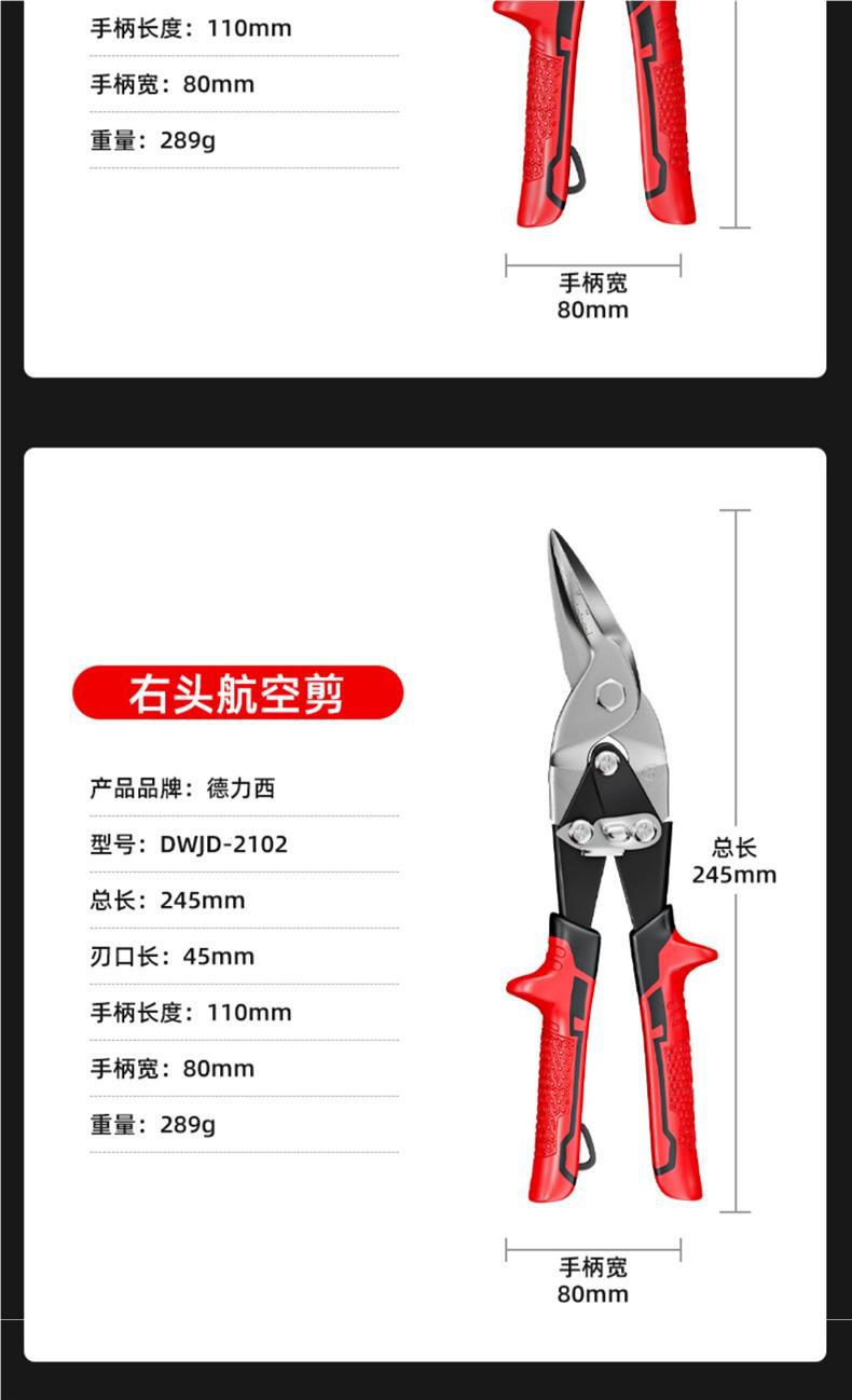 Delixi 철 가위, 산업용 키골, 항공 알루미늄 버클 플레이트, 곡선 노즐, 스테인레스 스틸, 가벼운 철 와이어 특수 가위