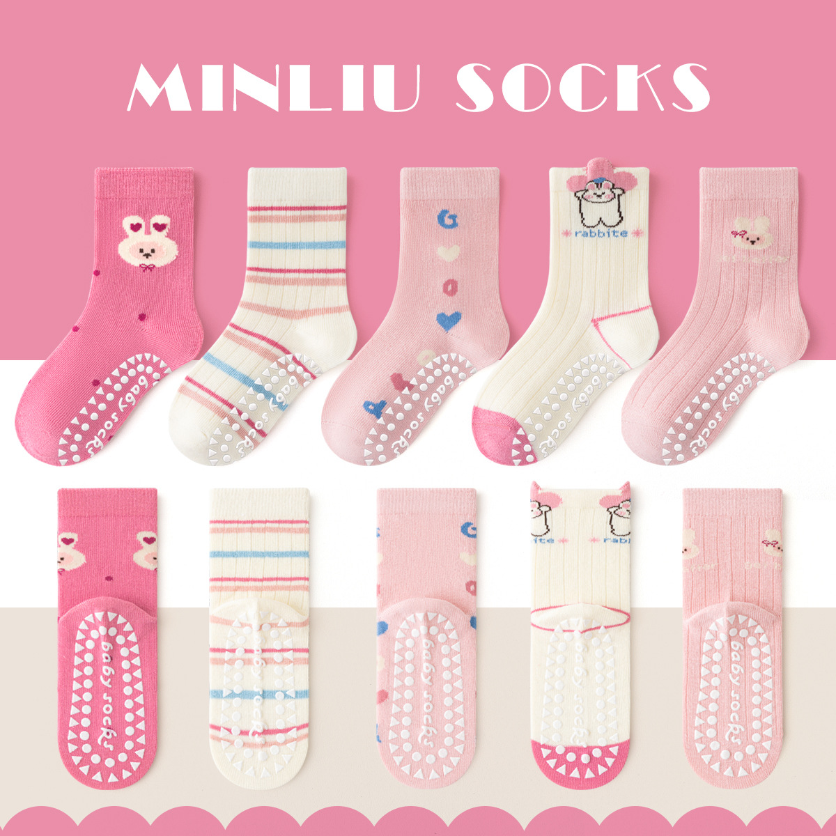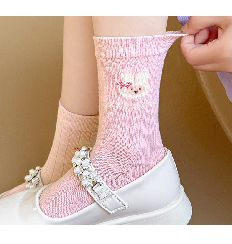 미끄럼 방지 점착제 가을 겨울 소녀 양말 토끼 중간 튜브 양말 가을 중대형 어린이 면 양말 아기 양말 도매