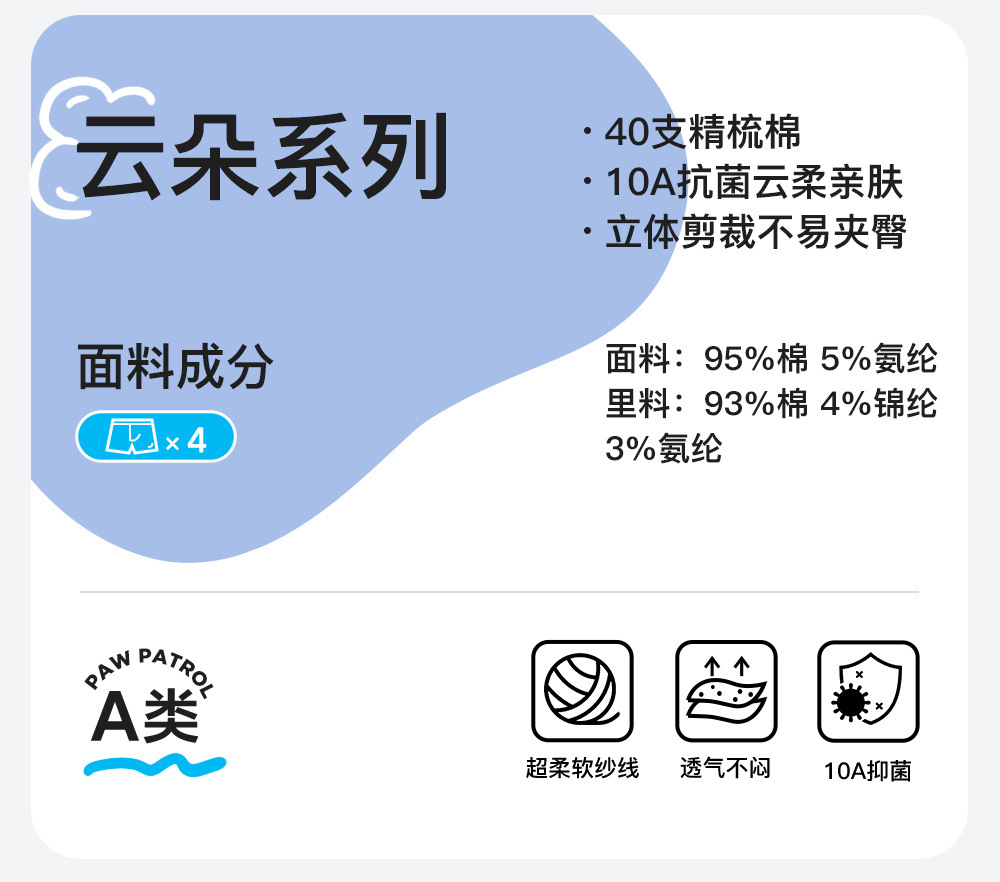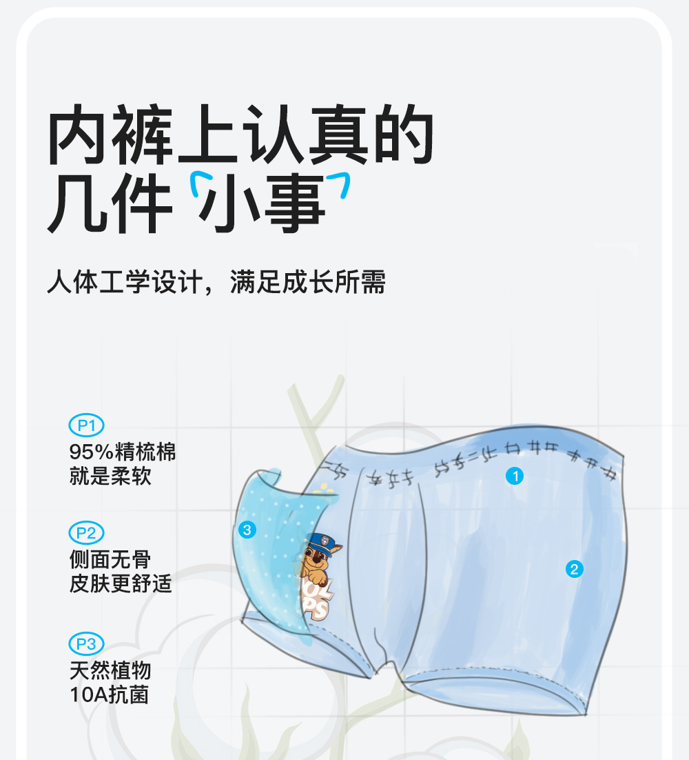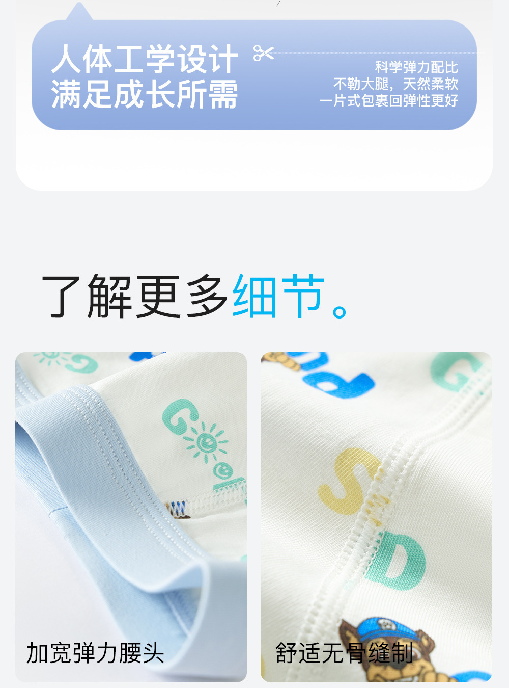 Paw Patrol 어린이 속옷 카테고리 A 복서 팬티 만화 어린이용 엉덩이 클립 없음 아기 소년 복서 팬티 4개 박스형스토어 가기