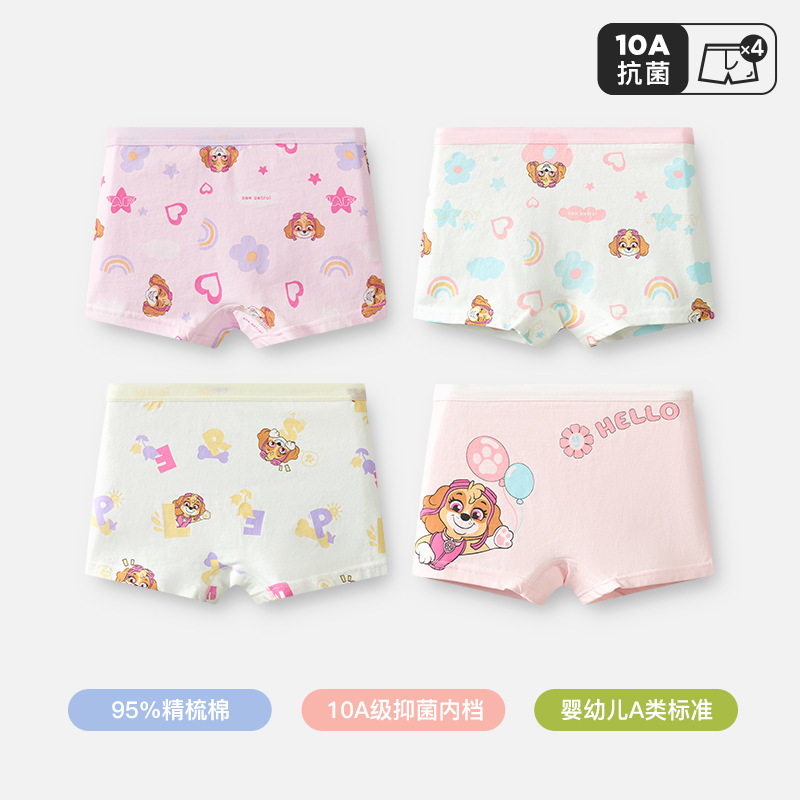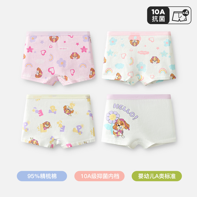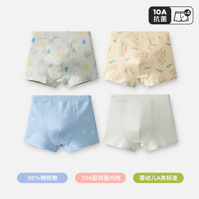 Paw Patrol 어린이 속옷 카테고리 A 복서 팬티 만화 어린이용 엉덩이 클립 없음 아기 소년 복서 팬티 4개 박스형