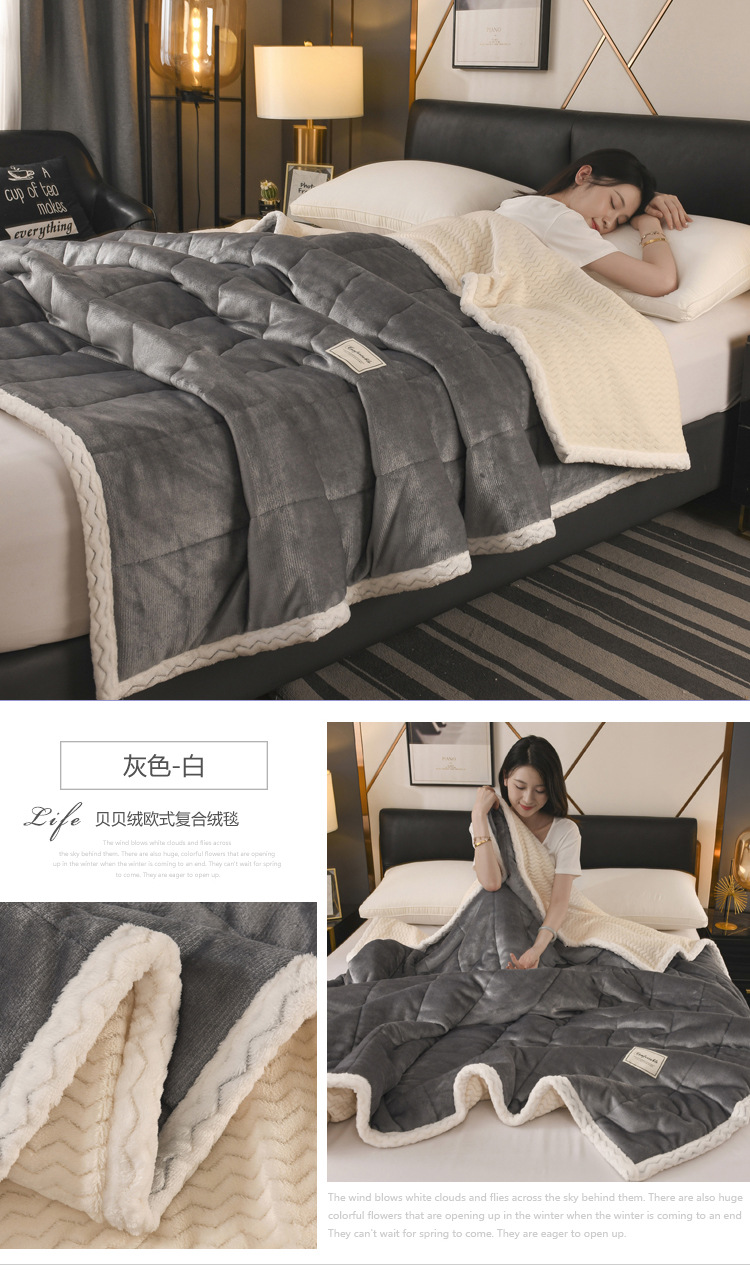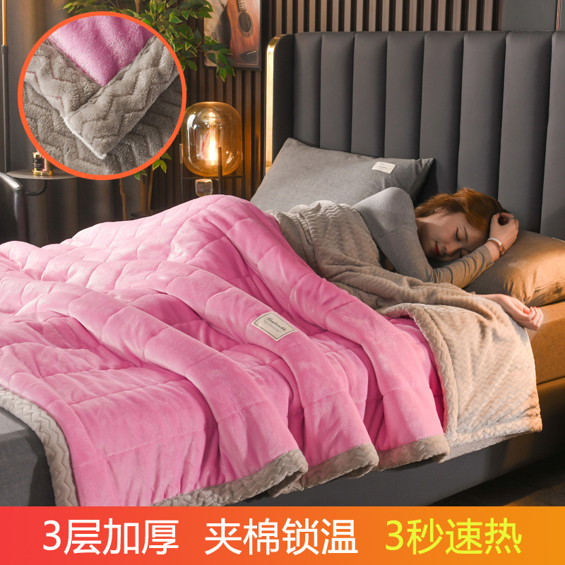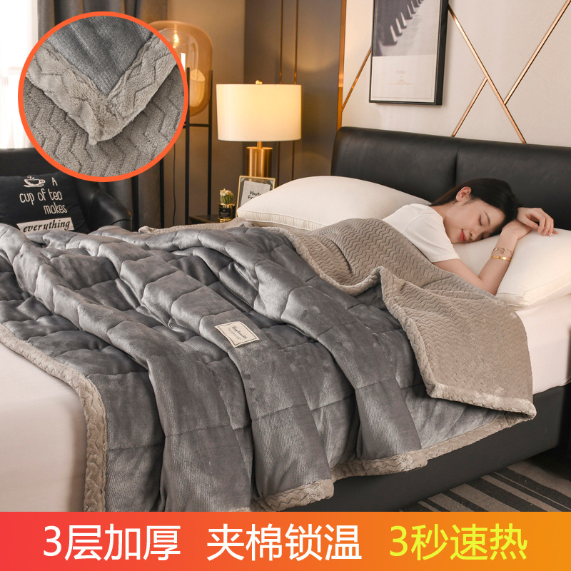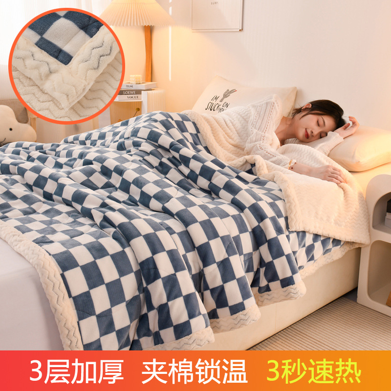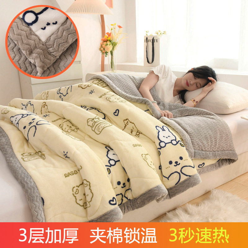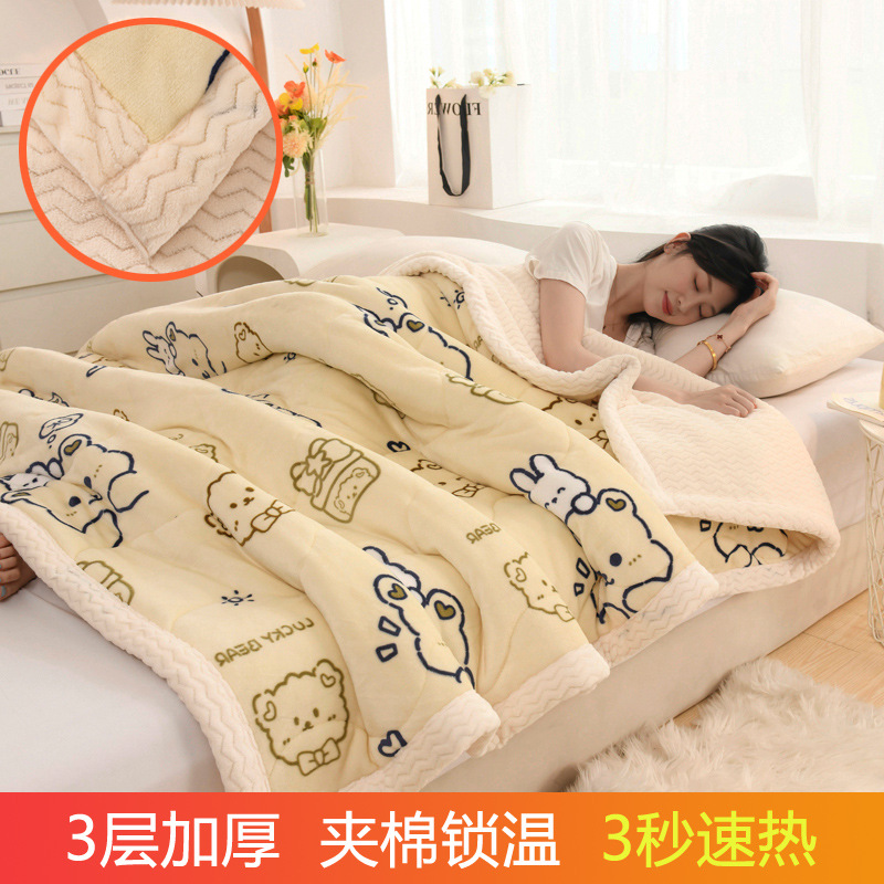 밀크 벨벳 프린트 담요 3겹 누비 산호 벨벳 사무실 낮잠 담요 학생 기숙사 싱글 소형 담요