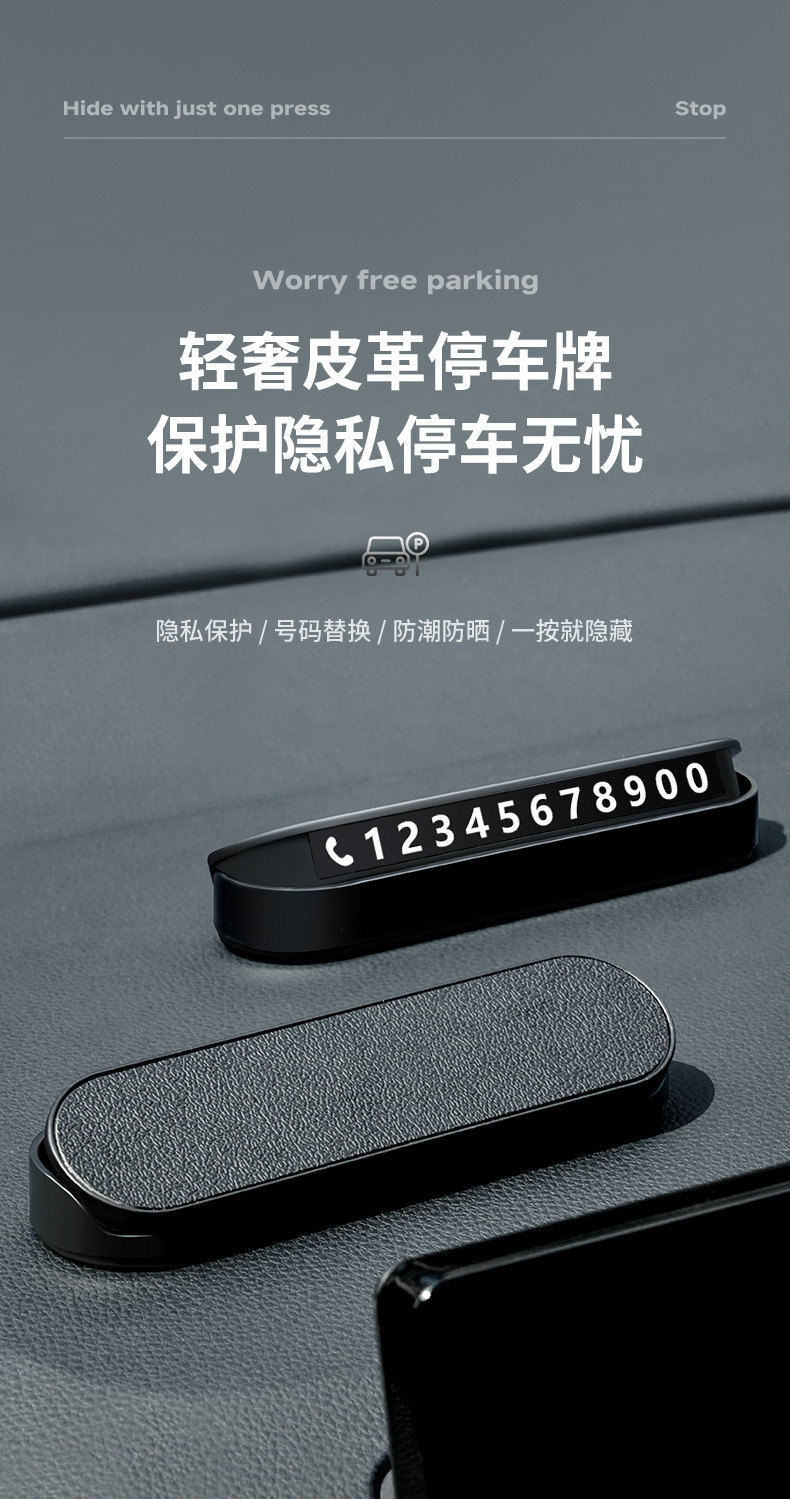 새로운 가죽 임시 주차 표시 자동차 휴대 전화 번호판 이동 번호 홀더 고급 자동차 인테리어 용품