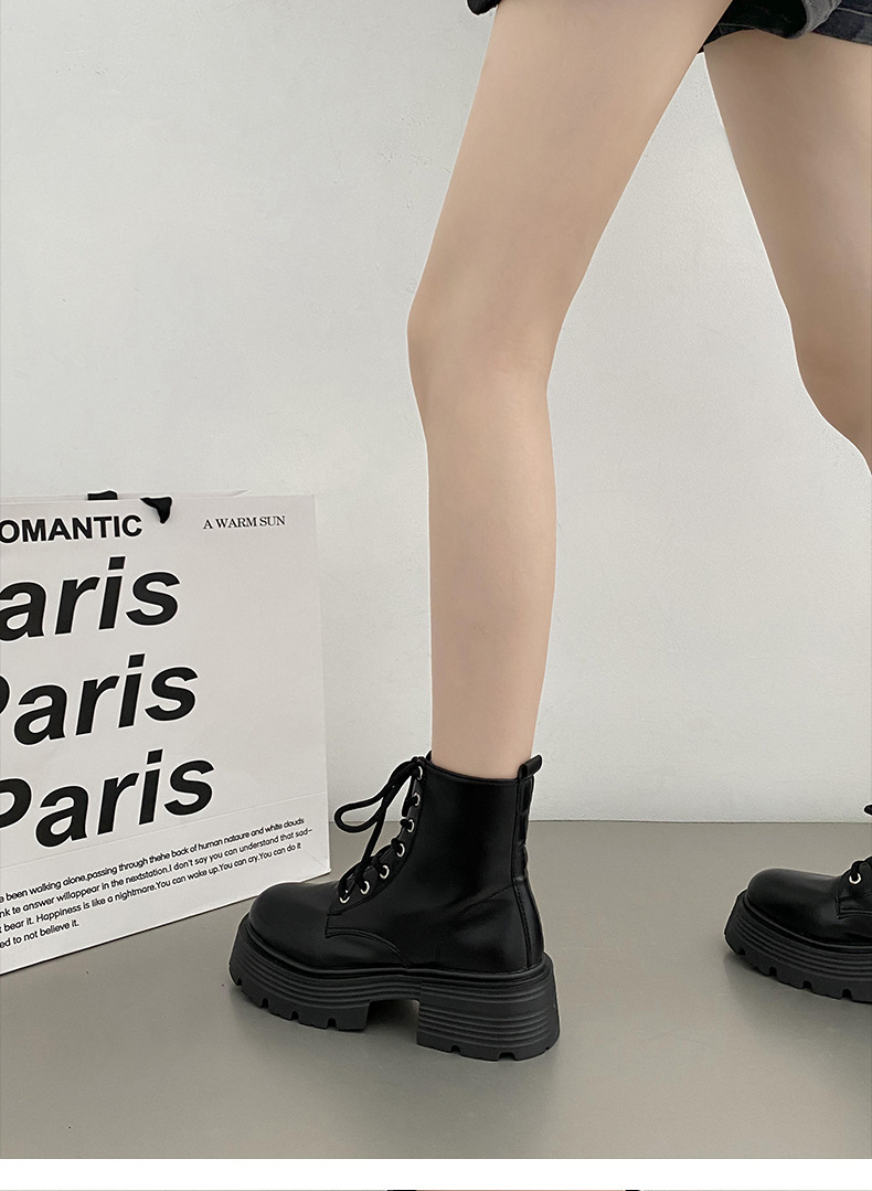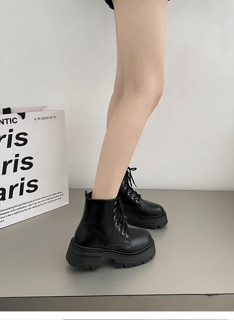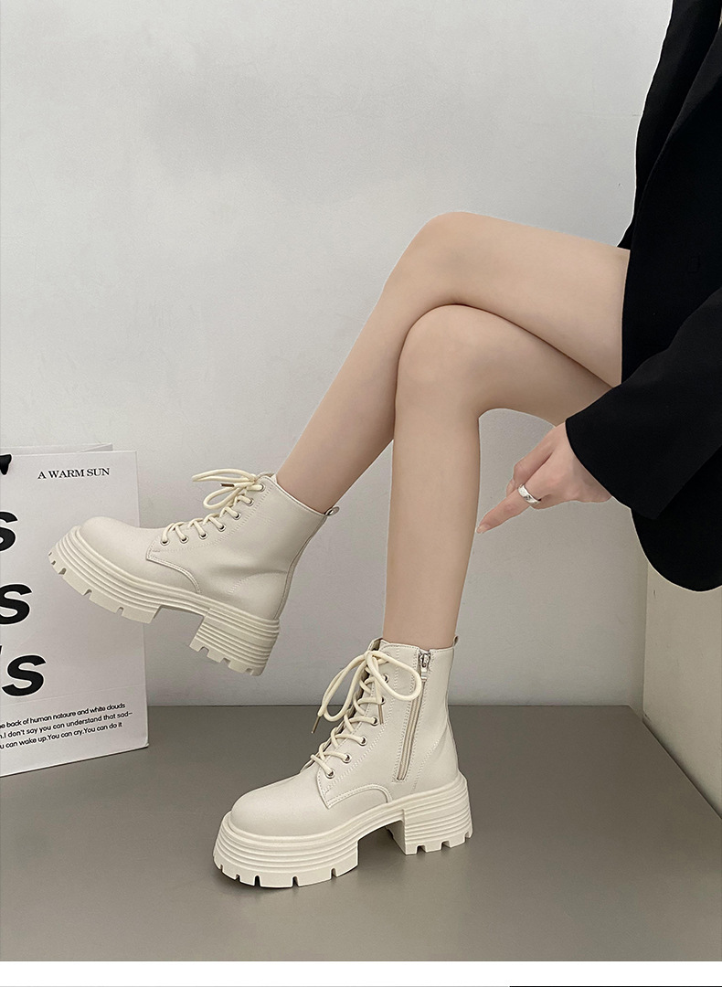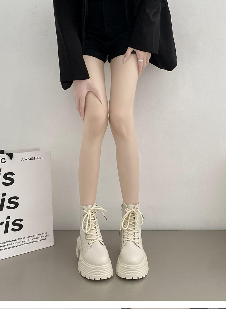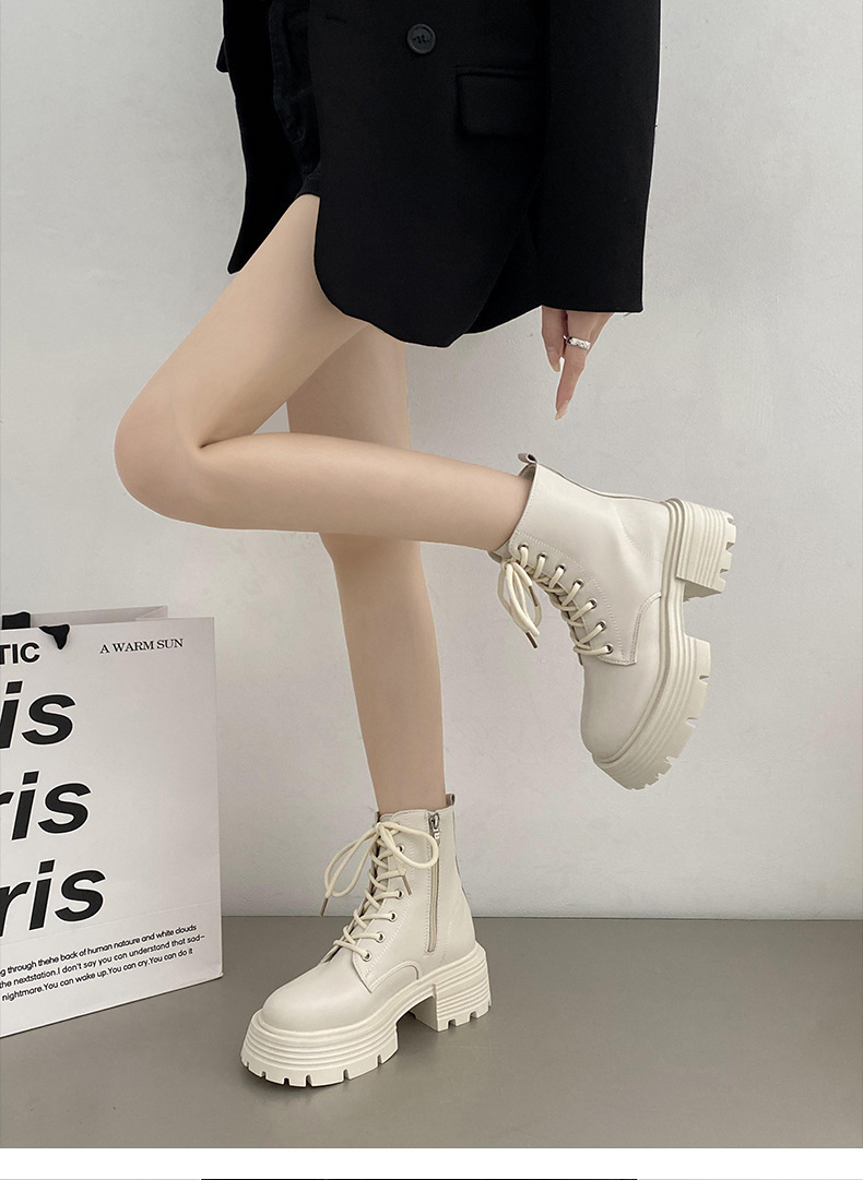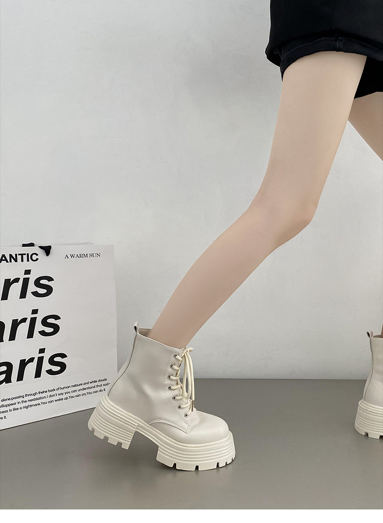英伦风爆款白色厚底马丁靴女2025新款秋季机车小个子系带显瘦短靴스토어 가기