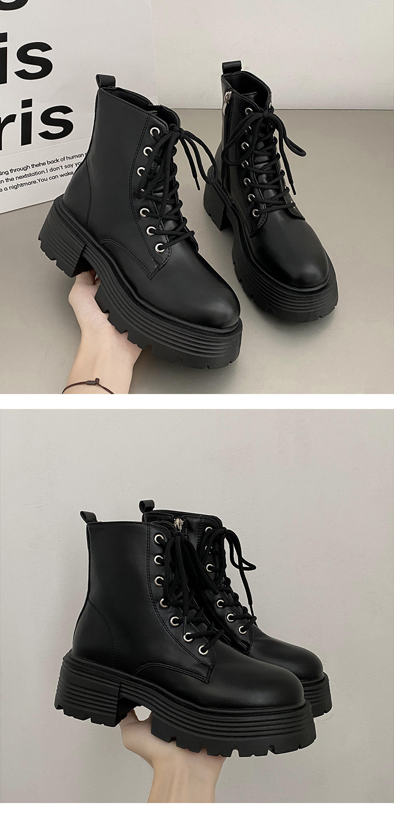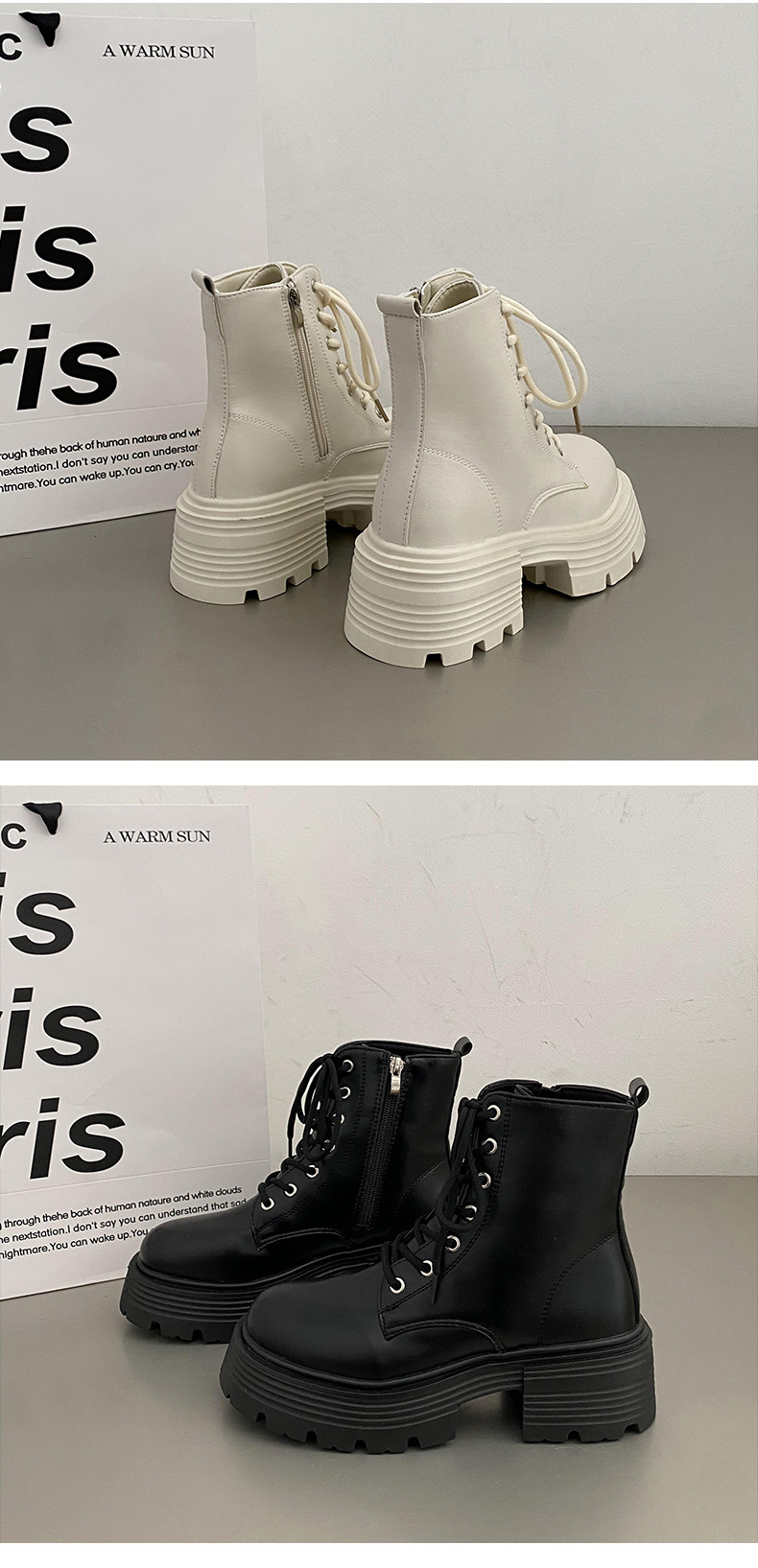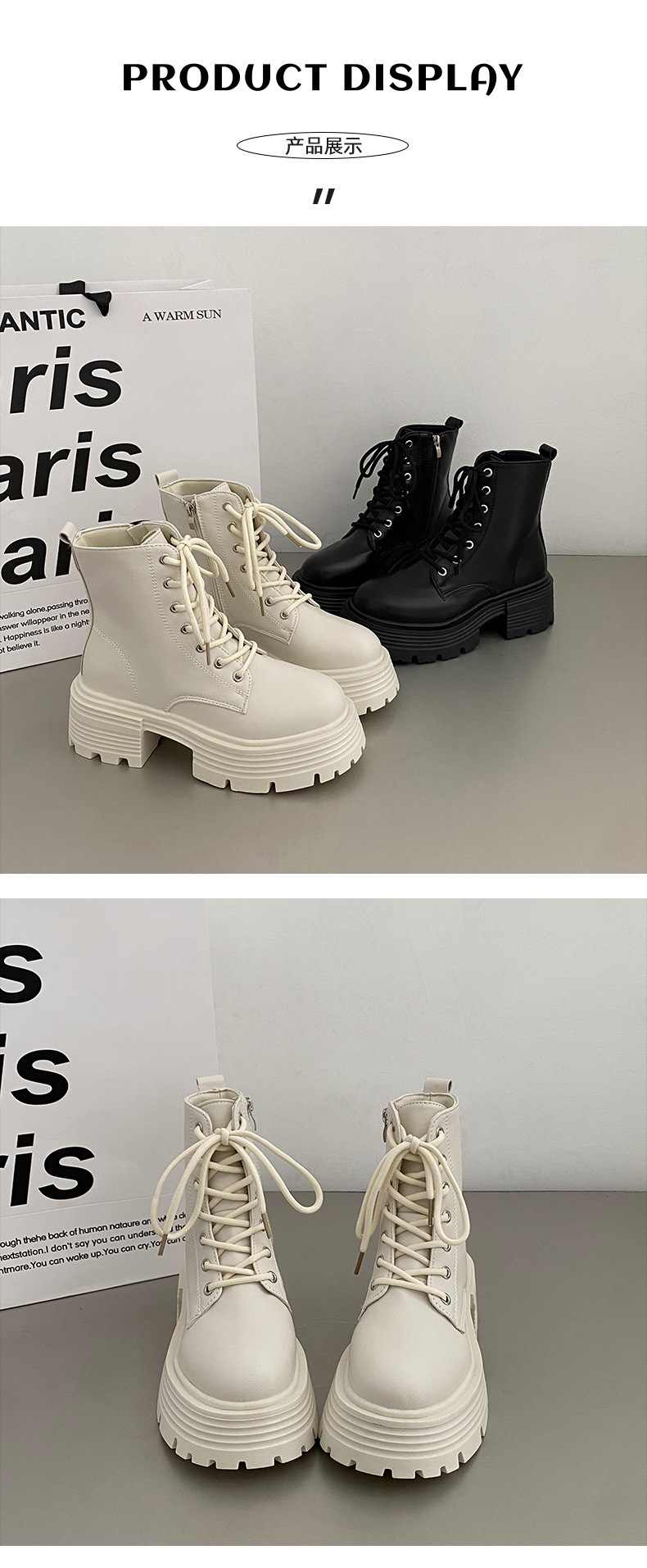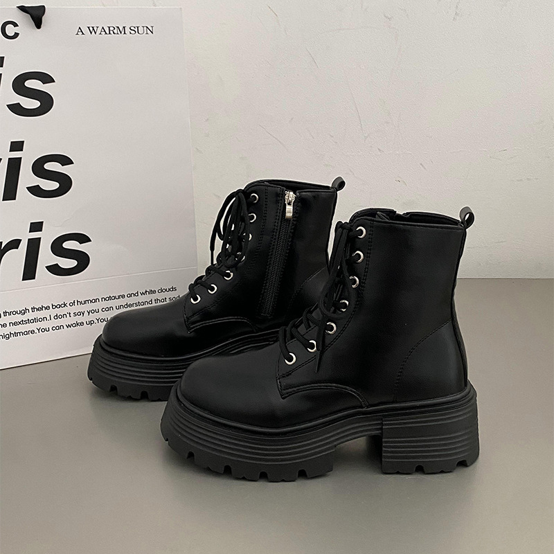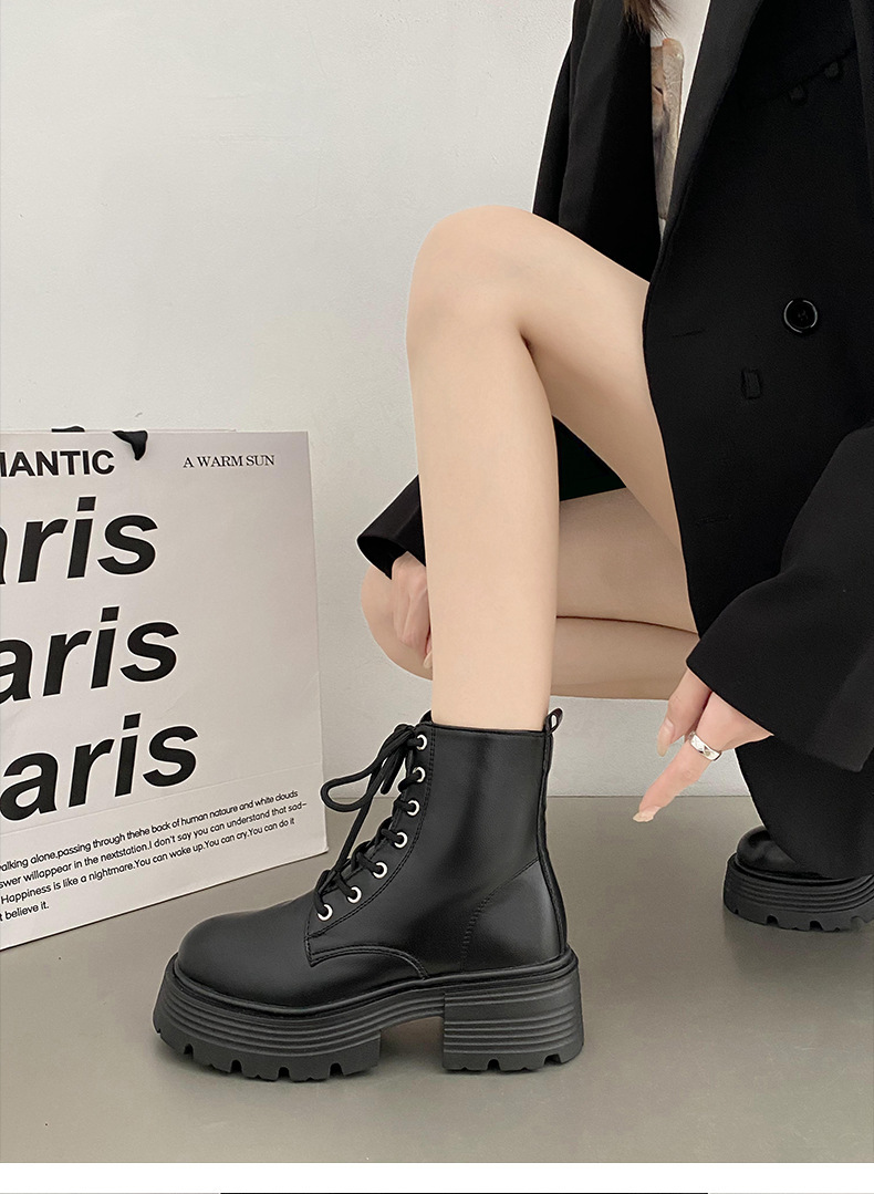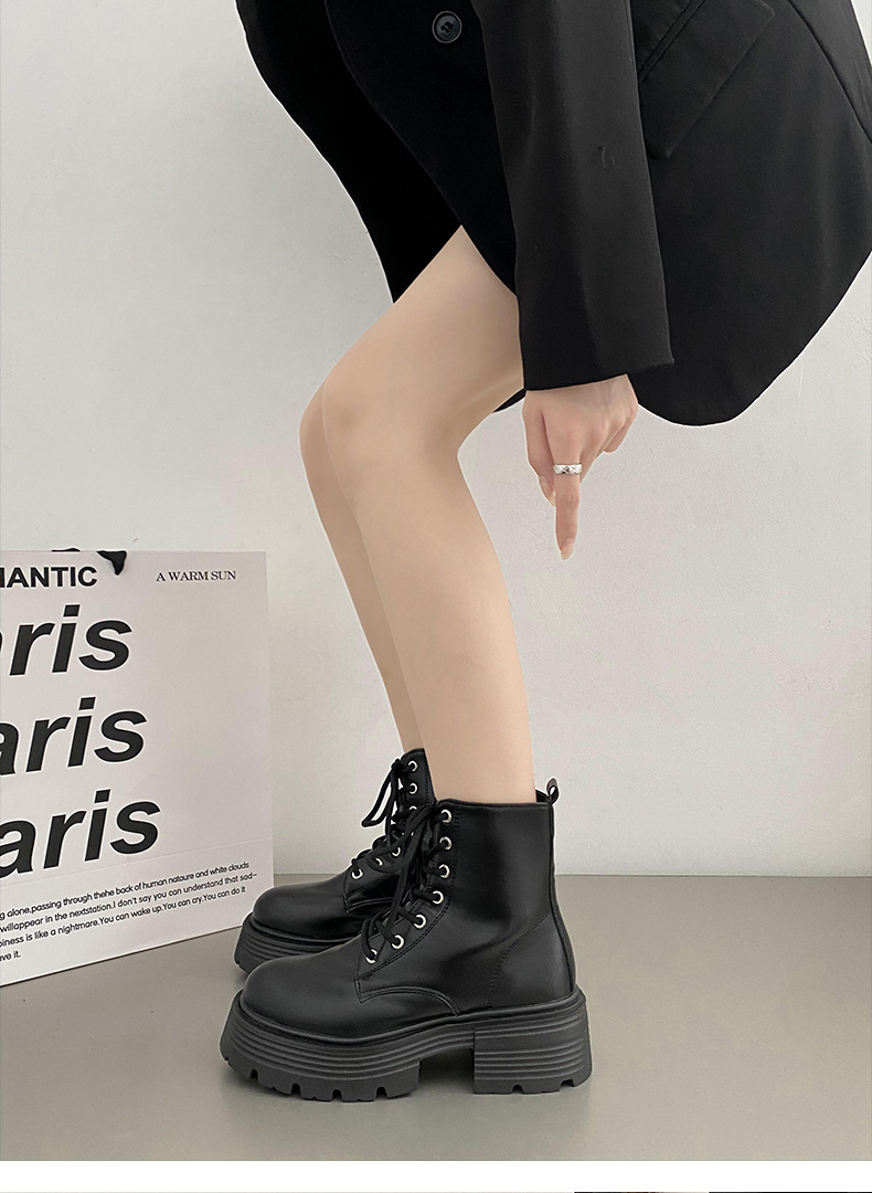 英伦风爆款白色厚底马丁靴女2025新款秋季机车小个子系带显瘦短靴스토어 가기