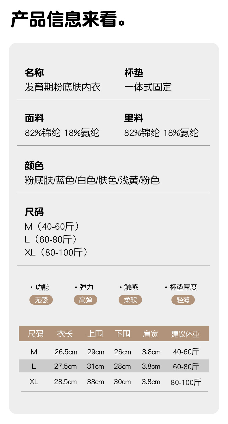 신발 개발기 여아 속옷, 무봉제 중, 고등학생 스포츠 조끼, 사춘기 돌출 방지 여아 브라스토어 가기