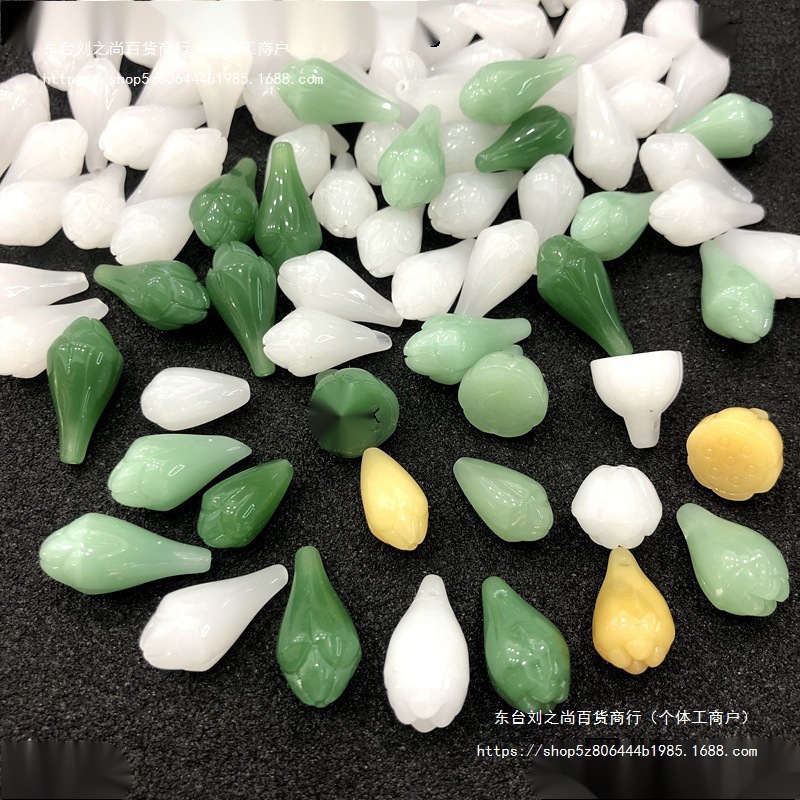 半孔横孔琉璃花苞花瓣仿玉绿色黄玉古风神棍发簪配件手工材垒德株스토어 가기