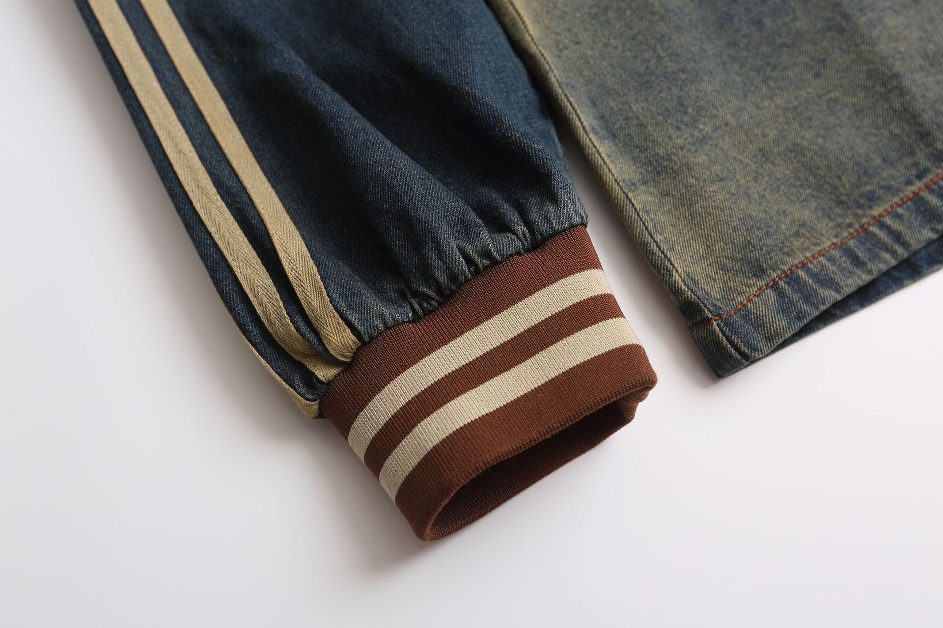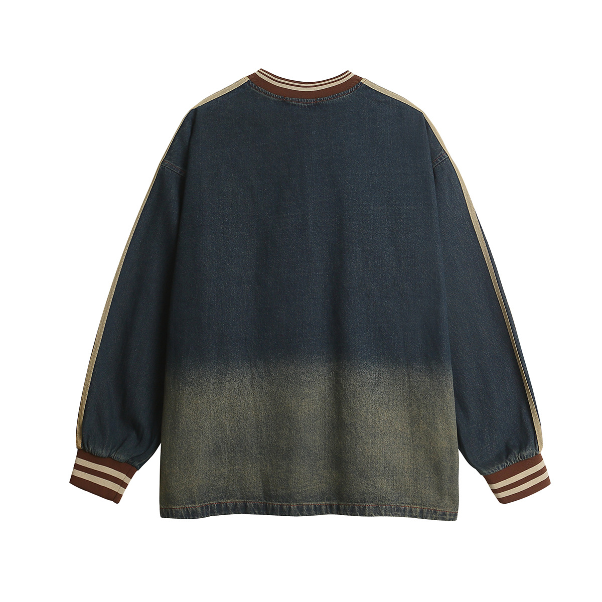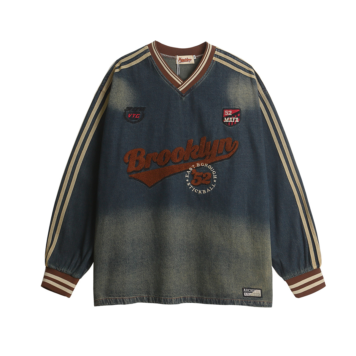 嘉衣库男装2025秋季新款美式潮牌复古校园风重工刺绣水洗牛仔卫衣