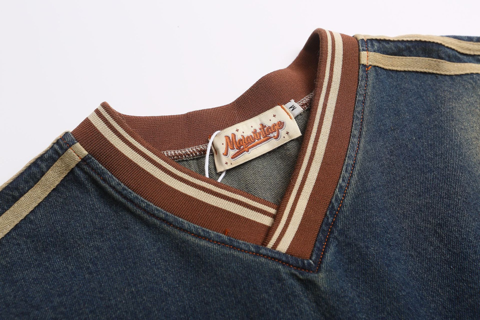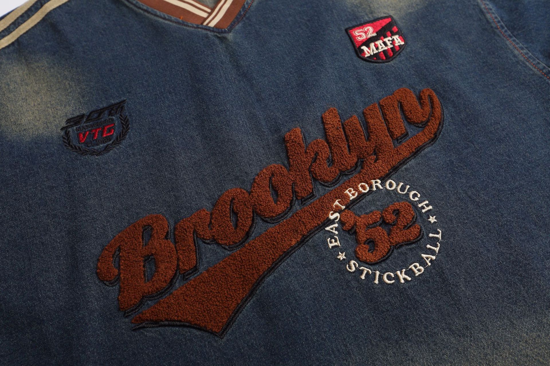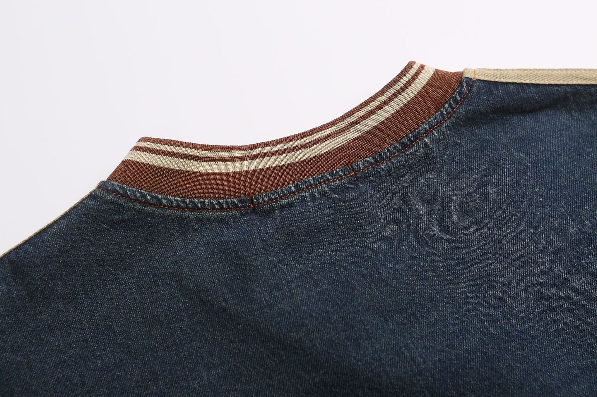 嘉衣库男装2025秋季新款美式潮牌复古校园风重工刺绣水洗牛仔卫衣
