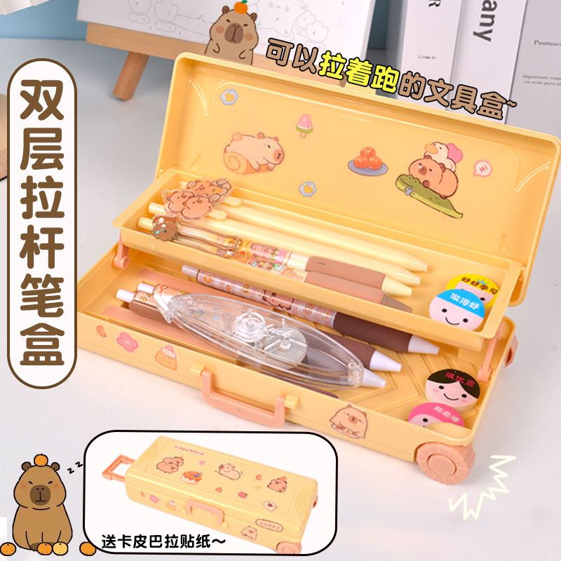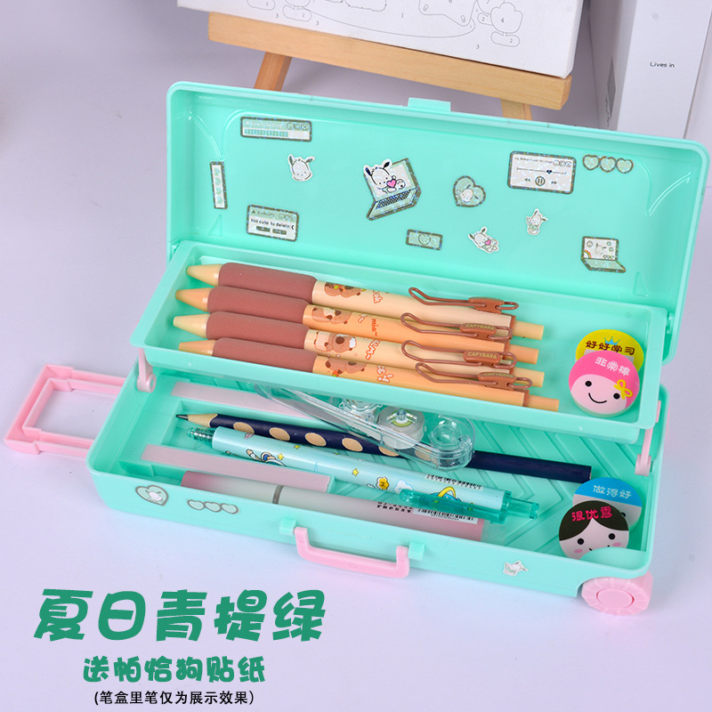 새로운 트롤리 상자 문구 상자 학생 대용량 더블 레이어 문구 상자 다기능 가방 연필 상자 문구 상자스토어 가기