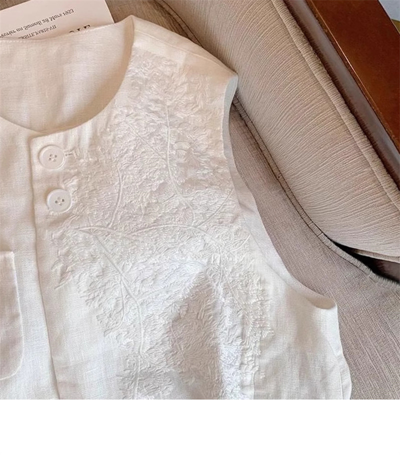 2025 여름 중공업 자수 린넨 조끼 재킷 여성 여름 짧은 민소매 조끼 조끼 재킷