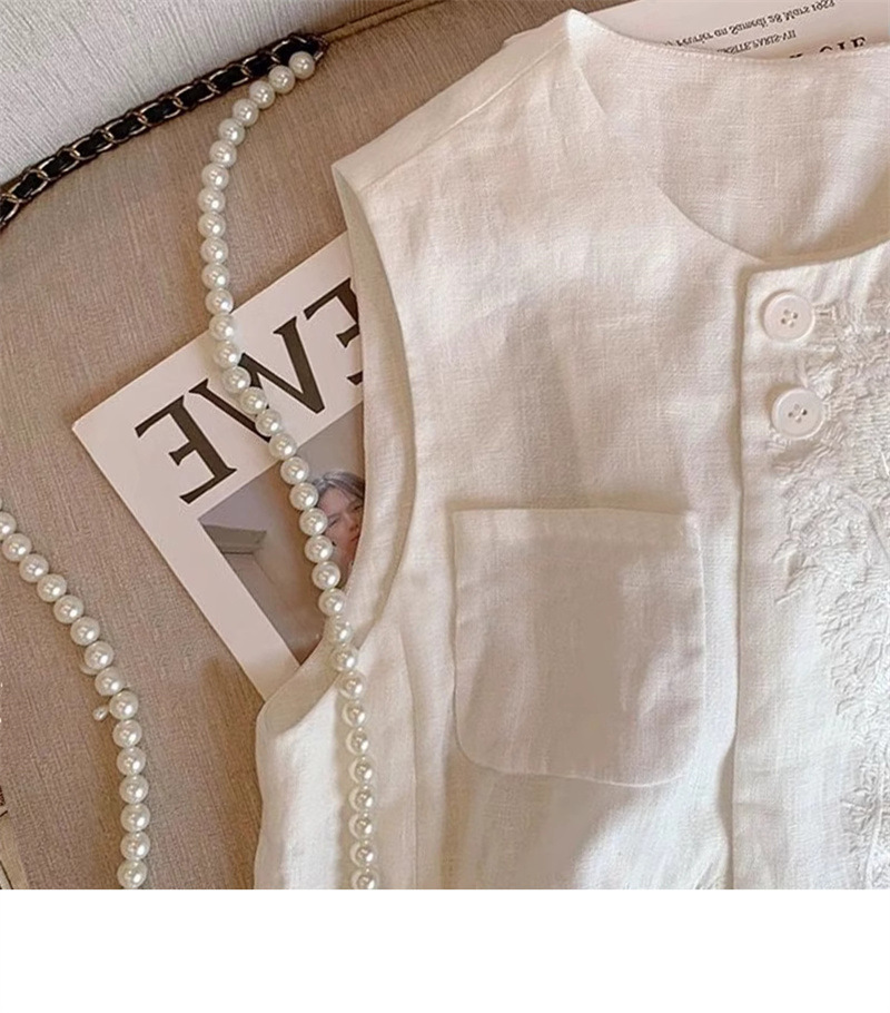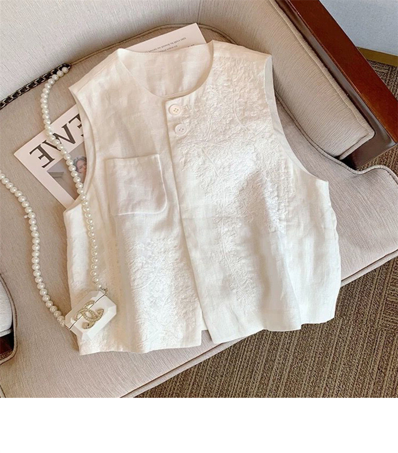 2025 여름 중공업 자수 린넨 조끼 재킷 여성 여름 짧은 민소매 조끼 조끼 재킷스토어 가기