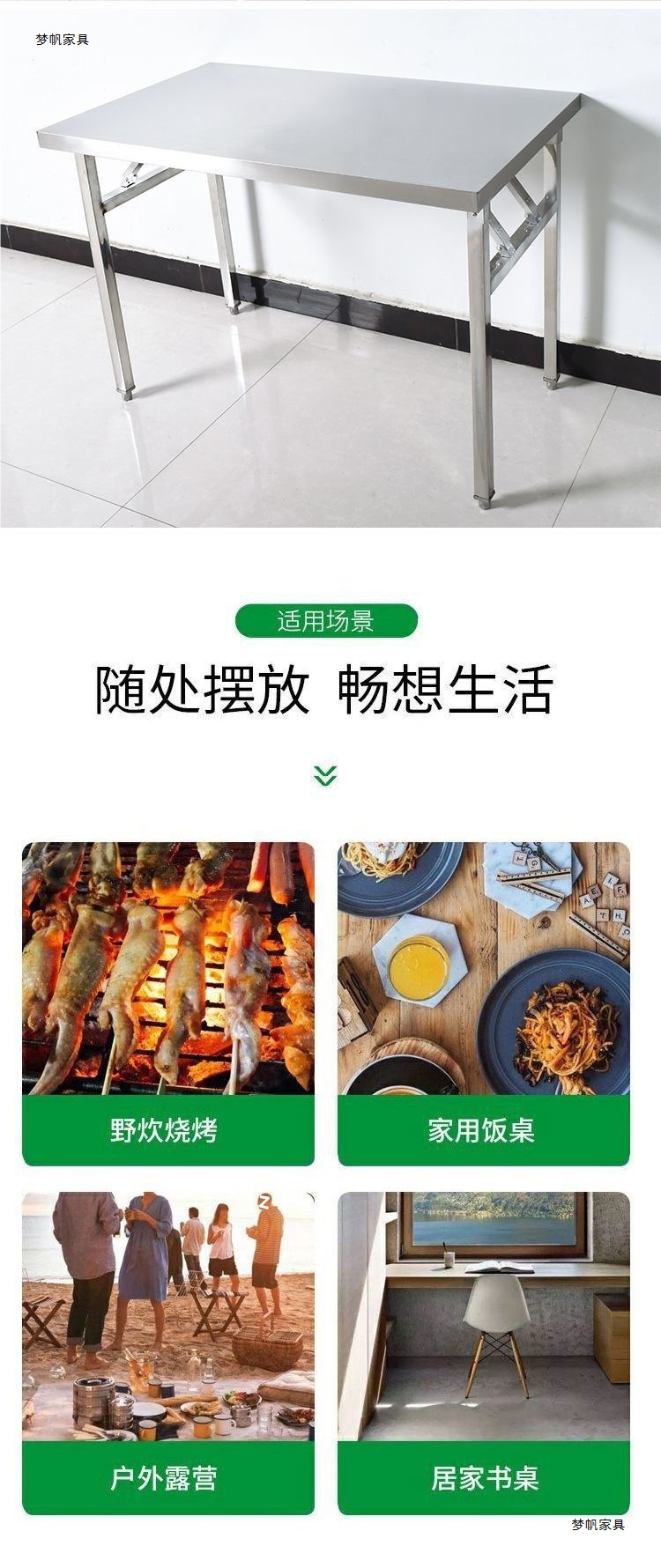 스테인레스 스틸 접이식 테이블 식탁 야외 식탁 스톨 테이블 가정용 소형 단순 쓰기 학습 테이블