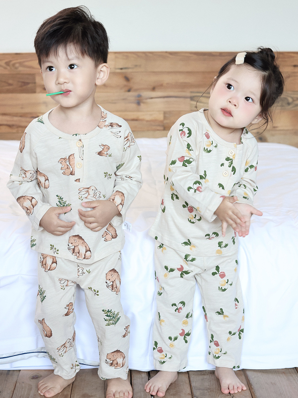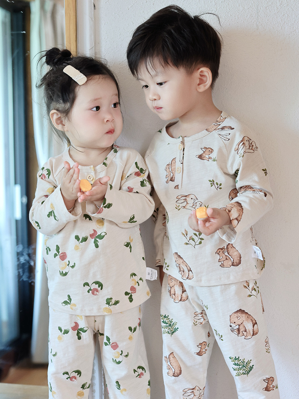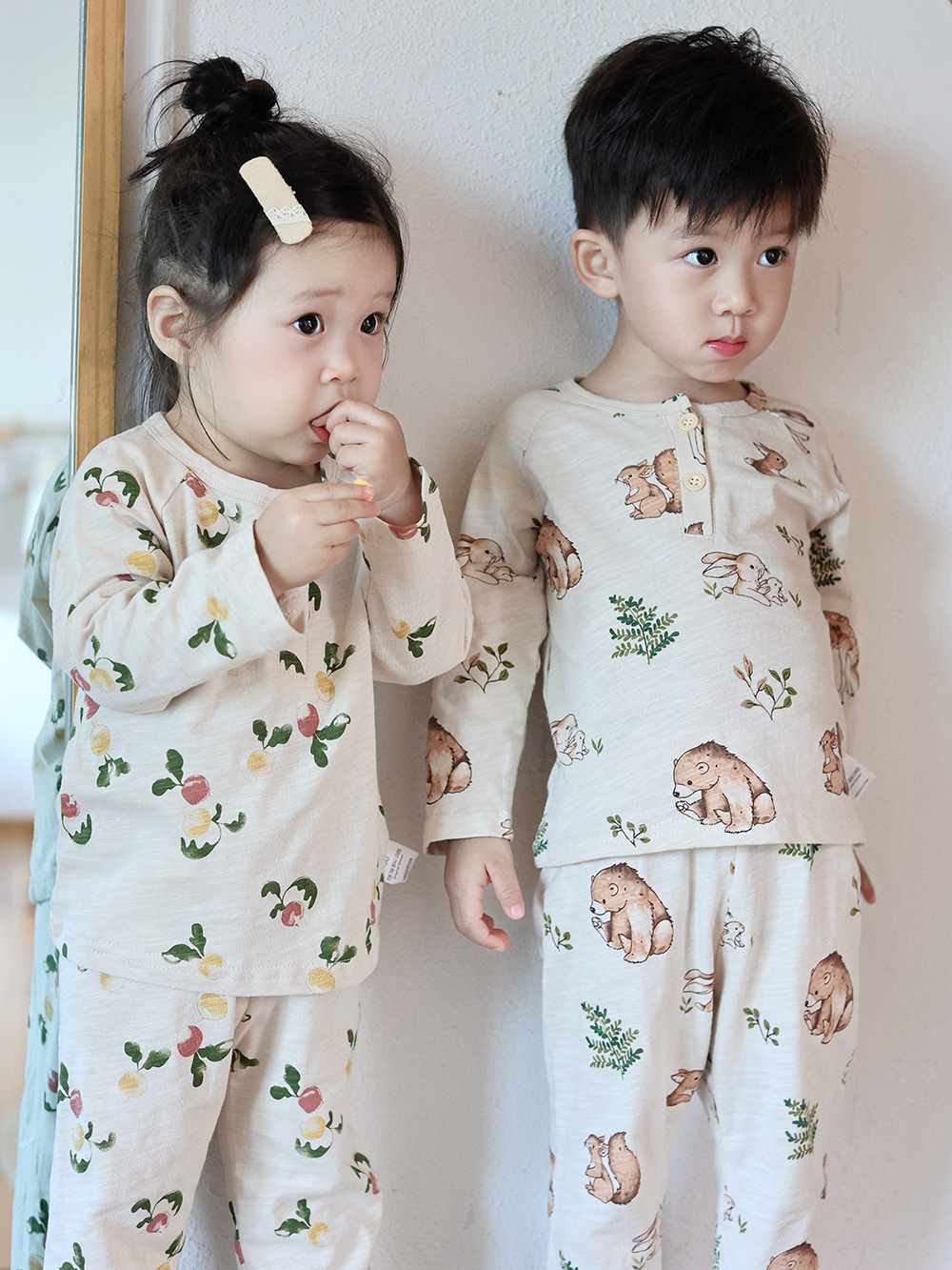 아동 잠옷 가을 긴팔 얇은 대나무 면 에어컨 옷 아기 가정복 소년 소녀 정장스토어 가기
