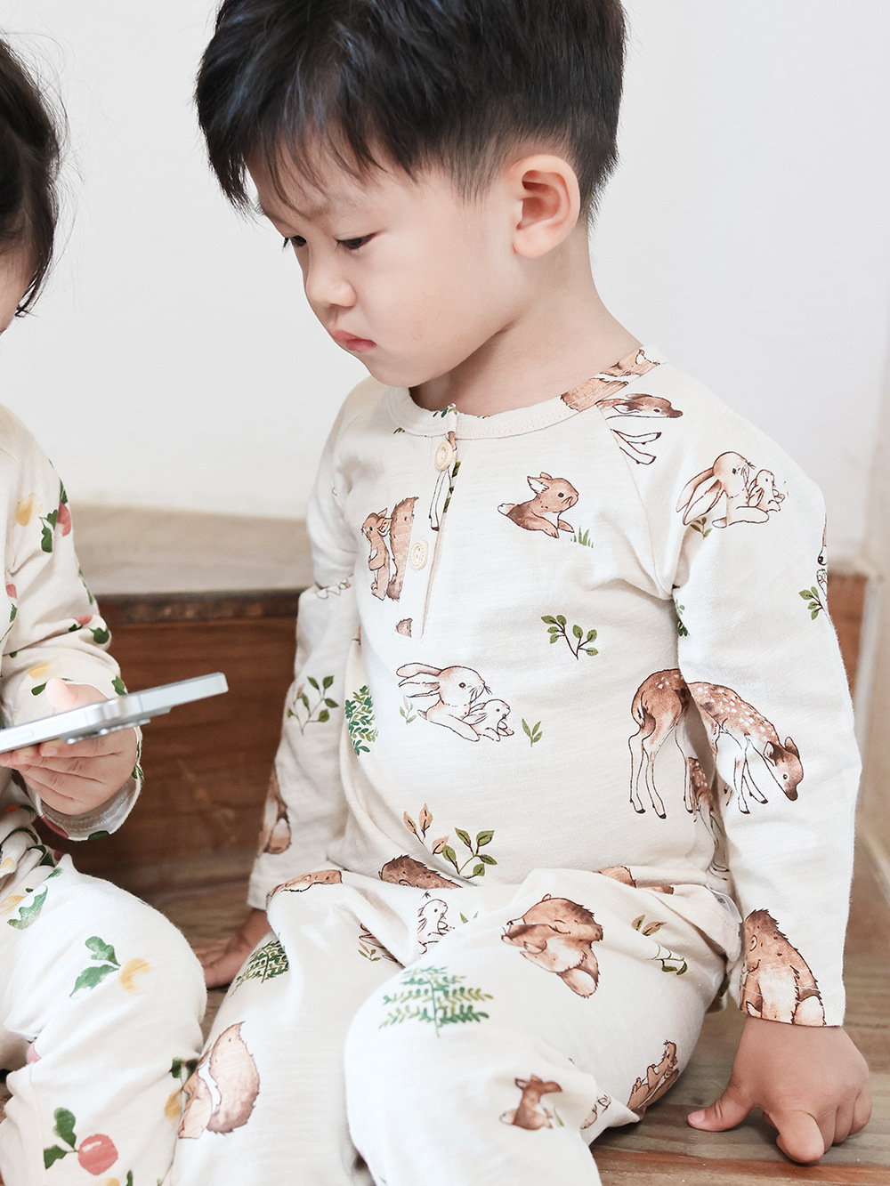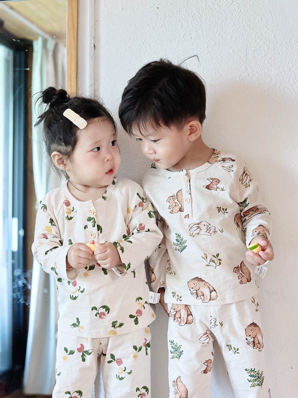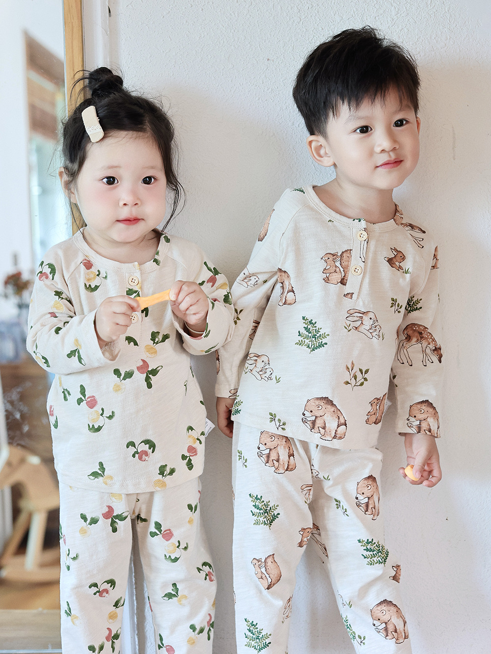 아동 잠옷 가을 긴팔 얇은 대나무 면 에어컨 옷 아기 가정복 소년 소녀 정장스토어 가기