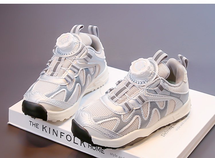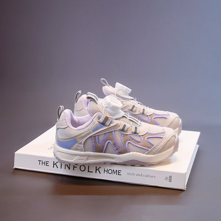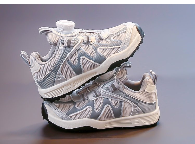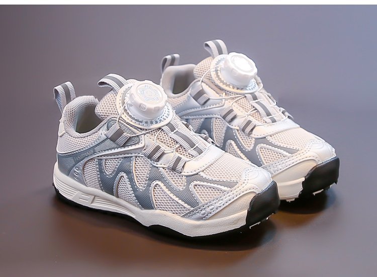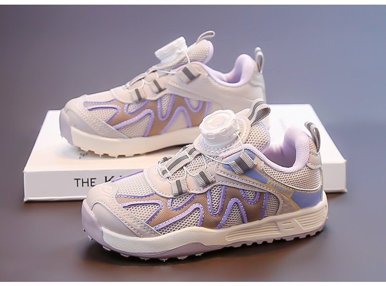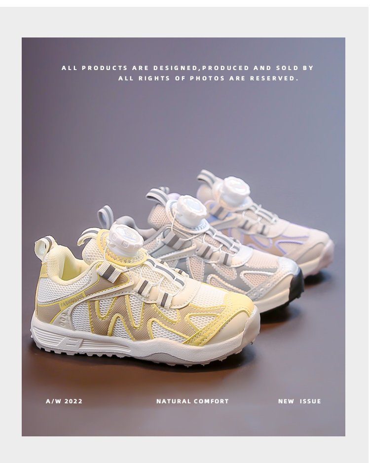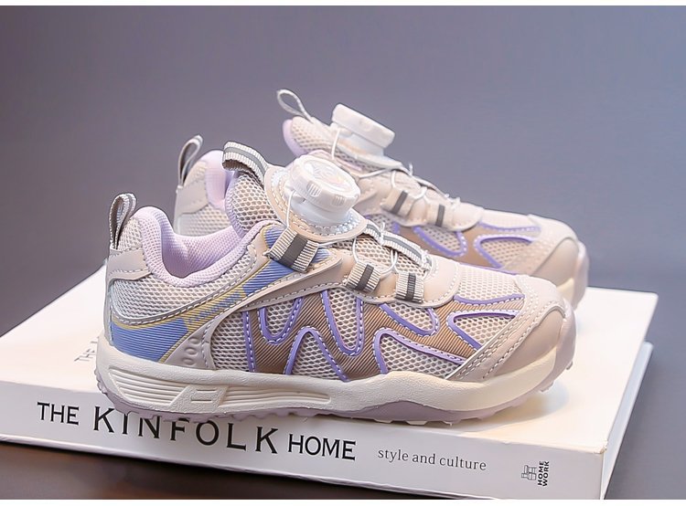 女童运动鞋2025新款春秋儿童跑步鞋男童网面透气女大童旋钮网鞋