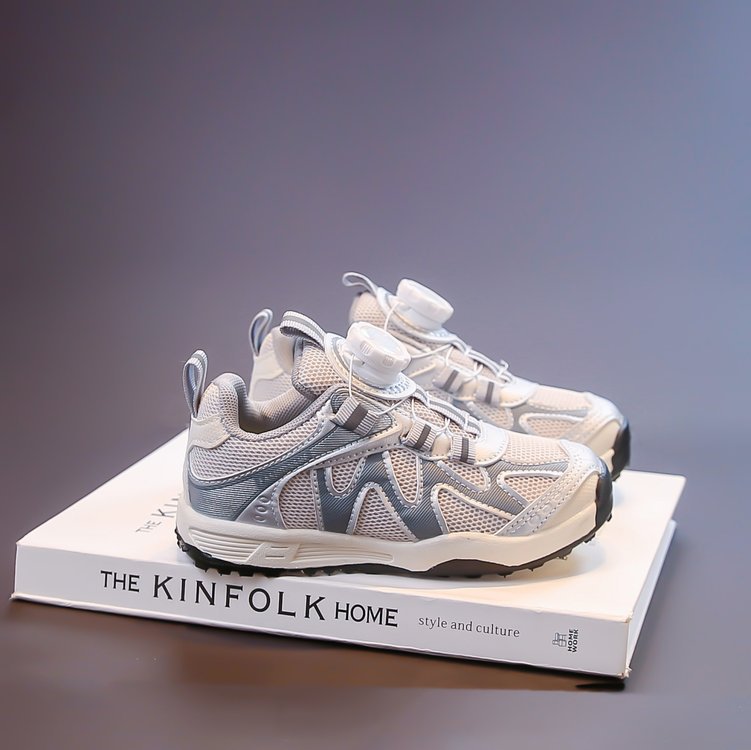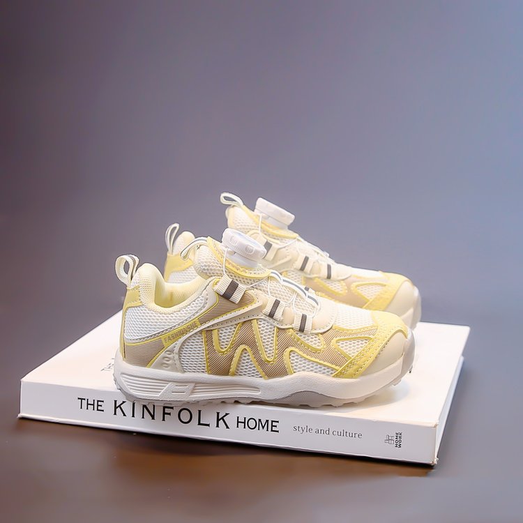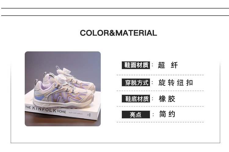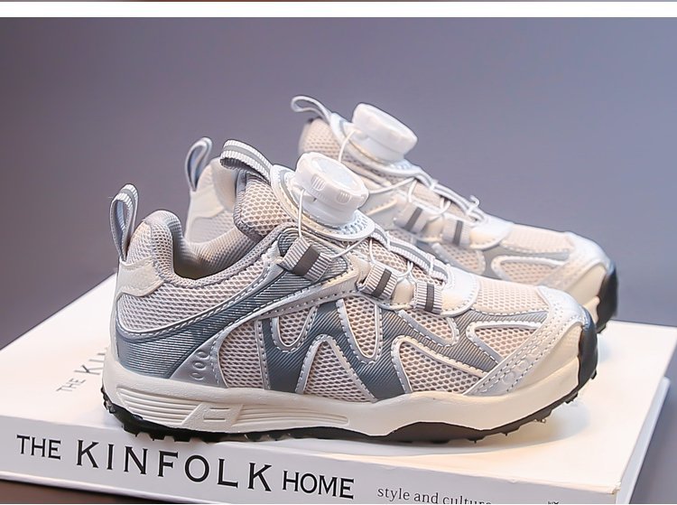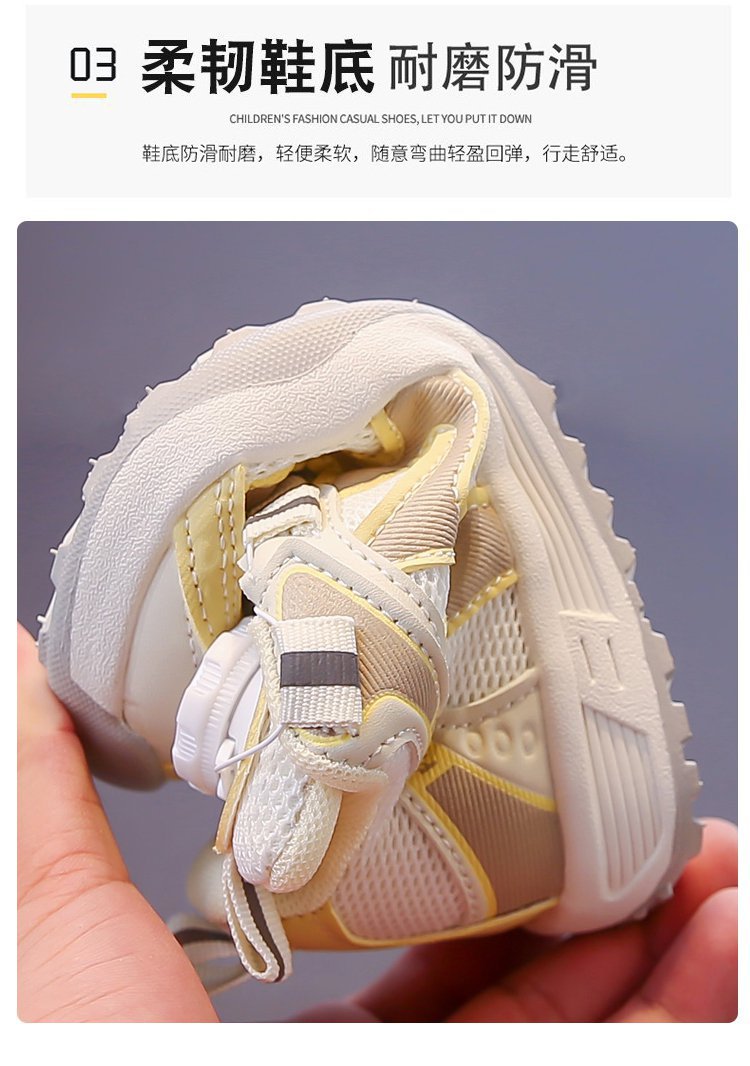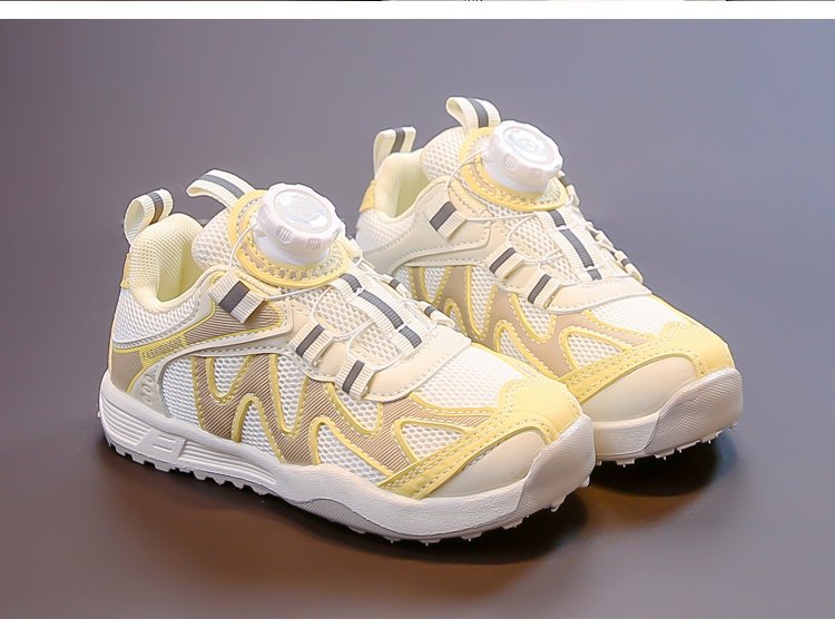 女童运动鞋2025新款春秋儿童跑步鞋男童网面透气女大童旋钮网鞋