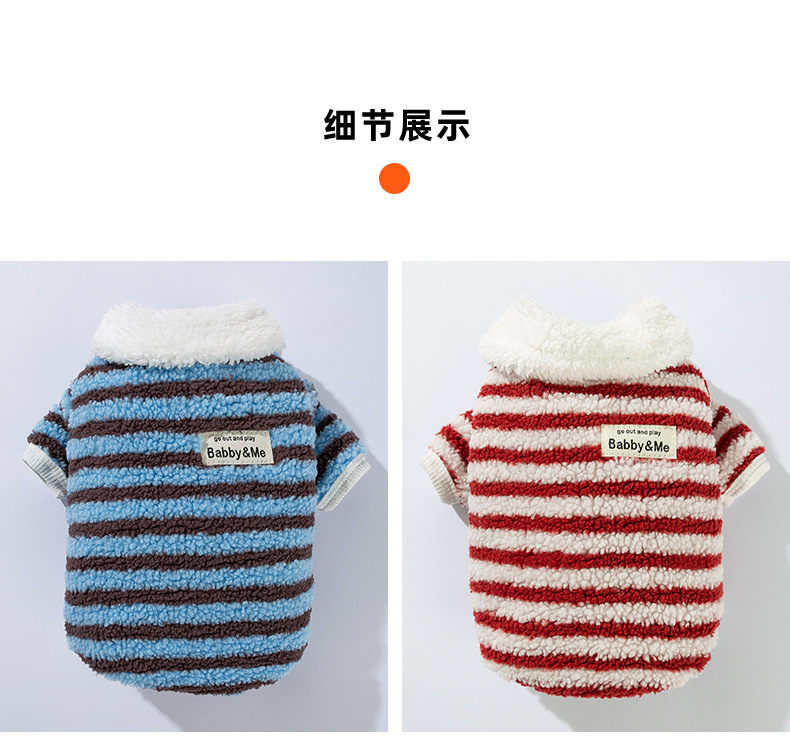 [ 10% off 사전 판매] 새로운 가을 겨울 스타일 심플 폴라 플리스 스트라이프 두발 플리스 코트 애완 동물 고양이와 개 옷스토어 가기
