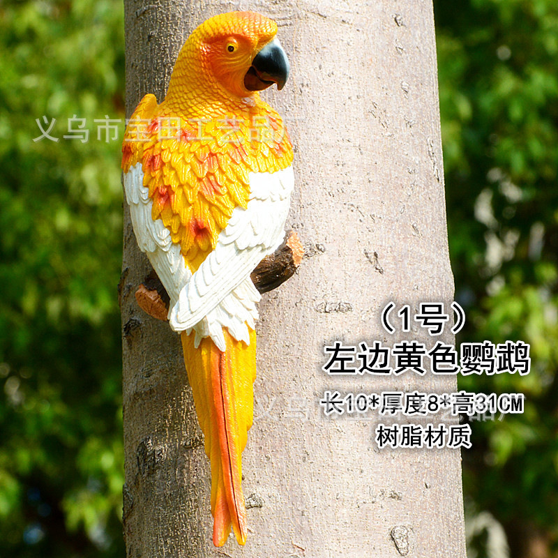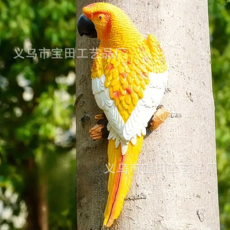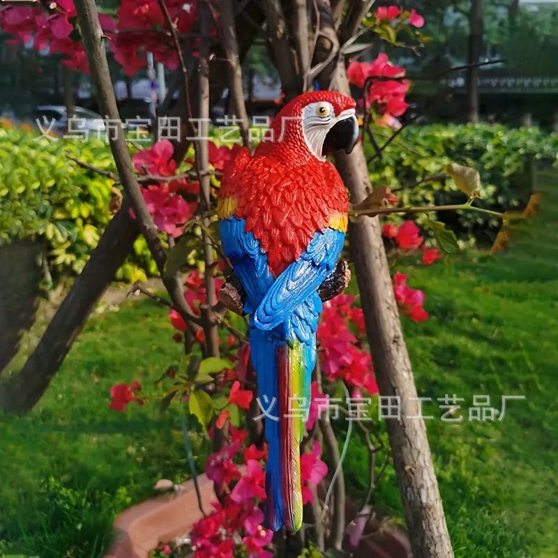 시뮬레이션 앵무새 모델 장식품, 야외 안뜰 나무 동물 장식, 정원 숲 조류 걸이 조각품, 수공예품스토어 가기