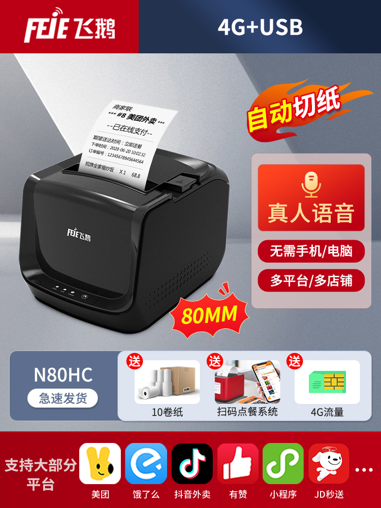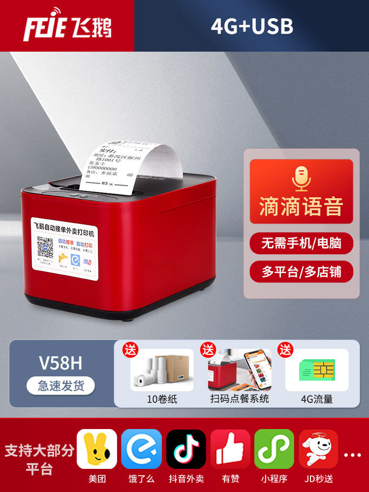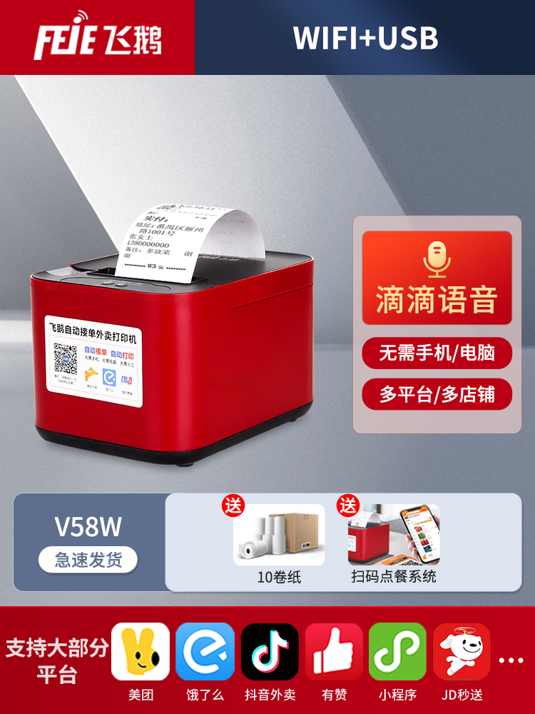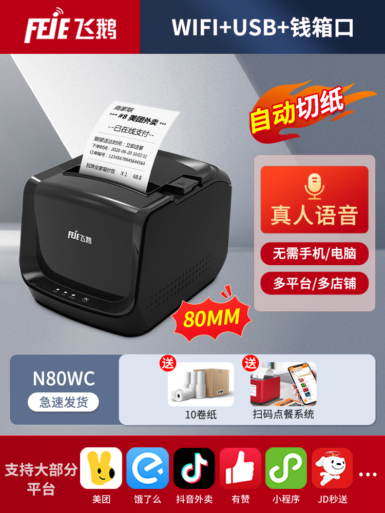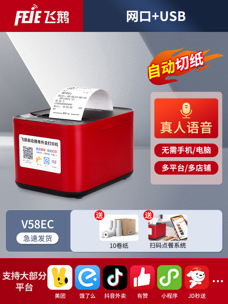 Feie 테이크아웃 프린터는 Meituan, Ele.me, Douyin 및 JD.com에 적합한 자동 주문 감열식 영수증 기계입니다.