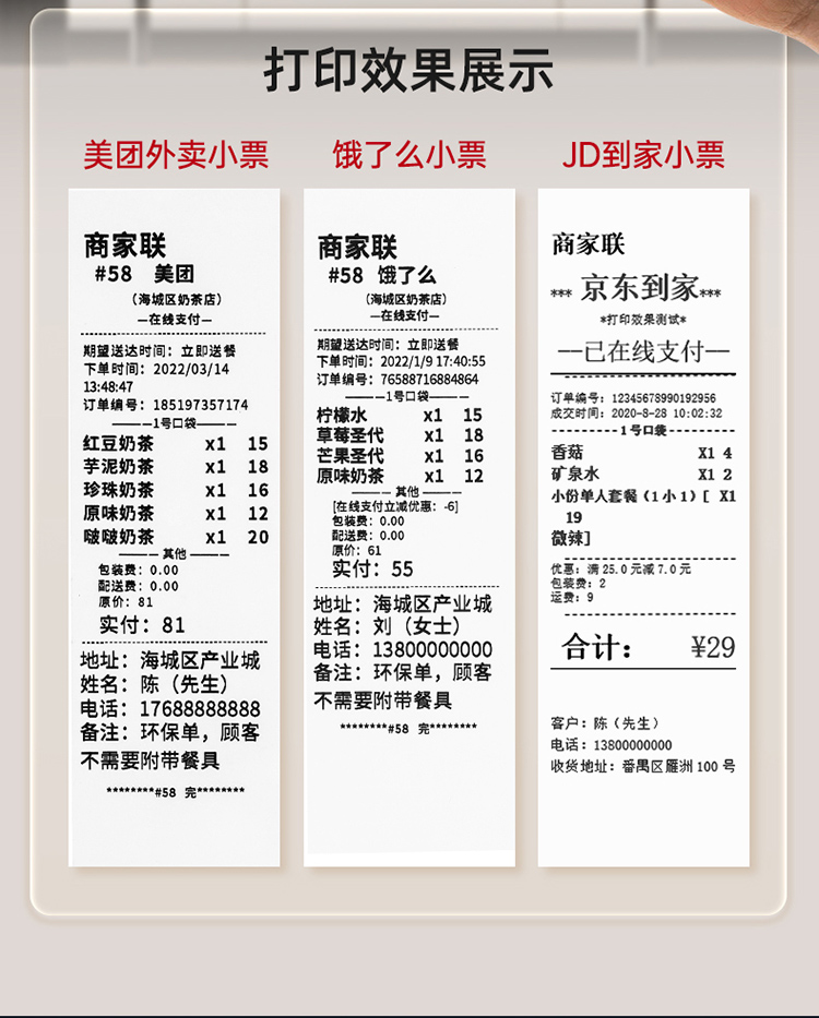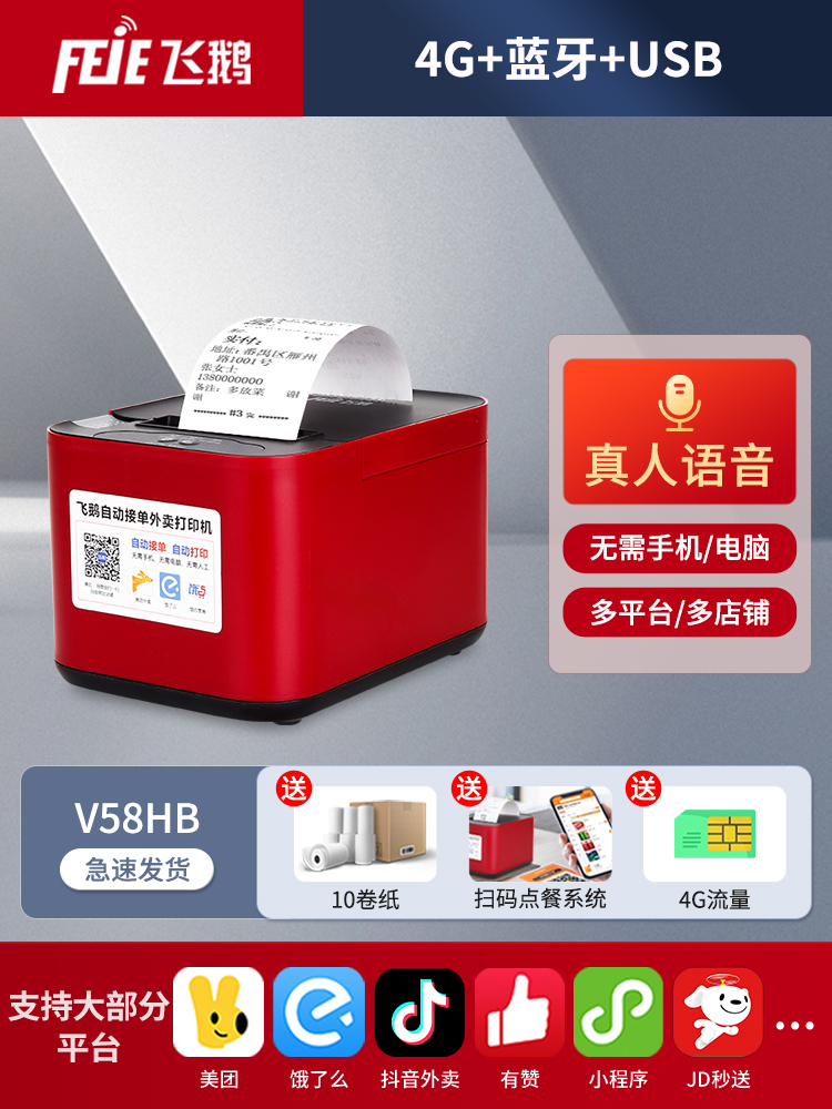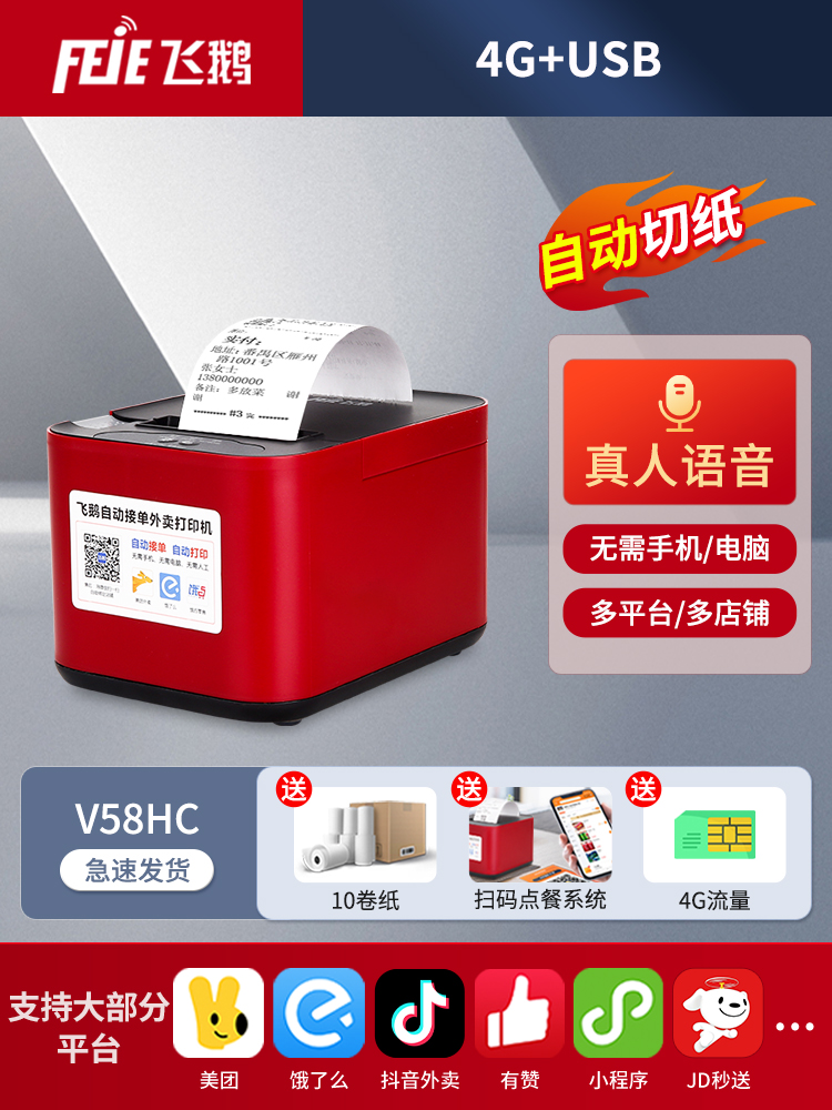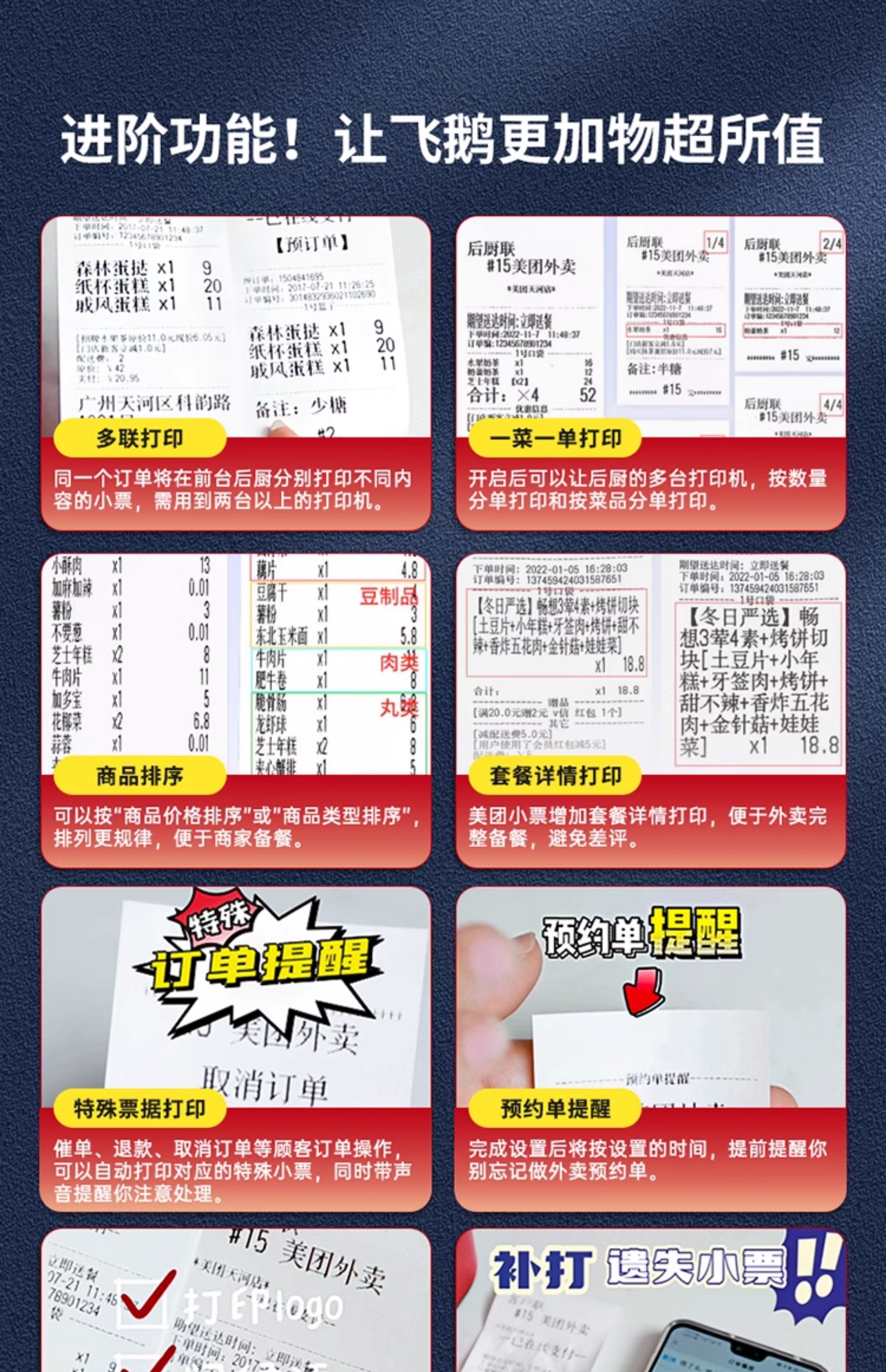 Feie 테이크아웃 프린터는 Meituan, Ele.me, Douyin 및 JD.com에 적합한 자동 주문 감열식 영수증 기계입니다.