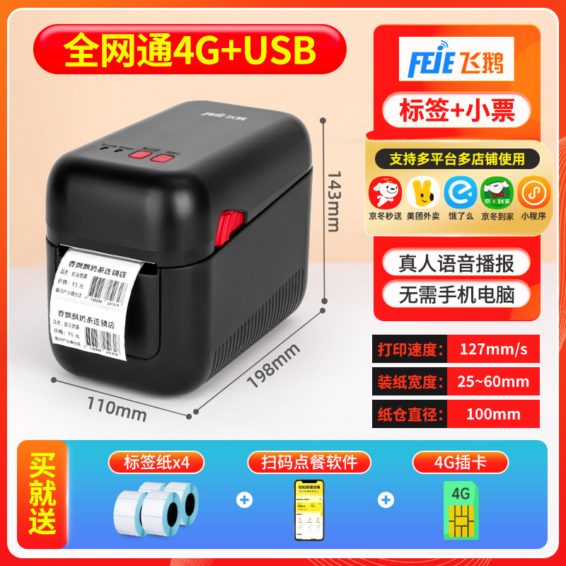 • 4G+블루투스+USB [실시간 음성+자동 종이 절단]