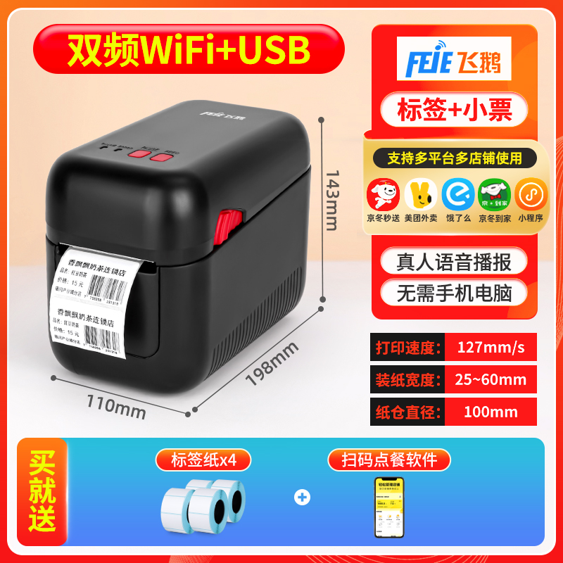 • 듀얼 밴드 WIFI+USB [실제 음성+자동 종이 절단]