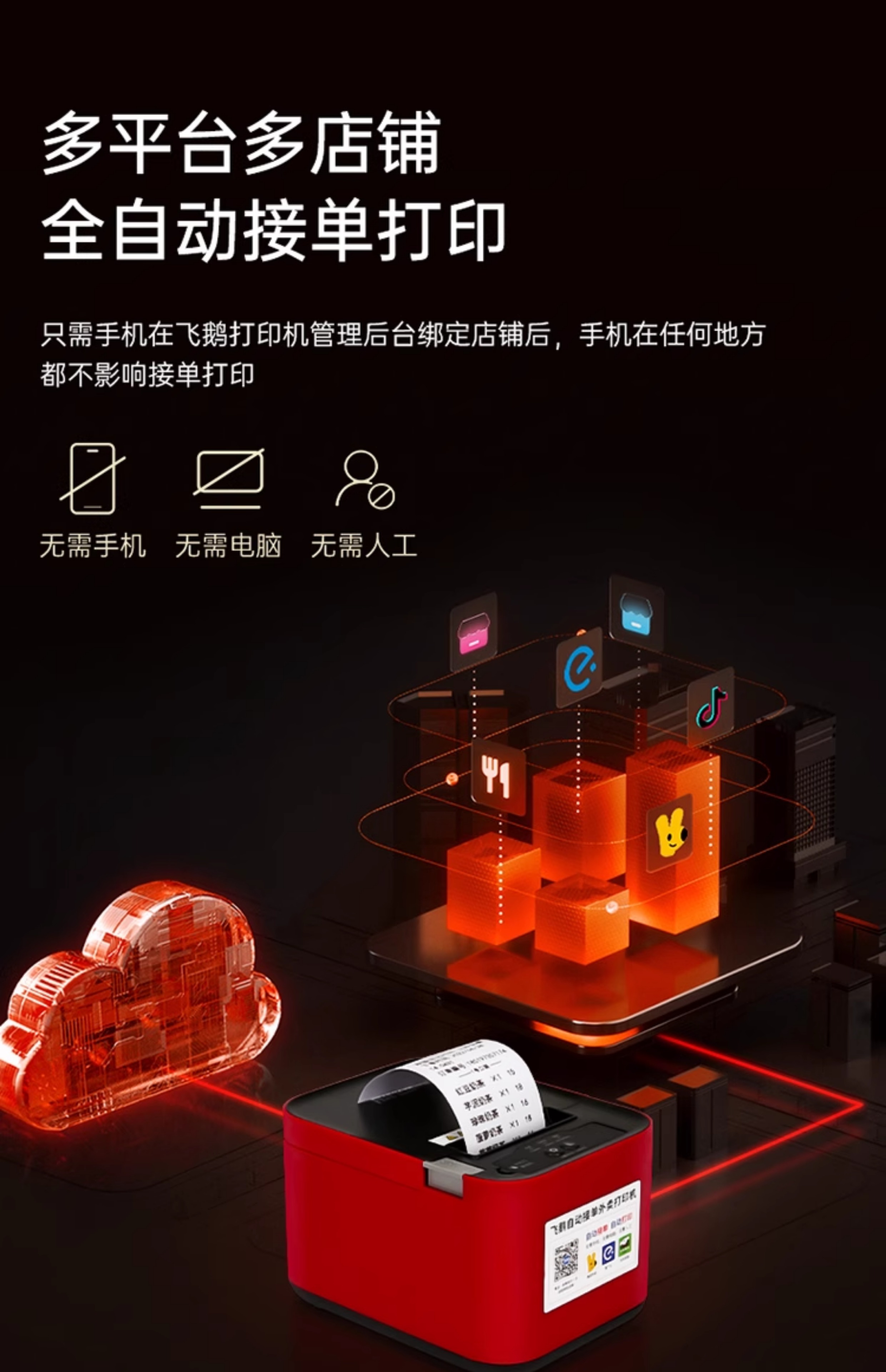 Feie 테이크아웃 프린터는 Meituan, Ele.me, Douyin 및 JD.com에 적합한 자동 주문 감열식 영수증 기계입니다.스토어 가기