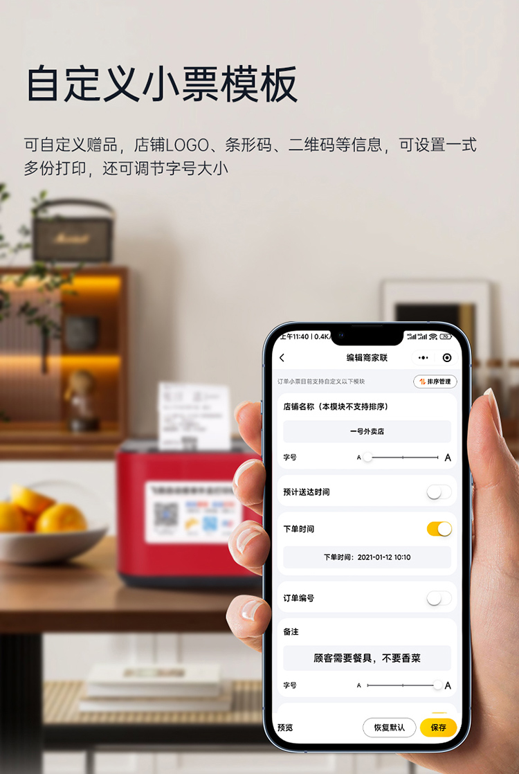 • 듀얼 밴드 WIFI+블루투스+USB [실제 음성+자동 종이 절단]