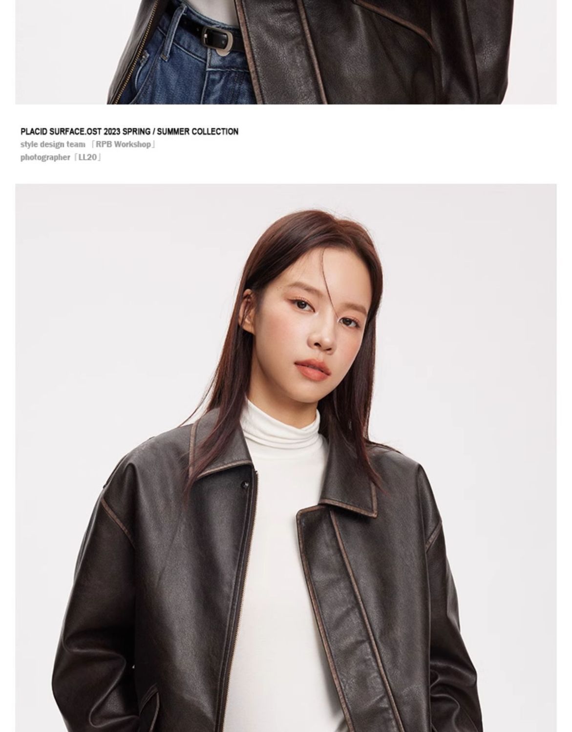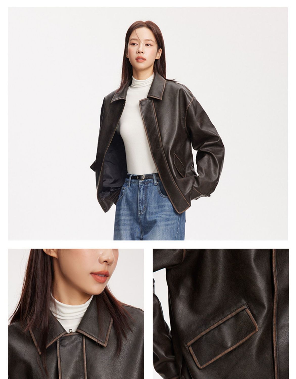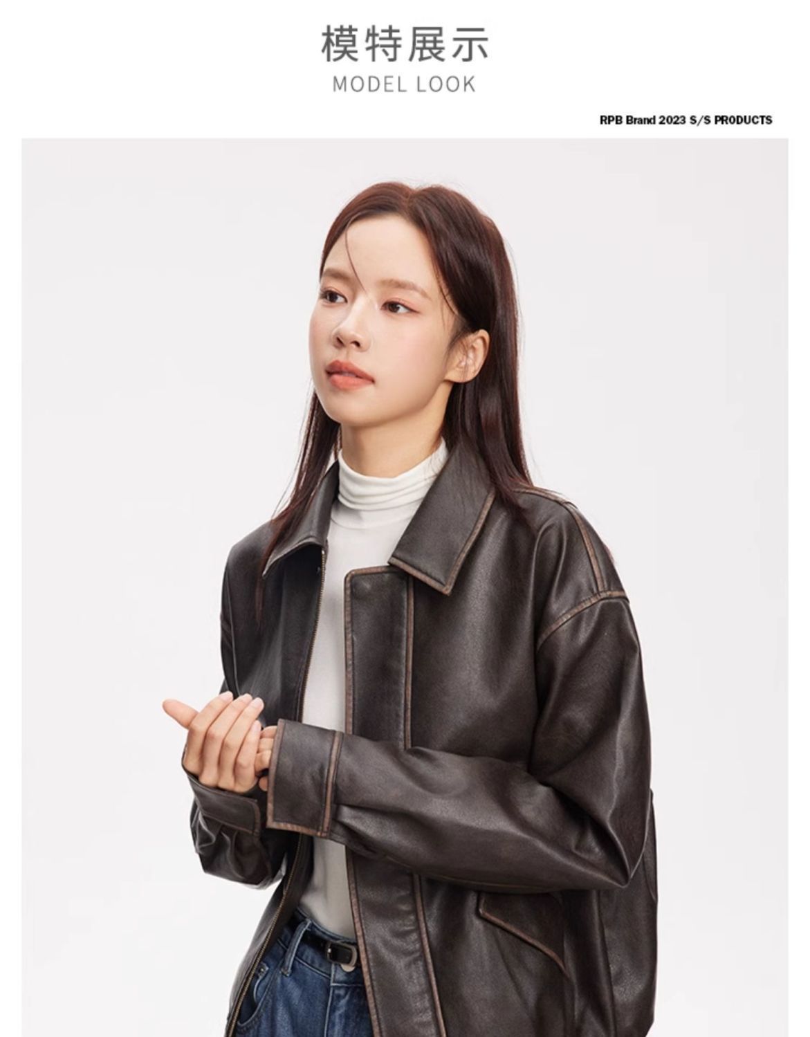 여성을위한 한국 스타일 간단한 하이 엔드 복고풍 갈색 가죽 자켓 2025 새로운 가을 슬림 다목적 PU 자켓 유행스토어 가기