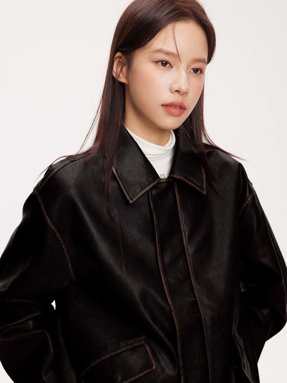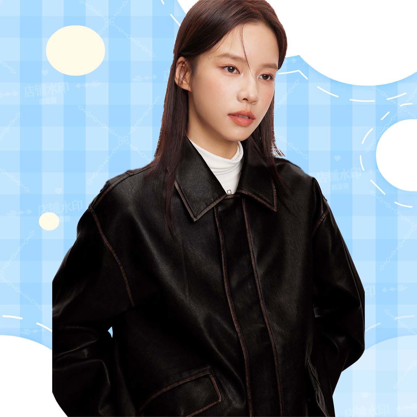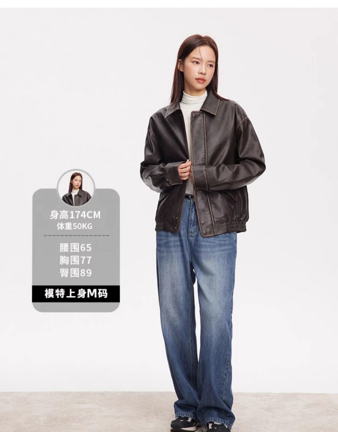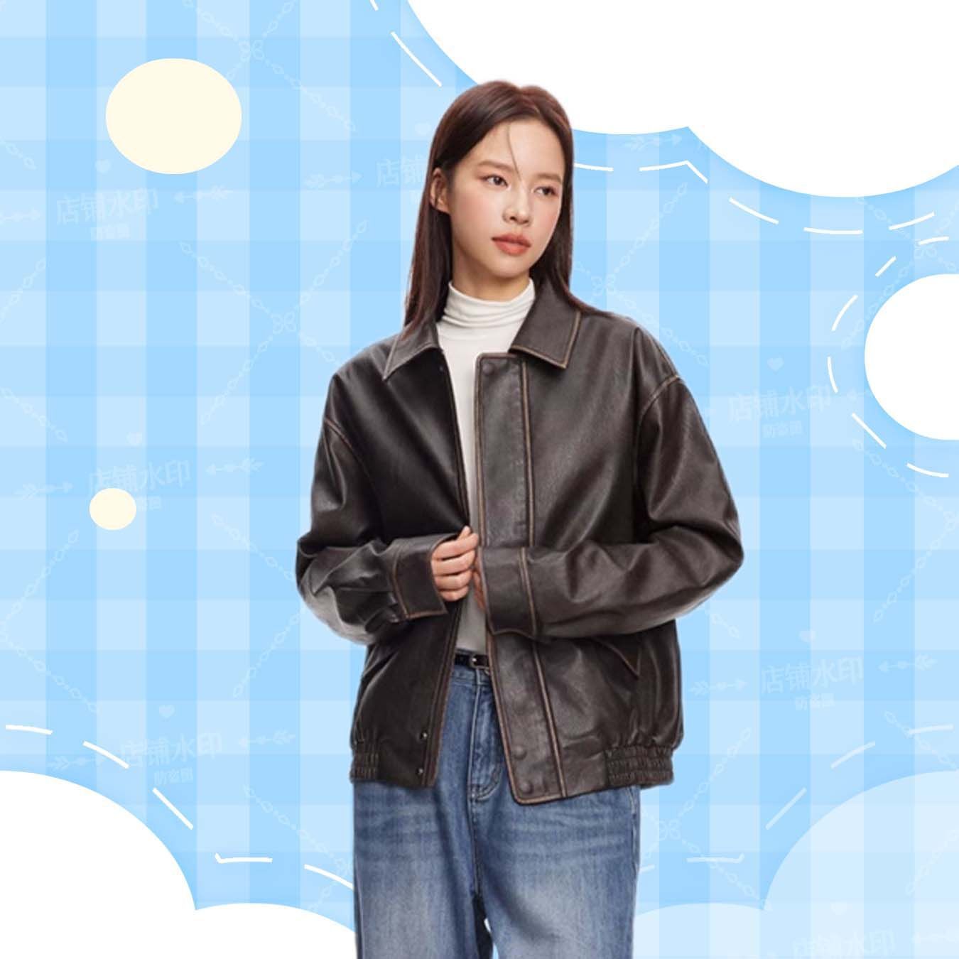 여성을위한 한국 스타일 간단한 하이 엔드 복고풍 갈색 가죽 자켓 2025 새로운 가을 슬림 다목적 PU 자켓 유행스토어 가기