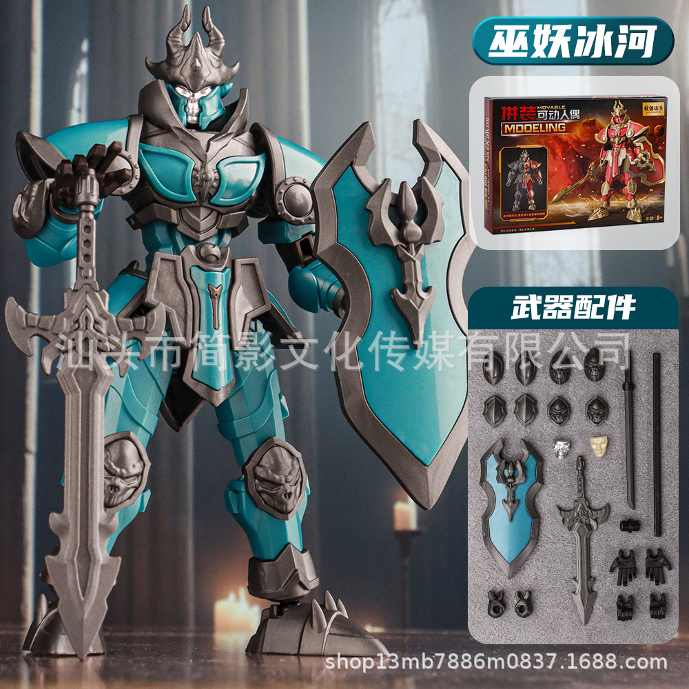 新款跨境拼装多关节可动人偶巫妖王亚瑟王网红模型摆件男孩玩具批